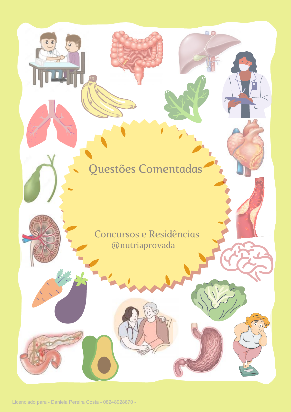 Dietoterapia Concursos e Residências @nutriaprovada Questões Comentadas Licenciado para - Daniela Pereira Costa - 08248928870 - Protegido por Eduzz.com 1-(ITAME/2020) Um quadro de pessoas que pode estar mais susceptível a bactérias nocivas como HelicobacterPylori é: (A) pessoas que produzem menos ácido clorídrico do que o normal; (B) pessoas que produzem mais ácido clorídrico do que o normal; (C) pessoas cujo consumo de antiácidos é evitado; (D) pessoas cuja qualidade de vida é boa e os níveis de estresse são controlados. COMENTÁRIO: Pessoas mais susceptível a H.pylori são as que apresentam desequilíbrio entre fatores protetores e agressores da mucosa gástrica. A REDUÇÃO DE ÁCIDO CLORÍDRICO torna benéfica o processo de colonização gástrica pela bactéria. GABARITO: A 2-(CPCON/2019) Gastrite e úlceras pépticas ocorrem quando anormalidades químicas, infecciosas ou neurais perturbam a integridade da mucosa do estômago (KRAUSE, 2012). Avalie as afirmativas sobre as diversas formas de gastrite, classificando-as em verdadeiro (V) ou falso (F). ( ) A infecção pelo Helicobacter pylori é uma das causas mais comuns de inflamação crônica da mucosa gástrica e úlcera péptica. ( ) A gastrite aguda se refere à inflamação e aos sintomas de início rápido. ( ) Atrofia e perda de células parietais do estômago, com redução da secreção de ácido clorídrico (HCl) e fator intrínseco são sinais resultantes da gastrite aguda. ( ) Em indivíduos com gastrite atrófica, deve-se avaliar o estado da vitamina B12, pois a acloridria e a falta do fator intrínseco podem resultar em baixa absorção desta vitamina. A sequência CORRETA está na alternativa (A) F, V, V e F. (B) V, F, F e V. (C) F, F, V e V. (D) V, V, V e V. (E) V, V, F e V. Questões Comentadas Licenciado para - Daniela Pereira Costa - 08248928870 - Protegido por Eduzz.com COMENTÁRIO: A infecção por H.pylori é uma das principais causas de gastrite crônica e úlceras pépticas. A infecção aguda tem a característica de ser rápida e curta. Atrofia e perda de células parietais, acloridria e diminuição de fator intrínseco está associada a GASTRITE CRÔNICA. Acloridria e diminuição de fator intrínseco acarreta em diminuição de B12, que deve ser monitorado. GABARITO: E 3-(VUNESP/2019) A cirurgia bariátrica é um recurso terapêutico utilizado em casos específicos de obesidade. A alimentação no pós- -cirúrgico deve ser cuidadosamente planejada, sendo recomendado, de acordo com o documento Cadernos de Atenção Básica – Estratégias para o Cuidado da Pessoa com Doença Crônica – Obesidade (Ministério da Saúde, 2014), a oferta, em geral no 3º dia pós-operatório, de (A) 70 a 100 mL de alimentos líquidos por refeição. (B) leite e derivados de baixo valor calórico. (C) sucos de frutas naturais espessos. (D) refrescos e chás sem açúcar. (E) purês ralos e carne moída. COMENTÁRIO: Nos primeiros dias pós-cirurgia a dieta deve conter chá, água de coco, água, suco de fruta diluído e coado (refresco), caldo de legumes, além de excluir leite e derivados. O volume inicial deve ficar em torno de 30-50ml. GABARITO: D 4-(VUNESP/2019) Segundo a Atualização da Diretriz Brasileira de Dislipidemias e Prevenção da Aterosclerose (2017), da Sociedade Brasileira de Cardiologia, a recomendação, de carboidratos e gorduras, respectivamente, para um indivíduo com hipertrigliceridemia isolada acima de 500 mg/dL, é: (A) 50-60% e 25-35% do valor energético total. (B) 50-60% e 30-35% do valor energético total. (C) 45-60% e 25-35% do valor energético total. (D) 45-60% e 30-35% do valor energético total. (E) 45-50% e 30-35% do valor energético total. Licenciado para - Daniela Pereira Costa - 08248928870 - Protegido por Eduzz.com COMENTÁRIO: Recomendação para hipertrigliceridemia > 500mg/dl Carboidrato: 45-50% gorduras: 30-35% GABARITO: E 5-(IBADE/2020) Assinale a opção em que todos os alimentos e preparações podem ser incluídos na alimentação de um indivíduo portador de doença celíaca. (A) Salsicha, azeite, macarronada e purê de batata. (B) Pão francês, ovo, biscoito polvilho e banana. (C) Tapioca, leite de vaca, bolo integral de centeio, farofa de carne de sol, cuscuz e hambúrguer de carne. (D) Tapioca, milho cozido, pão de queijo, polenta, biscoito de polvilho e pirão de peixe. (E) Bolo integral de aveia, salada de frutas, talharim à bolonhesa, hambúrguer de carne e cuscuz. COMENTÁRIO: Contém glúten (trigo, centeio, cevada, aveia): Salsicha (ingredientes), macarronada, pão francês, bolo de centeio, hambúrguer (ingredientes), bolo de aveia (contaminação cruzada da aveia com outros grãos), talharim à bolonhesa. Não contem glúten: Azeite, purê de batata, ovo, biscoito de polvilho, banana, tapioca, leite, farofa de carne, cuscuz, milho, pão de queijo, polenta, pirão, salada de frutas. GABARITO: D 6-(SELECON – 2020) A desnutrição é uma complicação frequente da doença hepática pelo álcool (DHA). A gravidade da desnutrição correlaciona-se com a gravidade da DHA. Na terapia nutrológica desses pacientes: (A) é fortemente indicada a restrição proteica, pois está relacionada à progressão mais rápida para encefalopatia hepática com níveis elevados de amônia (B) é necessário considerar que 50% da ingesta calórica do paciente é proveniente do etanol, sendo importante o suplemento nutricional oral ou enteral e o conceito de lanche noturno Licenciado para - Daniela Pereira Costa - 08248928870 - Protegido por Eduzz.com (C) já se considerou o uso de aminoácidos de cadeia ramificada, abandonado pela falta de evidências, gosto amargo e palatabilidade insatisfatória do produto, além do alto custo (D) não são usados rotineiramente probióticos, prebióticos ou simbióticos, pois os mecanismos centrais da DHA se relacionam à indução de CYP2E1e ao estresse oxidativo COMENTÁRIO: Não é indicada restrição proteica na doença he