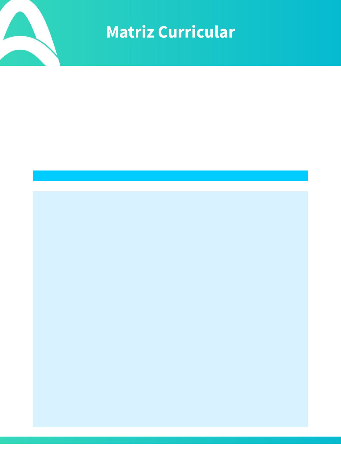 www.ampli.com.br contato@ampli.com.br CST EM GESTÃO AMBIENTAL COMPONENTES CURRICULARES DISCIPLINA SEM CH TOTAL RECURSOS NATURAIS E LEGISLAÇÃO AMBIENTAL 1 40 CONTROLE, PLANEJAMENTO E GESTÃO AMBIENTAL 1 40 CARTOGRAFIA 1 80 BIOGEOGRAFIA 1 80 RESPONSABILIDADE SOCIAL E AMBIENTAL 1 80 LEGISLAÇÃO E DIREITO AMBIENTAL 1 80 EDUCAÇÃO AMBIENTAL 1 80 CLIMATOLOGIA E METEOROLOGIA 2 80 GEOMORFOLOGIA 2 80 GESTÃO DE RECURSOS HÍDRICOS E BACIAS HIDROGRÁFICAS 2 80 GESTÃO DE EMISSÕES ATMOSFÉRICAS 2 80 GESTAO DE RECURSOS NATURAIS E ENERGETICOS 2 80 TECNOLOGIAS APLICADAS AO MEIO AMBIENTE 2 80 GESTÃO DE RESÍDUOS SÓLIDOS 2 80 OPTATIVA 3 80 SENSORIAMENTO E GEOPROCESSAMENTO APLICADOS AO MEIO 3 80 MANEJO DE UNIDADES DE CONSERVAÇÃO 3 80 PLANEJAMENTO E SAÚDE AMBIENTAL 3 80 SOCIEDADE BRASILEIRA E CIDADANIA 3 80 AVALIAÇÃO DE IMPACTOS AMBIENTAIS 3 80 RECUPERAÇÃO E MANEJO SUSTENTÁVEL DE ÁREAS DEGRADADAS 3 80 http://www.ampli.com.br/ www.ampli.com.br contato@ampli.com.br ATIVIDADES COMPLEMENTARES 80 OP QUADRO RESUMO TATIVAS RESUMO DA CARGA HORÁRIA Horas Total da Carga Horária Atividades Acadêmicas 1600 Atividades Complementares ACO - EI 80 TOTAL GERAL 1680 http://www.ampli.com.br/ mailto:contato@ampli.com.br www.ampli.com.br contato@ampli.com.br OPTATIVAS DISCIPLINA ECOLOGIA E SUSTENTABILIDADE ECONOMIA E ADMINISTRAÇÃO RURAL GEOGRAFIA AGRÁRIA GESTÃO DE PROJETOS LIBRAS - LÍNGUA BRASILEIRA DE SINAIS http://www.ampli.com.br/ mailto:contato@ampli.com.br www.ampli.com.br contato@ampli.com.br CONTEÚDOS 1º Semestre Nome da Disciplina: RECURSOS NATURAIS E LEGISLAÇÃO AMBIENTAL Ementa: INTRODUÇÃO AOS RECURSOS NATURAIS E ÀS QUESTÕES AMBIENTAIS ASPECTOS GERAIS DA LEGISLAÇÃO AMBIENTAL Competência: Conhecer os recursos naturais bem como os impactos ambientais das operações produtivas na atmosferra, no solo e na água Conhecer os impactos ambientais das operações produtivas com vistas à adequação à legislação ambiental Bibliografia Básica: ANTUNES, Paulo de Bessa. Direito ambiental. 22. ed. São Paulo: Atlas, 2021. Environmental Management. ISSN 1432-1009. Revista de Direito Ambiental. ISSN 1415-5400. Revista de Gestão Social e Ambiental. ISSN 1981-982X. RODRIGUES, Marcelo Abelha. Direito ambiental. 8. ed. São Paulo: Saraiva Educação, 2021. SARLET, Ingo Wolfgang; FENSTERSEIFER, Tiago. Curso de Direito ambiental. 2. ed. Rio de Janeiro: Forense, 2021. Bibliografia Complementar: GIACOMELLI, Cinthia Louzada Ferreira; ELTZ, Magnum Koury de Figueiredo. Direito e legislação ambiental. Porto Alegre: SAGAH, 2018. http://www.ampli.com.br/ mailto:contato@ampli.com.br www.ampli.com.br contato@ampli.com.br Journal of Applied Science & Environmental Management. ISSN 1119-8362. Revista Ambiente & Água. ISSN 1980-993X. Revista Metropolitana de Sustentabilidade. ISSN 2318-3233. SIMI, Lucas Detogni. Legislação ambiental. Londrina: Editora e Distribuidora Educacional S.A., 2017. SIRVINSKAS, Luís Paulo. Manual de direito ambiental. 18. ed. São Paulo: Saraiva Educação, 2020. Nome da Disciplina: CONTROLE, PLANEJAMENTO E GESTÃO AMBIENTAL Ementa: FUNDAMENTAÇÃO E CONTROLE AMBIENTAL INTRODUÇÃO AO PLANEJAMENTO E GESTÃO AMBIENTAL Competência: Conhecer os métodos de controle ambiental da água, ar e resíduos e ser capaz de traças estratégias para o gerenciamento destes nas operações produtivas Conhecer os Sistemas de Gestão Ambiental e ser capaz de traçar estratégias para enfrentar um processo de Auditoria e Cerficação Bibliografia Básica: BARSANO, Paulo Roberto; BARBOSA, Rildo Pereira. Gesta~o ambiental. Sa~o Paulo : E´rica, 2014. FENKER, Eloy Antonio ...[et al.]. Gestão Ambiental: Incentivos, Riscos e Custos. Rio de Janeiro: GEN, 2015 PHILIPPI JR, Arlindo. Curso de Gestão Ambiental. 2.ed. Barueri: Manole, 2014 Revista de Gestão Ambiental e Sustentabilidade. ISSN 2316-9834. Revista de Gestão Social e Ambiental. ISSN 1981-982X. Revista de Investigación Agraria y Ambiental. ISSN 2145-6453. Bibliografia Complementar: DONAIRE, Denis. Gestão Ambiental na Empresa. 3.ed. Rio de Janeiro: GEN. 2018 Environmental Management. ISSN 1432-1009. Gestión y Ambiente. ISSN 2357-5905. http://www.ampli.com.br/ mailto:contato@ampli.com.br www.ampli.com.br contato@ampli.com.br Journal of Applied Science & Environmental Management. ISSN 1119-8362. SILVA, Cesar. Sistema de gestão ambiental. Curitiba: Intersaberes, 2014 TACHIZAWA, Takeshy. Gestão ambiental e responsabilidade social corporativa: estratégias de negócios focadas na realidade brasileira. 9.ed. São Paulo: Atlas, 2019 Nome da Disciplina: CARTOGRAFIA Ementa: LINGUAGEM CARTOGRÁFICA REPRESENTAÇÃO DO ESPAÇO GEOGRÁFICO CARTOGRAFIA TEMÁTICA GEOPROCESSAMENTO Competência: Conhecer para ser capaz de articular o processo de alfabetização cartográfica Conhecer, localizar e representar o espaço geográfico a partir de referências espaciais. Conhecer e compreender a utilização das técnicas de semiologia gráfica e sua aplicação. Conhecer, localizar e representar o espaço geográfico a partir de referências espaciais através do uso da tecnologia. Bibliografia Básica: HOLOS. ISSN 1807-1600. LOBLER, Carlos Alberto ...[et al.]. Cartografia. Porto Alegre: SAGAH, 2019. MARTINS NETO, Francisco Ferreira. Geoprocessamento e sensoriamento remoto. Londrina: Editora e Distribuidora Educacional S.A., 2018. MIOTO, Camila Leonardo. Cartografia e geoprocessamento ambiental. Londrina: Editora e Distribuidora Educacional S.A., 2017. Revista de Gestão Ambiental e Sustentabilidade. ISSN 2316-9834. Revista Geográfica. ISSN 2663-399X. Bibliografia Complementar: http://www.ampli.com.br/ mailto:contato@ampli.com.br www.ampli.com.br contato@ampli.com.br Boletín de Ciencias de la Tierra. ISSN 2357-3740. Estudos Tecnológicos em Engenharia. ISSN 1808-7310. IBRAHIN, Francini Imene Dias. Introdução ao Geoprocessamento Ambiental. São Paulo: Saraiva, 2014. LEONARDI, Ivan. Geoprocessamento e sensoriamento remoto para recursos hídricos. São Paulo: