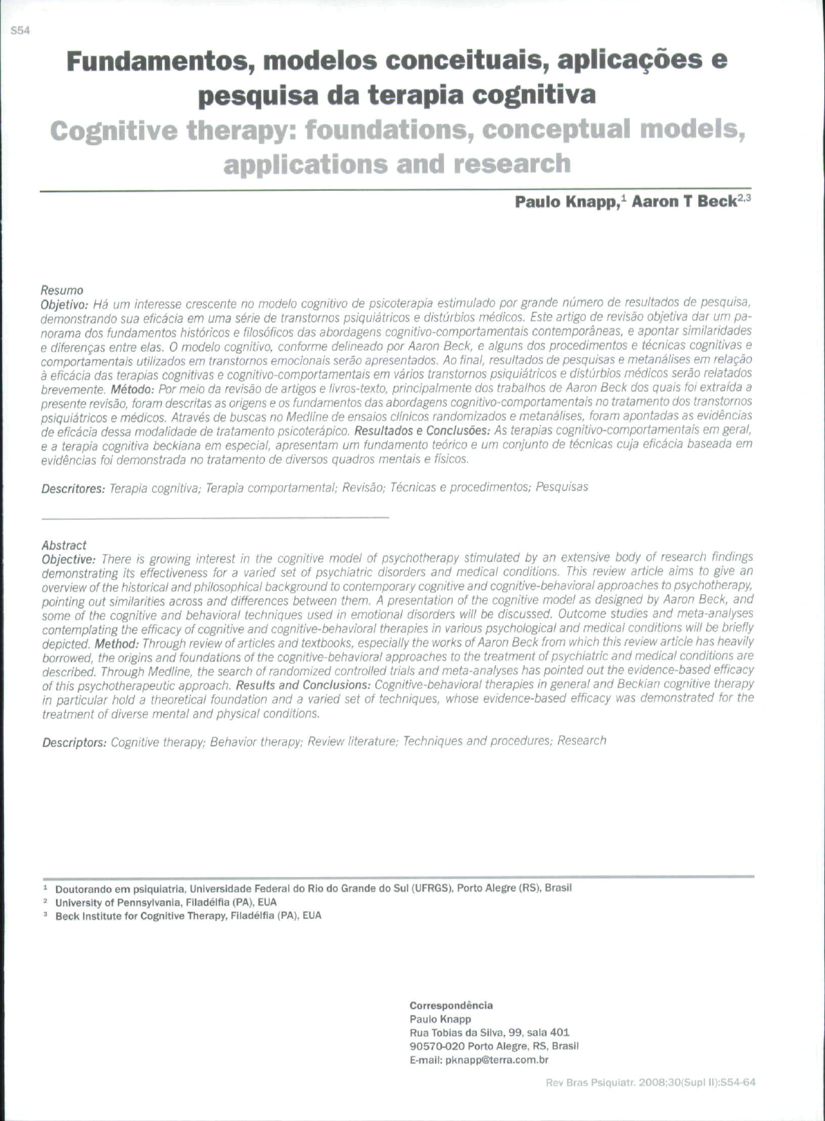 cogniçâo na depressáo^ e na terapia^ foi descrito pela primeira vez na