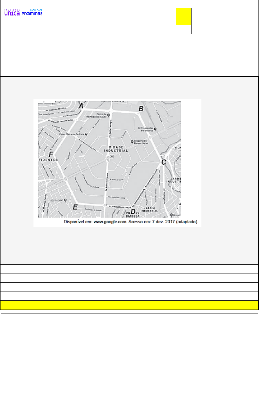 Pincel Atômico - 29/06/2024 21:48:59 1/5 ELVIS DOS SANTOS RODRIGUES Exercício Caminho do Conhecimento - Etapa 10 (21441) Atividade finalizada em 10/06/2024 23:06:11 (2107595 / 1) LEGENDA Resposta correta na questão # Resposta correta - Questão Anulada X Resposta selecionada pelo Aluno Disciplina: GEOMETRIA: FUNDAMENTOS E MÉTODOS DE ENSINO E PRÁTICAS PEDAGÓGICAS [1038282] - Avaliação com 8 questões, com o peso total de 1,67 pontos [capítulos - 5] Turma: Segunda Graduação: Segunda Graduação 6 meses - Licenciatura em Matemática - Grupo: FPD-JANEIRO/2024 - SGegu0A050224 [114389] Aluno(a): 91341478 - ELVIS DOS SANTOS RODRIGUES - Respondeu 6 questões corretas, obtendo um total de 1,25 pontos como nota [359903_152507] Questão 001 (INEP/2021/Enem) Um estudante, morador da cidade de Contagem, ouviu dizer que nessa cidade existem ruas que formam um hexágono regular. Ao pesquisar em um sítio de mapas, verificou que o fato é verídico, como mostra a figura. Ele observou que o mapa apresentado na tela do computador estava na escala 1: 20 000. Nesse instante, mediu o comprimento de um dos segmentos que formam os lados desse hexágono, encontrando 5 cm. Se esse estudante resolver dar uma volta completa pelas ruas que formam esse hexágono, ele percorrerá, em quilômetro, 4. 20. 24. 1. X 6. Pincel Atômico - 29/06/2024 21:48:59 2/5 [359904_152508] Questão 002 (FCC/Metrô SP/Analista de Desenho Industrial) Considere a figura abaixo: A figura demonstra o procedimento utilizado para a ampliação ou redução, a partir da replicação de figuras geométricas tomadas como modelo, processo este conhecido como Mosaico. Polígono de Sierpinski. Rosácea. Curva de Koch. X Homotetia. [359904_152510] Questão 003 De origem asiática, o Tangram e o Origami são muito conhecidos em todo o mundo, seja nas brincadeiras em qualquer idade, na arte ou mesmo em situações de ensino e de aprendizagem. De origem chinesa, o Tangram é um quebra-cabeça milenar formado por sete peças, sendo: um paralelogramo, um quadrado e cinco triângulos retângulos (dois grandes, dois pequenos e um médio). De origem japonesa, a tradicional, secular e belíssima manipulação do papel por meio de dobras faz do Origami uma técnica que permite aliar desde conhecimentos básicos de figuras planas e ângulos até sofisticadas formas de se representar sólidos geométricos, elementos da natureza ou construções humanas. Sobre algumas possibilidades de se utilizar o Tangram e o Origami como recursos pedagógicos em sala de aula, são feitas as seguintes afirmações: I - Os alunos devem ser incentivados a combinarem as sete peças do Tangram, sem sobrepô-las, possibilitando a formação de diferentes formas. II - Por se tratar de uma arte, com o Origami, não se consegue trabalhar noções axiomáticas das construções geométricas subjacentes. III - Com o Tangram e o Origami, há oportunidades variadas para o ensino e a aprendizagem de Matemática e de Geometria Euclidiana Plana que vão além das construções, passando por situações de investigação e recreação. Analisando-se as afirmações feitas, pode-se concluir que estão corretas I, II e III. X I e III. Apenas III. I e II. II e III. Pincel Atômico - 29/06/2024 21:48:59 3/5 [359903_152951] Questão 004 (VUNESP/2019/PM-SP) A figura representa um quebra-cabeças geométrico chinês com 7 peças denominadas tans: 5 triângulos retângulos, todos semelhantes entre si, 1 quadrado e 1 paralelogramo: Com essas 7 peças, sem sobrepô-las, pode se formar várias figuras como a de uma casa, a de um gato, a de um cisne, além de figuras geométricas, como a do quadrado representado acima. Considerando-se todos os ângulos internos das tans, representam-se como α e β as medidas, em graus, do maior e do menor desses ângulos. Nesse caso, α + β corresponde à medida de um ângulo: X Obtuso, ou seja, com medida entre 90º e 180º. Reto, ou seja, com medida igual a 90º. Agudo, ou seja, com medida entre 0º e 90º. Côncavo, ou seja, com medida entre 180º e 360º. Raso, ou seja, com medida igual a 180º. [359903_152935] Questão 005 As transformações de semelhança no plano possuem propriedades e conceitos que são muito úteis a diversas áreas do conhecimento como a própria Matemática, a Engenharia, a Arquitetura, as Ciências Biológicas, dentre outras. Em relação a essas transformações, analise as seguintes afirmativas: I. A transformação de semelhança chamada de homotetia gera objetos semelhantes ao original a partir da multiplicação das medidas de seus segmentos de reta por um valor constante. II. Num processo de homotetia, a transformação não gera deformação. III. Se a razão de homotetia é negativa, a orientação espacial da figura não é alterada, mas ocorre uma ampliação. Sobre essas afirmações, é correto afirmar que as verdadeiras estão em: X l e II, apenas. I e III, apenas. II e III, apenas. II, apenas. I, II e III. Pincel Atômico - 29/06/2024 21:48:59 4/5 [359903_152943] Questão 006 (INEP/2016/Enem) Um professor, ao fazer uma atividade de origami (dobraduras) com seus alunos, pede para que estes dobrem um pedaço de papel em forma triangular, como na figura a seguir, de modo que M e N sejam pontos médios, respectivamente, de AB e AC, e D, ponto do lado BC, indica a nova posição do vértice A do triângulo ABC. Se ABC é um triângulo qualquer, após a construção, são exemplos de triângulos isósceles os triângulos: X CND e DMB. CAD e ADB. CMA e CMB. NAM e NDM. CND e NDM. [359904_152511] Questão 007 (OBJETIVA/2018/EPTC/Auxiliar de Administração – adaptada) A figura abaixo foi montada através de um Tangram (quebra-cabeça chinês formado por 7 peças). Qual é a área total da figura abaixo? X 111 cm². 148 cm². 125 cm². 163 cm². 182 cm². Pincel Atômico - 29/06/2024 21:48:59 5/5 [359903_152933] Questão 008 (CESPE/CEBRASPE/2016/Depto. de Polícia Federal/Desenhista – adaptado). Quando dois polígonos s