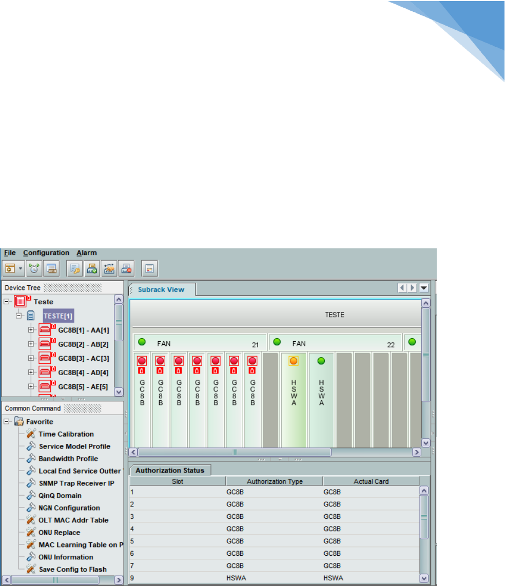 TECH WAY CONSULTING Tech Way Consulting CNPJ: 27.744399/0001-71 Endereço: Rua Juiz de Fora, Nº 662 – Bairro: Vila Virginia Itaquaquecetuba – SP / CEP: 08673060 Telefone: (11) 94787.4102 E-mail: thabata@techwayconsulting.com.br 1 Autorizando a ONU via UNM2000. Clique na OLT desejada duas vezes e irá aparecer a OLT e suas placas: TECH WAY CONSULTING Tech Way Consulting CNPJ: 27.744399/0001-71 Endereço: Rua Juiz de Fora, Nº 662 – Bairro: Vila Virginia Itaquaquecetuba – SP / CEP: 08673060 Telefone: (11) 94787.4102 E-mail: thabata@techwayconsulting.com.br 2 No menu superior do painel central da OLT em “Configuration”, clique na opção: “ONU Authetication”. Na nova tela que irá abrir, selecione a aba inferior a opção: “PON Port Authentication Mode”. TECH WAY CONSULTING Tech Way Consulting CNPJ: 27.744399/0001-71 Endereço: Rua Juiz de Fora, Nº 662 – Bairro: Vila Virginia Itaquaquecetuba – SP / CEP: 08673060 Telefone: (11) 94787.4102 E-mail: thabata@techwayconsulting.com.br 3 Nesta opção podemos selecionar a forma que as ONUs serão autenticadas nas portas PON. PHYSIC_ID AUTHENTICATION: Essa forma é a mais utilizada, pois é onde a OLT faz a autenticação da ONU através de “serial number”; string formada por iniciais da fabricante + parte do endereço MAC principal. PASSWORD AUTHENTICATION: Essa forma, precisamos definir uma senha através da interface web da ONU ou também via telnet. Pois essa senha será utilizada para fazer a autenticação da ONU na OLT. SN:LOID AUTHENTICATION: Similar ao PASSWORD AUTHENTICATION, porem é definido além de uma senha, também precisa ser definido um usuário. NO AUTHENTICATION: Caso o layer 1 e parte do layer 2 da comunicação entre a ONU e a OLT estiver OK, a mesma é autenticado sem a necessidade de nossa intervenção. Logo depois de definir a forma que a ONU irá autenticar na OLT, clique com botão na opção: “Obtain Unauthorized ONU”. Na barra superior do painel principal. TECH WAY CONSULTING Tech Way Consulting CNPJ: 27.744399/0001-71 Endereço: Rua Juiz de Fora, Nº 662 – Bairro: Vila Virginia Itaquaquecetuba – SP / CEP: 08673060 Telefone: (11) 94787.4102 E-mail: thabata@techwayconsulting.com.br 4 Em seguida selecione o card. (placa) que deseja autorizar a ONU e depois clique em OK. Serão listadas todas as ONUs conectadas na OLT e que ainda estão aguardando autorização. Selecione as ONUs desejadas e depois clique na opção: “Add to the ONU Authority List”. TECH WAY CONSULTING Tech Way Consulting CNPJ: 27.744399/0001-71 Endereço: Rua Juiz de Fora, Nº 662 – Bairro: Vila Virginia Itaquaquecetuba – SP / CEP: 08673060 Telefone: (11) 94787.4102 E-mail: thabata@techwayconsulting.com.br 5 Obs. Não se esqueça de selecionar a opção correta conforme o modo de autenticação definido anteriormente (nesse caso especifico a opção é: “as Physical ID Authentication Mode Added to the Whitelist”). Em seguida já podemos ver, as ONUs autorizadas, já implementadas. Agora vamos listar as ONUs: Clique no botão na opção: “ONU List” da barra superior do painel principal. Teremos a lista geral de todas ONUs autorizadas. TECH WAY CONSULTING Tech Way Consulting CNPJ: 27.744399/0001-71 Endereço: Rua Juiz de Fora, Nº 662 – Bairro: Vila Virginia Itaquaquecetuba – SP / CEP: 08673060 Telefone: (11) 94787.4102 E-mail: thabata@techwayconsulting.com.br 6 Conforme clicamos no card. ou na porta PON na árvore de objetos do lado esquerda, a lista é filtrada. Obs. Após todos os procedimentos realizados acima, temos que salvar as configurações na flash da OLT, conforme os próximos passos a seguir: TECH WAY CONSULTING Tech Way Consulting CNPJ: 27.744399/0001-71 Endereço: Rua Juiz de Fora, Nº 662 – Bairro: Vila Virginia Itaquaquecetuba – SP / CEP: 08673060 Telefone: (11) 94787.4102 E-mail: thabata@techwayconsulting.com.br 7 Salvando as configurações na FLASH. Na arvore de objetos, onde consta todas as placas inclusive a placa de gerencia. Clique com botão direito ou duas vezes sobre a placa de gerencia: Entrar na opção “Card Service Config”. TECH WAY CONSULTING Tech Way Consulting CNPJ: 27.744399/0001-71 Endereço: Rua Juiz de Fora, Nº 662 – Bairro: Vila Virginia Itaquaquecetuba – SP / CEP: 08673060 Telefone: (11) 94787.4102 E-mail: thabata@techwayconsulting.com.br 8 No sub-menu “Favorite” clique a opção “Save Config to flash” e em seguida em OK.