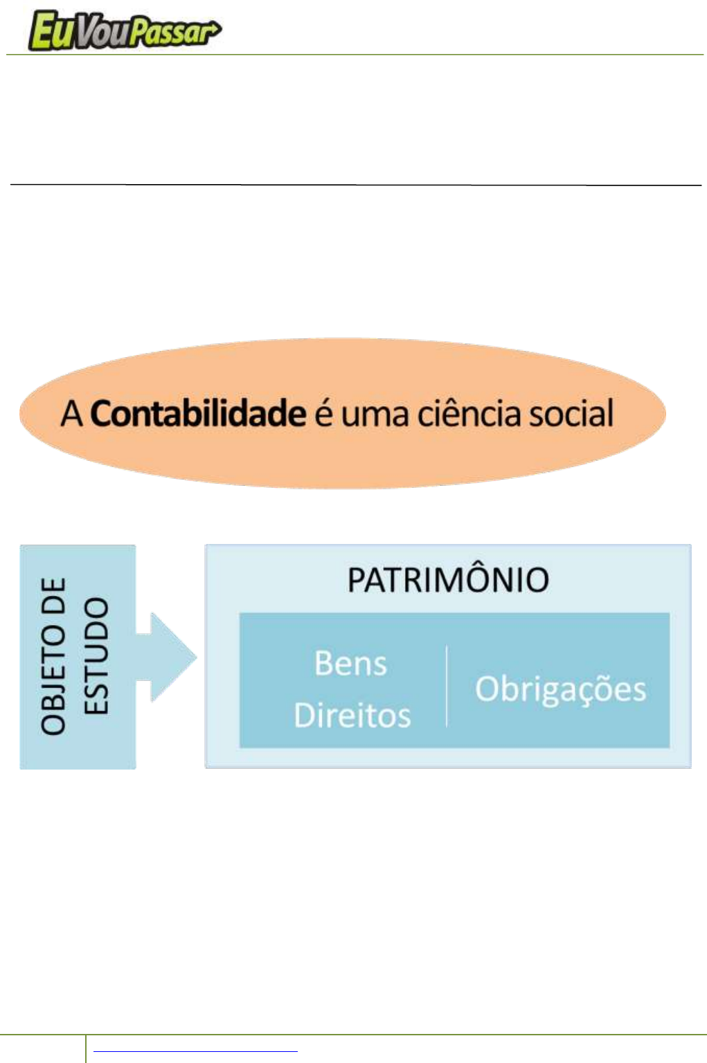 1 http://www.euvoupassar.com.br Eu Vou Passar – e você? Germana Chaves - Contabilidade Curso de Contabilidade Geral Conceitos e Características da Contabilidade Conceito: Contabilidade é a ciência que estuda e pratica as funções de orientação, controle e registro relativas à administração econômica. Conceitos e Características da Contabilidade Conceito de Patrimônio: Conjunto de bens, direitos e obrigações pertencente a pessoa física ou jurídica, com ou sem fins lucrativos. Objetivo da Contabilidade: Fornecer aos usuários informações sobre aspectos de natureza econômica, financeira e física do patrimônio e suas mutações, como suporte á tomada de decisões. 2 http://www.euvoupassar.com.br Eu Vou Passar – e você? Usuários da Contabilidade Campo de Aplicação: As aziendas. Aziendas 3 http://www.euvoupassar.com.br Eu Vou Passar – e você? Exercício Social Art. 175. O exercício social terá duração de 1 (um) ano e a data do término será fixada no estatuto. Parágrafo único. Na constituição da companhia e nos casos de alteração estatutária o exercício social poderá ter duração diversa. Técnicas Contábeis OBS: Escriturar = registrar, lançar, contabilizar. 4 http://www.euvoupassar.com.br Eu Vou Passar – e você? Escrituração: “ Art. 177, Lei 6.404/76. A escrituração da companhia será mantida em registros permanentes, com obediência aos preceitos da legislação comercial e desta Lei e aos princípios de contabilidade geralmente aceitos, devendo observar métodos ou critérios contábeis uniformes no tempo e registrar as mutações patrimoniais segundo o regime de competência”. Demonstrações Contábeis: Embasamento Legal Art. 176, Lei 6.404/76: “Ao fim de cada exercício social, a diretoria fará elaborar, com base na escrituração mercantil da companhia, as seguintes demonstrações financeiras, que deverão exprimir com clareza a situação do patrimônio da companhia e as mutações ocorridas no exercício: I - balanço patrimonial; II - demonstração dos lucros ou prejuízos acumulados; III - demonstração do resultado do exercício; IV – demonstração dos fluxos de caixa; e V – se companhia aberta, demonstração do valor adicionado.” § 6º A companhia fechada com patrimônio líquido, na data do balanço, inferior a R$ 2.000.000,00 (dois milhões de reais) não será obrigada à elaboração e publicação da demonstração dos fluxos de caixa.” (NR) Análise das Demonstrações Contábeis Analise por meio de índices, quocientes. Auditoria Exame e verificação dos registros e das Demonstrações Contábeis. Lei 6.404/76: Art. 176: § 3o As demonstrações financeiras das companhias abertas observarão, ainda, as normas expedidas pela Comissão de Valores Mobiliários e serão obrigatoriamente submetidas a auditoria por auditores independentes nela registrados. 5 http://www.euvoupassar.com.br Eu Vou Passar – e você? O Patrimônio Conceito de Patrimônio: Conjunto de bens, direitos e obrigações pertencente a pessoa física ou jurídica, com ou sem fins lucrativos. Componentes do Patrimônio Bens são todas as coisas que satisfazem as necessidades humanas possuem utilidade e podem ser quantificados monetariamente. Os bens podem ser tangíveis ou intangíveis. 6 http://www.euvoupassar.com.br Eu Vou Passar – e você? O Patrimônio: terminologias Ativo: é um recurso controlado pela entidade como resultado de eventos passados e do qual se espera que fluam futuros benefícios econômicos para a entidade. Passivo: é uma obrigação presente da entidade, derivada de eventos passados, cuja liquidação se espera que resulte na saída de recursos capazes de gerar benefícios econômicos Patrimônio Líquido: é o interesse residual nos ativos da entidade depois de deduzidos todos os seus passivos 7 http://www.euvoupassar.com.br Eu Vou Passar – e você? Aspectos Qualitativos e Quantitativos QUALITATIVO: Consiste em qualificar, dar nomes aos elementos das demonstrações contábeis. QUANTITATIVO: Consiste em atribuir, aos respectivos elementos, seus valores em moeda. Equação Fundamental do Patrimônio Se: ATIVO = PASSIVO + PL então: Atenção! Capital de Terceiros + Capital Próprio = Capital à Disposição da empresa Estados Patrimoniais 1) Quando o Ativo > Passivo Exigível: A > P SL > 0 Situação líquida maior que zero OU Situação Líquida Positiva OU Situação Líquida Ativa OU Situação Líquida Superavitária OU Situação Líquida Favorável = GRANDEZA PATRIMONIAL. 8 http://www.euvoupassar.com.br Eu Vou Passar – e você? 2) Quando o Ativo = Passivo Exigível: A = P SL = 0 Situação Líquida igual a zero OU Situação Líquida Nula ou Compensada. 3) Quando o Ativo < Passivo Exigível: A < P SL < 0 Situação Líquida menor que zero OU Situação Líquida Negativa OU Situação Líquida Passiva OU Situação Líquida Deficitária OU Situação Líquida Desfavorável = PASSIVO A DESCOBERTO. EXERCÍCIO DE FIXAÇÃO 1. Ministério do Turismo – CONTADOR – 2014 ESAF - Assinale a opção correta. a) Na representação gráfica do patrimônio, devem constar os grupos Ativo Circulante, Ativo Permanente, Passivo Circulante e Patrimônio Líquido. b) Capital Social é o mesmo que o capital aplicado pelos sócios na atividade empresarial. c) O capital próprio mais o capital de terceiros é o capital aplicado no patrimônio. d) O valor dos bens, dos direitos e das obrigações é o valor do patrimônio líquido da empresa. e) Dá-se o nome de patrimônio bruto ao valor dos ativos aplicados na atividade empresarial. 2. (CGU-2008/ESAF) Em relação ao patrimônio de uma empresa e às diversas situações patrimoniais que pode assumir de acordo com a equação fundamental do patrimônio, indique a opção incorreta. a) A empresa tem passivo a descoberto quando o Ativo é igual ao Passivo menos a Situação Líquida. b) A Situação Líquida negativa acontece quando o total do Ativo é menor que o pas