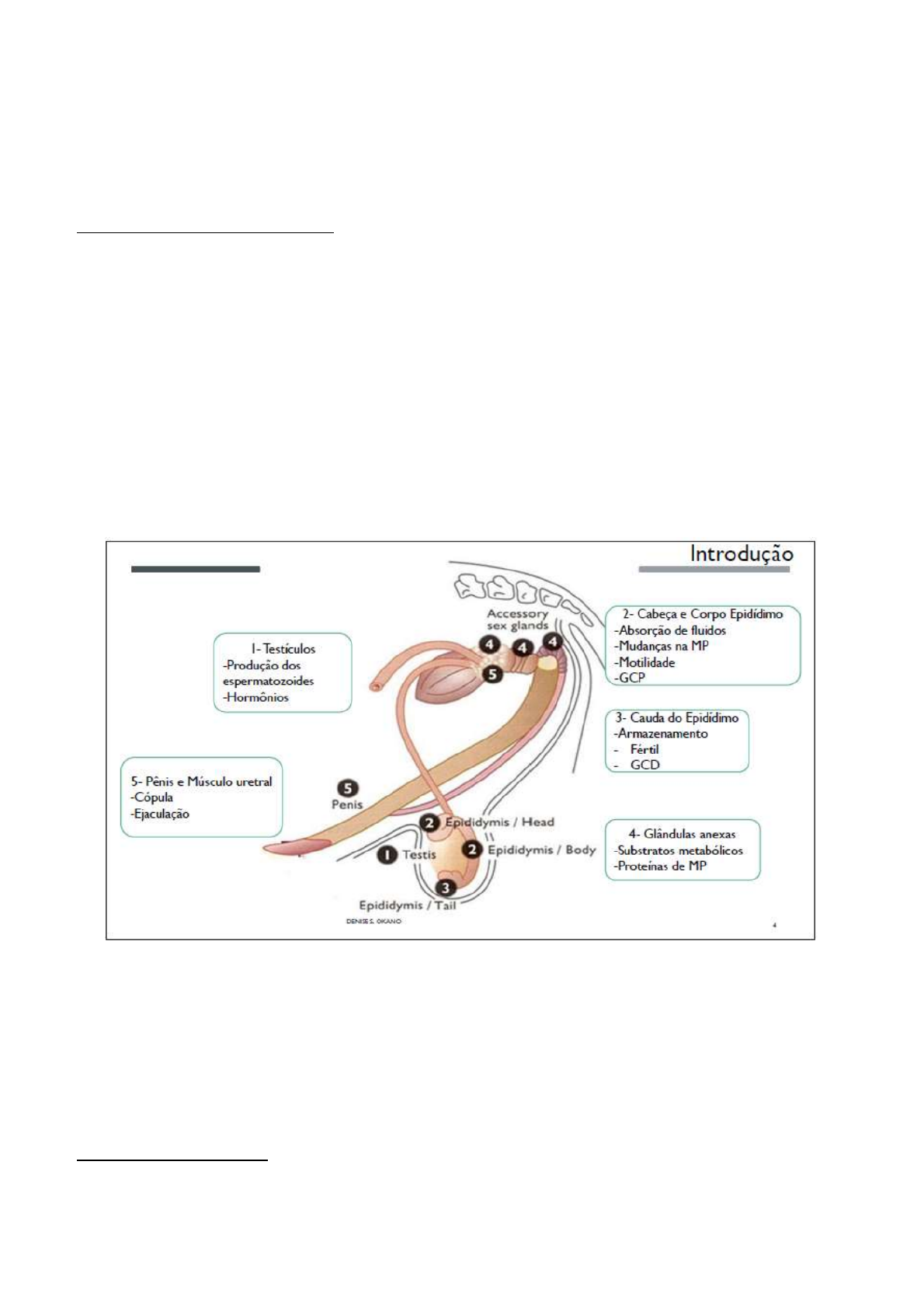 Impresso por Samuel Bonamichi, E-mail bau_piquete@hotmail.com para uso pessoal e privado. Este material pode ser protegido por direitos autorais e não pode ser reproduzido ou repassado para terceiros. 03/10/2023, 12:13:55 BIOTECNOLOGIA E REPRODUÇÃO DO MACHO- EXAME ANDROLÓGICO EXAME ANDROLÓGICO É um exame andrológico específico do trato genital masculino. Função do trato genital masculino: produção e maturação e condução dos gametas, hormônios, liquido seminal, cópula. No exame andrológico é avaliado se todas essas funções são exercidas. - O exame andrológico é requerido em várias situações especificas, sejam de origem obrigatória, ou por solicitação do produtor mesmo. Origem obrigatória: seleção de reprodutores, touros em centrais de IA, criopreservação de espermatozoides, venda de reprodutores. *os touros para entrar em centrais é necessário um laudo andrológico afirmando que ele é fértil. *garanhões que vão criopreservar o sêmen também tem a necessidade de fazer o exame andrológico, para saber se é apto para reprodução (fértil) e se a qualidade do sêmen é suficiente para o processo de criopreservação. *além disso, toda venda de reprodutores é necessário que proprietário que está vendendo permita que ele tenha o laudo do exame andrológico para comprovar que o animal de fato está apto para reprodução e tem as características mínimas que o Conselho de Reprodução Animal exija para que seja um reprodutor. É UM MÉDICO VETERINÁRIO QUE FAZ E ASSINA O LAUDO DO EXAME ANDROLÓGICO. GCP Gota Citoplasmática Proximal; GCD Gota Citoplasmática Distal.– – *na cabeça do epidídimo começa a sofrer a maturação espermática ; Da cauda do epidídimo quando o animal realiza a monta/cópula e acontece a ejaculação esses – – espermatozoides eles vão seguir pelo ducto deferente até a pelve do animal, chegando na uretra pélvica o espermatozoide é diluído pelo liquido seminal (que é produzido pelas glândulas sexuais acessórias que – tem substratos metabólicos importante para o metabolismo e sobrevivência do espermatozoide e também contém proteínas que vão aderir a membrana plasmática do espermatozoide para evitar a capacitação precoce). O sêmen segue pela uretra peniana e durante a ereção o macho realiza a cópula e ejacula no trato reprodutivo da fêmea. EXAME ANDROLÓGICO: - Identificação do animal ; - Exame físico geral; - Exame físico específico; - Espermiograma; Impresso por Samuel Bonamichi, E-mail bau_piquete@hotmail.com para uso pessoal e privado. Este material pode ser protegido por direitos autorais e não pode ser reproduzido ou repassado para terceiros. 03/10/2023, 12:13:55 - Diagnóstico/conclusão. Identificação do animal: dados do proprietário, nome/registro, idade, espécie, raça. Exame físico específico: inspeção e palpação. Genitália externa: - Escroto mobilidade, sensibilidade, ectoparasitas, dermatites, lesões/cicatrizes. *as dermatites devem ser contidas, pois a inflamação causa calor e aquece o escroto e consequentemente o testículo, causando degeneração testicular que afeta a qualidade seminal/fertilidade do reprodutor. *as lesões e cicatrizes antigas devem ser anotadas pois fisicamente pode estar normal e na avaliação seminal encontrar alguma anormalidade e pode ser justificada por lesões ou cicatrizes antigas. - Testículos, epidídimos presentes no escroto criptorquidia, simetria biometria, consistência tenso- – – – elástica, mobilidade, temperatura, dor. *animal criptorquida deve ser descartado do programa de reprodução pois é característica hereditária. *a simetria testicular é muito importante mensurar, pois é comum a hipoplasia testicular que é uma característica hereditária portanto, não é bem vinda ao programa de reprodução. e, - Prepúcio, pênis; Genitália interna: palpação. - Gl. Bulbouretrais, - Próstata, - Gl. Vesiculares. 1-dermatite testicular; 2, 3 e 6-assimetria testicular pode ser que um deles apresente alteração na – consistência; 5-prepucio e escroto edemaciado; 4-ausência de um testículo e está pendiculoso o que não é muito normal para a espécie equina. Biometria testicular: - Perímetro escrotal (PE): herdabilidade, repetibilidade, correlações. seleção de touros jovens; produção espermática e concentração espermática; morfologia espermática; precocidade sexual (macho e fêmeas); peso ao nascimento, desmame; longevidade de fêmeas (stayabilite). *mede a circunferência do testículo na maior circunferência do testículo. – Impresso por Samuel Bonamichi, E-mail bau_piquete@hotmail.com para uso pessoal e privado. Este material pode ser protegido por direitos autorais e não pode ser reproduzido ou repassado para terceiros. 03/10/2023, 12:13:55 - Comprimento e largura | Altura em equinos e cães: é feito com o paquímetro. Serve para ver se realmente os testículos são simétricos ou assimétricos. Causas de assimetria testicular: hipoplasia testicular (hereditária); degeneração testicular; orquite; neoplasias; hérnia. *no comprimento, é excluído a calda do epidídimo. - Altura em equinos e cães: nesses animais é mensurado o comprimento, largura e altura e não se mensura PE. *é importante lembrar que no equino, o testículo assume sua posição horizontal e o epidídimo se encontra dorsalmente. Em animais que visualmente tem testículos assimétricos ele são descartados da reprodução independente do motivo que levou a essa assimetria e não pode ser vendido como reprodutor. Nos bovinos, tem se uma margem em que os animais são considerados normais de acordo com a mensuração do PE, para serem aptos para reprodução. - essa mensuração varia de autor para autor, de raça para raça. Os animais são avaliados normalmente aos 18 meses de idade: PE > 28cm : ideal. 26 > PE <28cm: reavaliação aos 24 meses. PE <26cm: descarte. Impresso por Samuel Bonamichi, E-mail bau_piquete@h