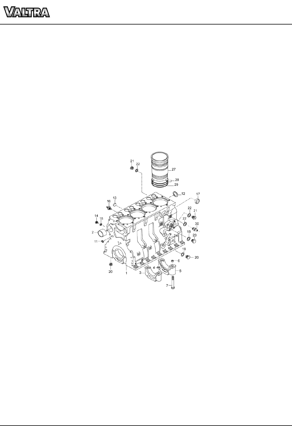 BM110 GII 11/11/200821-01 - BLOCO DO MOTOR Catálogo de Peças VALTRA 9.0 - Impresso em 16/10/2013 Página 1/1 BM110 GII 11/11/200821-01 - BLOCO DO MOTOR Catálogo de Peças VALTRA 9.0 - Impresso em 16/10/2013 Página 1/1 Ref. Num. Peça Denominação Qtd Nota $ Unit. 1 836766377 Bloco do motor montado 1 ----- 2 836866069 Bucha 1 ----- 3 Tampa do mancal 4 * ----- 4 836214478 Bucha de guia 8 ----- 5 Tampa do mancal 1 * ----- 6 836214478 Bucha de guia 2 ----- 7 529903180 Parafuso 10 ----- 11 640016016 Anel do bujão do bloco do motor 4 ----- 12 836529872 Tampão 1 ----- 13 640016018 Tampão 1 ----- 14 GR0261 Bujão 1 ----- 15 615571014 Anel de vedação 1 ----- 16 887283760 Sensor de pressão 1 ----- 17 640016040 Tampão 1 ----- 18 KH3617 Anel de vedação 1 ----- 19 615881216 Anel retentor 1 ----- 20 640305012 Bujão 5 ----- 21 640325018 Bujão 1 ----- 22 KH4946 Anel retentor 2 ----- 23 836019756 Bujão 1 ----- 24 836014334 Tubo 1 ----- 27 836647420 Camisa do cilindro 4 Std - flange 9,03 mm ----- 27 836647933 Camisa do cilindro 4 flange 9,08 mm ----- 27 836647934 Camisa do cilindro 4 flange 9,13mm ----- 27 836647935 Camisa do cilindro 4 flange 9,23 mm ----- 28 836647502 Anel retentor da camisa do cilindro 8 ----- 29 836647503 Anel retentor da camisa do cilindro 4 ----- 30 836119837 Conexão 1 -----