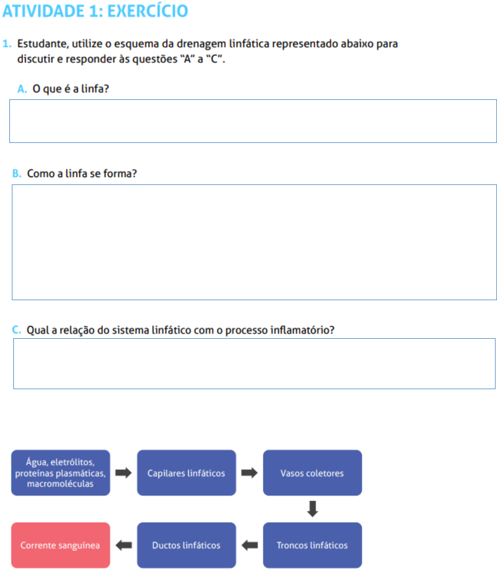 Roteiro 2.1 Sequência do liquido Por definição pode-se dizer que a linfa é essencialmente um ultrafiltrado do plasma sanguíneo, formado pela filtração contínua da parte fluida do sangue, através das paredes dos capilares sanguíneos, para o espaço intersticial. (liquido remanescente do plasma) O sistema linfático desempenha um papel fundamental no processo inflamatório. Ele transporta células de defesa, como os linfócitos, para áreas inflamadas, ajuda a drenar o excesso de fluidos e detritos, e atua na filtragem de patógenos. Além disso, o sistema linfático é responsável pela produção de anticorpos para combater infecções. O intercâmbio de substâncias entre o sangue e os tecidos não é feito diretamente, mas através de um fluido intermediário, o fluido intersticial. Este fluido ocupa os espaços entre células sendo o seu meio envolvente mais próximo. A sua composição muda continuamente à medida que ocorrem trocas de substâncias com o sangue e com as células. A direção do movimento das substâncias depende da diferença de pressão sangue e pressão osmótica: quando a primeira é superior as substâncias tendem a sair do capilar (geralmente na extremidade arterial do capilar), quando a primeira é inferior as substâncias entram no capilar (extremidade venosa do capilar). O fluído intersticial é recolhido pelos capilares sanguíneos e linfáticos, ficando com a designação de linfa que circula nos vasos linfáticos até se juntar ao sangue. A linfa tal como o sangue é um fluido circulante, isto é, é um veículo de transporte de distribuição e remoção de substâncias. Roteiro 2.1 Morfologia do sistema linfático Linfa formada no interstício dos tecidos e dos órgãos circula por meio dos linfonodos de maneira unidirecional: ela é transportada pelos vasos linfáticos aferentes que entram na face convexa do órgão. A linfa cai em um espaço chamado seio subcapsular e espalha-se pelo órgão, saindo pelos linfáticos do hilo (vasos linfáticos eferentes) .O parênquima do linfonodo apresenta uma região cortical, que se localiza abaixo da cápsula, e uma região medular, que ocupa o centro do órgão e o seu hilo. Entre essas duas regiões, encontra-se a região cortical profunda, ou região paracortical. Roteiro 2.1 Corte de um linfonodo. Observe a cápsula e as camadas do órgão. Os folículos linfoides (FL) situam-se exclusivamente na cortical e apresentam um manto denso em linfócitos e a região central mais clara, o centro germinativo. Entre os folículos há grande número de linfócitos e essas áreas se continuam com a região denominada paracortical, de limites imprecisos, próxima à medular. Na região medular, observam-se cordões medulares compactos em linfócitos em secções transversais e oblíquas e os seios medulares, mais claros, entre os cordões. (HE. Vista panorâmica.) Vasos linfáticos Roteiro 2.1 Roteiro 2.1 Roteiro 2.1 Circulação linfática e retorno ao sistema venoso Roteiro 2.1