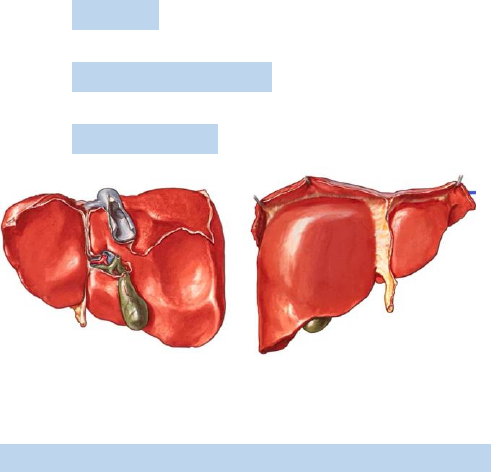 Laboratório Morfofuncional 3.1 Aspectos macroscópicos do fígado • Maior glândula do nosso corpo • Se localiza abaixo do musculo diafragma • Se estende pelas 3 regiões clinicas superiores: hipocôndrio direito (maior área), região epigástrica, hipocôndrio esquerdo • Possui duas fases: uma voltada pelo musculo diafragma (fase diafragmática) e uma voltada inferiormente (fase visceral) • Possui 4 lobos • 2 lobos podem ser vistos das duas fases: lobo hepático direito, lobo hepático esquerdo • 2 lobos so podem ser vistos da face visceral: lobo quadrado (próximo a vesícula biliar) e lodo caudado (próximo a veia cava inferior) • Vesícula biliar: armazena a bile que é importante a emulsificação de gorduras. Do ponto de vista anatômico possui um corpo e um colo (da onde parte o ducto cístico) • Na parte visceral há uma abertura chamada de porta hepática que permite a passagem de estruturas (o conjunto dessas estruturas é chamado de pedículo hepático) Pedículo hepático • veia porta (trás o sangue absorvido do sistema digestório, então ele chega ao fígado rico em nutrientes que foram absorvidos, estes que são metabolizados no fígado pelos hepatócitos), • artéria hepática própria (trás sangue oxigenado para nutrir os hepatócitos), cerca de 90% do sangue que entra no fígado vem da veia porta e o restante da artéria hepática própria • ductos hepáticos: que trazem do interior do fígado a bile que foi produzida pelos hepatócitos O fígado é coberto pelo peritônio a não ser por três regiões: área nua (por que esta em contato com o diafragma), a porta do fígado (para não impedir a passagem das estruturas) e a fossa da vesícula biliar Ligamento: o fígado possui 2 ligamentos correlacionados 1- ligamento falciforme que é uma dupla prega de peritônio (linha que divide a parte diafragmática na foto acima). Ele delimita anteriormente formando a lâmina anterior do ligamento coronário (este que delimita a área nua do fígado) 2- no interior do ligamento falciforme há o ligamento redondo, que se conecta com a cicatriz umbilical (na vida fetal esse ligamento era a veia umbilical) Vias biliares • Pode ser dividida em intra e extra-hepáticas • extra hepáticas: ducto hepático esquerdo e ducto hepático direito que se unem formando o ducto hepático comum • o ducto hepático comum se une com o ducto cístico formando o ducto colédoco • o ducto colédoco se une ao ducto pancreático principal formando a ampola hepatopancreatica que se abre na segunda parte do duodeno Histologia do fígado Componentes • Divido em lóbulos hepáticos que são região que concentram grandes quantidades de hepatócitos (células do parênquima hepático). Eles possuem formato hexagonal, e são delimitados por um tecido conjuntivo que organiza a trama reticular • Trama reticular (delimita os lóbulos); delimitados por tecido conjuntivo, e apresenta uma grande quantidade de fibras reticulares, é uma rede de sustentação para os hepatócitos • Hepatócitos: células cubicas (epitélio cubico que forma todo o parênquima hepático) • Espaço de disse: espaçamento entres os hepatócitos e os capilares sanguíneos que estão presentes no fígado • Células de Kupfer • Em cada um dos lóbulos é possível verificar a tríade portal (uma arteríola, uma vênula- estes vasos são se ramificar dando origem aos capilares sinusoides- e um ductulo que será formado pela anastomosse de canalículos biliares • No centro de cada lóbulo iremos encontrar a veia central A trama reticular permite dividir os hepatócitos em estruturas hexagonais chamadas de lóbulos hepáticos • Cada um dos lóbulos vai ser limitado em seus ângulos por estruturas microscópicas, a tríade portal Estroma do tecido hepático 1- A trama reticular é formado por tecido conjuntivo que apresenta uma grande quantidade fibras reticulares 2- Ela não está somente delimitando os lóbulos, ela também forma uma extensa rede de sustentação para o parênquima hepático, os hepatócitos 3- A trama faz parte do tecido conjuntivo que compõe o estroma do tecido hepático (é a trama que garante para o tecido hepático a sustentação necessária) 4- Também está presente ao redor dos vasos localizados no fígado (ao redor da veia central, os capilares e no espaço porta microscópico O parenquima hepatico é constituidos por diversos cordões hepaticos formados pelos hepacitos (celulas cubicas e com nucleo centralizado e arredondado) muito bem unidos por junções aderentes (permitem que elas fiquem bem unidas e formem o tecido hepatico) Hepatócitos 1- Alta atividade metabólica 2- Grande quantidade de síntese proteica 3- Síntese de hormônios proteicos e lipídicos 4- Atividade de metabolismo de moléculas toxicas e de moléculas próprias do organismo 5- Reservatório de glicogênio (reserva energética) Esteatose hepática Como os hepatócitos estão em sempre em uma intensa atividade, eles estão sujeitos a uma série de processos patológicos característicos • A esteatose hepática é favorecida por elementos tóxicos • Acúmulos de lipídios dentro dos hepatócitos • Devido a características hidrofóbica dos lipídios eles tendem a se armazenar dentro dos hepatócitos, ocorrendo a formação de vesículas de lipídios • Essas vesículas podem se tornar tão grandes que ocupam todo o citoplasma e empurram o núcleo para a periferia (se aumenta demais de tamanho pode causar a morte dos hepatócitos, ocorrendo um acumulo de fibrose nas áreas que os hepatócitos são então mais presentes) • A esteatose é um processo reversível, entretanto, se a morte celular for muito extensa, o acumulo de tecido fibroso no fígado pode comprometer diretamente a função hepática • O lipídio pode se acumular devido a alimentação e ao uso constante de moléculas toxica como o álcool Espaço de disse: espaço virtual com a presença de uma grande quantidade de c