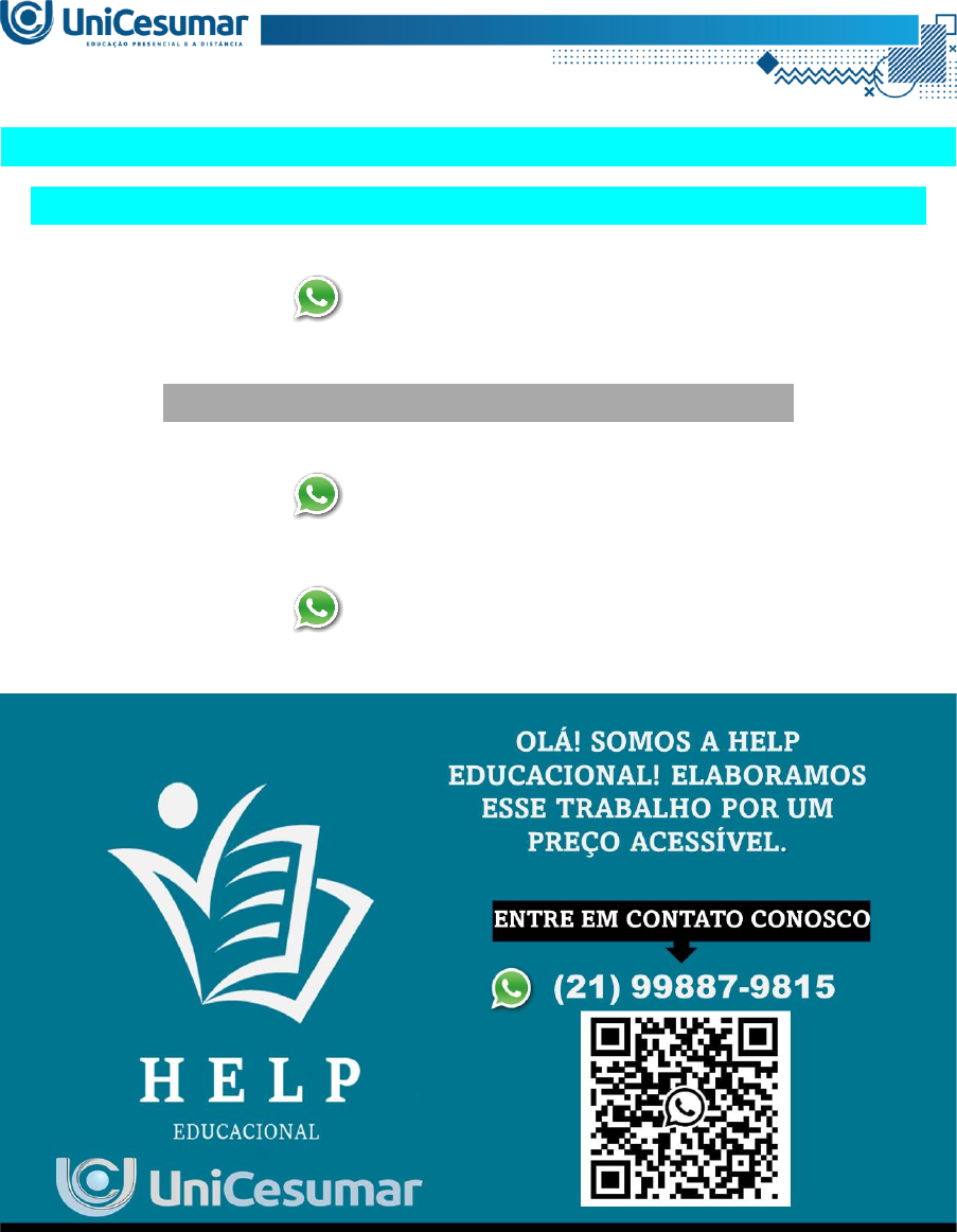 ATIVIDADE 1 – AGRO - NOÇÕES DE GESTÃO FINANCEIRA E COMÉRCIO EXTERIOR NO AGRONEGÓCIO - 53_2024 (21) 99887-9815 ASSESSORIA NOS SEUS TRABALHOS (21) 99887-9815 (21) 99887-9815 A capitalização consiste no cálculo de juros e na incorporação desses juros ao capital inicial aplicado ou emprestado. Existem duas formas distintas de capitalizar um capital: a simples e a composta. Os regimes de juros simples e composto diferem no modo como os juros são calculados e incorporados ao principal e isso tem implicações importantes nas formas de cálculo. Nos regimes de capitalização simples e composto, tanto o prazo da operação como a taxa de juros devem necessariamente estar expressos na mesma unidade de tempo. Por exemplo, admita que um fundo de poupança esteja oferecendo juros de 2% ao mês e os rendimentos sejam creditados mensalmente. Nesse caso, o prazo a que se refere a taxa e o período de capitalização são coincidentes, atendendo à regra básica. Contudo, muitas ve- zes nos deparamos com situações nas quais a taxa de juros apresentada é diferente do período de capitalização. Por exemplo, taxa de juros de 6% a.a. aplicada durante seis me- ses. Nesse caso, teremos juros anuais, mas a aplicação será apenas de seis meses. Quando não há coincidência nos prazos, devemos necessariamente realizar a conversão. Fonte: BOECHAT, A. M. da F.; LOPES, J. C. de J.; ALVES, Y. B. Noções de gestão finan- ceira e comércio exterior no agronegócio. Maringá - PR.: UniCesumar, 2020. De acordo com as informações apresentadas, apresente a diferença entre a equivalência de juros no regime simples e no regime composto. Exemplifique com a conversão de uma taxa de juros de 1,5% a.m. para uma taxa equivalente ao ano. OLÁ! SOMOS A HELP EDUCACIONAL! ELABORAMOS ESSE TRABALHO POR UM PREÇO ACESSÍVEL. ENTRE EM CONTATO CONOSCO (21) 99887-9815