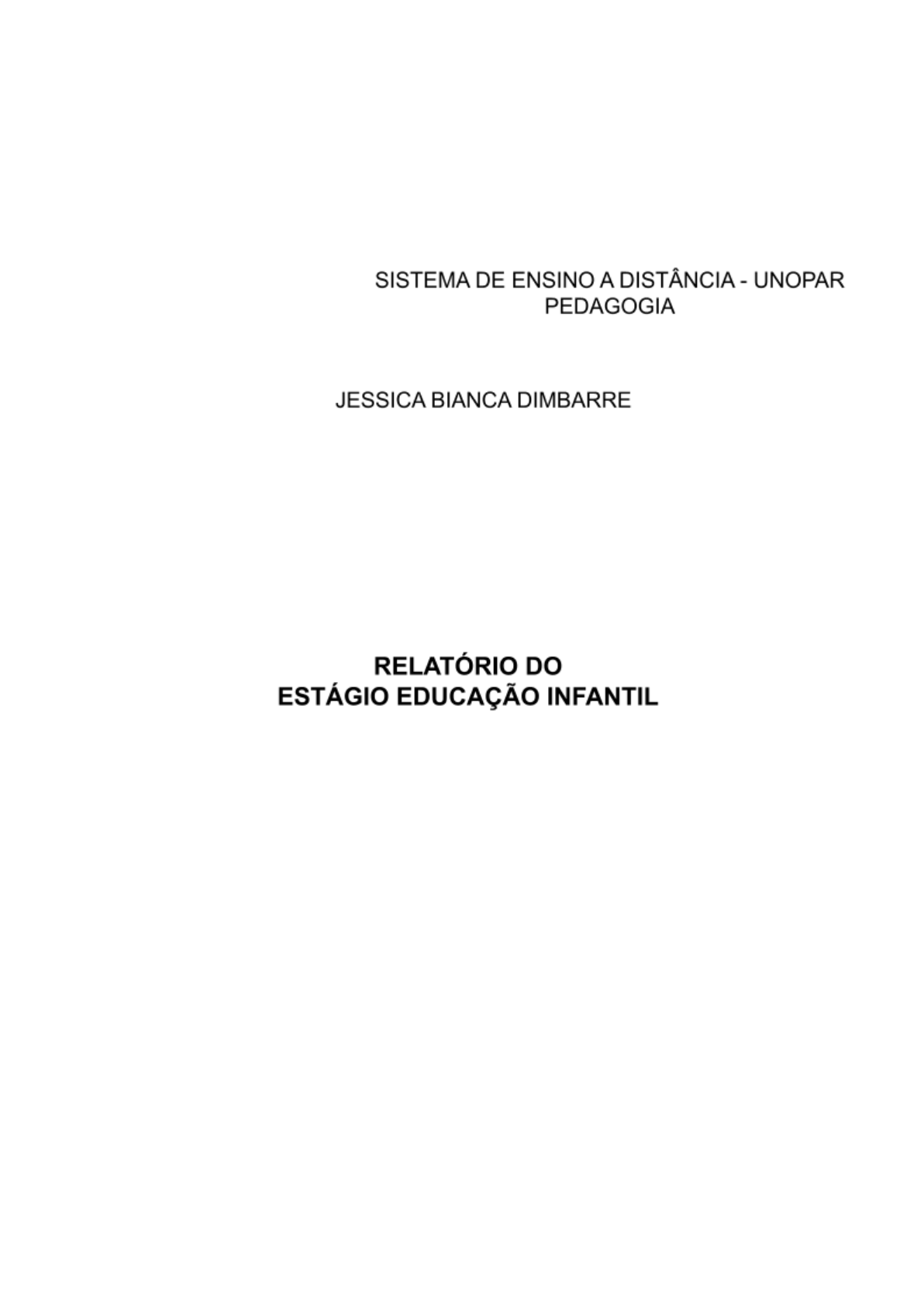 SUMÁRIO 1 INTRODUÇÃO......................................................................................................3 2 LEITURAS OBRIGATÓRIAS................................................................................4 3 PROJETO POLITICO PEDAGÓGICO..................................................................6 4 A ATUAÇÃO DO PROFESSOR E SUA INTER-RELAÇÃO COM A EQUIPE ADMINISTRATIVA E PEDAGOGICA..................................................................7 5 BORDAGEM DOS TEMAS TRANSVERSAIS CONTEMPORÂNEOS DA BNCC..9 6 METODOLOGIAS ATIVAS COM USO DE TECNOLOGIAS DIGITAIS...............11 7 PLANOS DE AULA...............................................................................................12 8 CONSIDERAÇÕES..............................................................................................16 9 REFERÊNCIAS....................................................................................................17 3 INTRODUÇÃO O presente relatório de estágio supervisionado na educação infantil tem como finalidade proporcionar ao acadêmico o conhecimento de como acontece a rotina na educação infantil e o trabalho realizado pelos professores nas diferentes classes. Os objetivos deste trabalho são: realizar a leitura obrigatória e a elaboração do texto, conhecer a função e a estrutura do Projeto Político Pedagógico (PPP), conhecer a atuação do professor regente e sua inter-relação com a equipe pedagógica e administrativa, assim como a atuação da equipe pedagógica no acompanhamento do desenvolvimento da disciplina, conhecer a abordagem dos temas contemporâneos transversais da BNCC (meio ambiente, economia, saúde, cidadania e civismo, multiculturalismo e ciência e tecnologia), pesquisar metodologias ativas com uso de tecnologias digitais e elaboração dos planos de aula. A criança em fase escolar, deve ser vista em seu próprio mundo e não como uma mera projeção do adulto, dessa forma, conquista a importância da construção de um conceito moderno sobre a infância, permite um novo olhar sobre a atuação da educação infantil. Desta forma iremos, abordar neste relatório a temática com conceitos de ensino infantil, tendo em vista a divisão das fases, onde desenvolveremos atividades voltadas a construção do conhecimento das crianças quanto a si e quanto ao outro. Assim, como competências serão compreendidas as concepções e as práticas da atuação docente na educação infantil, na articulação dos aspectos filosóficos e sociológicos à prática docente, tendo em vista a formação do sujeito crítico e autônomo. Para obtenção dos objetivos, a metodologia adotada no trabalho, baseou-se em uma pesquisa, com uma abordagem de revisão bibliográfica que proporcionará um aprofundamento do tema do trabalho docente. 4 2 LEITURAS OBRIGATÓRIAS É nessa fase infantil que a criança, ganha um espaço para proporcionar as capacidades motoras, de forma continuada e processada na qual a criança assimila ao comportamento do adulto, onde este deve orientar e ensinar com base no que envolve o aprendizado infantil. Como expressa o autor, é na educação infantil que a criança em seus primeiros dias as atividades das crianças adquirem um significado próprio num sistema de comportamento social. O objeto chega até a criança através do outro, através de um processo de desenvolvimento profundamente enraizado nas ligações entre história individual e história social (VYGOTSKI, 2003). Vê-se então, a importância de uma educação sistematizada, apesar das mudanças que são estabelecidas e amparadas por leis, que estão em constantes mudanças, afim de modificar formas e meios do aprendizado para que seja de forma positiva tanto para o educador quanto para o educando e assim estabelecer um ensino de qualidade. Cerisara (2002), ao discutir a educação infantil nas reformas educacionais, lembra que o texto final da LDB evidencia certa concordância com os princípios neoliberais apresentados pelo governo e pelo Poder Público no período. Outro aspecto importante que deve ser lembrado, segundo a autora, diz respeito ao direito de todas as crianças à educação infantil. Todos têm direito à Educação de qualidade, esse direito deve ser respeitado pela escola, corpo docente e pela família do aluno, além ser de responsabilidade governamental e dos direitos constitucionais. Os estudos que atribuem aos Jardins de Infância uma dimensão educacional e não assistencial, como outras instituições de educação infantil, deixam de levar em conta as evidências históricas que mostram uma estreita relação entre ambos os aspectos: a que a assistência é que passou, no final do século XIX, a privilegiar políticas de atendimento à infância em instituições educacionais e o Jardim de Infância foi uma delas, assim como as creches e escolas maternais. (KUHLMANN, 2001, p. 26). Na educação infantil, este direito torna-se ainda mais garantido pela Lei de Diretrizes e Bases, pois é a primeira fase do conhecimento do indivíduo que ele levará para a vida toda. 5 3 PROJETO POLÍTICO PEDAGÓGICO (PPP) 1. O que é o PPP e qual a importância desse documento para o ambiente escolar? O PPP é um projeto político pedagógico de ensino da escola, que é de grande importância porque resolve as informações necessárias sobre a escola. O projeto Político pedagógico da Escola (PPP) é outro passo para a construção de uma proposta pedagógica que mobilize toda a escola para participar e definir pedagogia de maneira democrática. Essa é uma diretriz básica e busca uma A nova abordagem objetivou a realização dos objetivos desejados para garantir que os alunos obtenham oportunidades eficazes de aprendizado. 2. A Base Nacional Comum Curricular (BNCC) é um documento normativo que define as aprendizagens essenciais que todos os alunos devem se apropriar na educação básica. Sendo assim, todas as escolas devem organiz