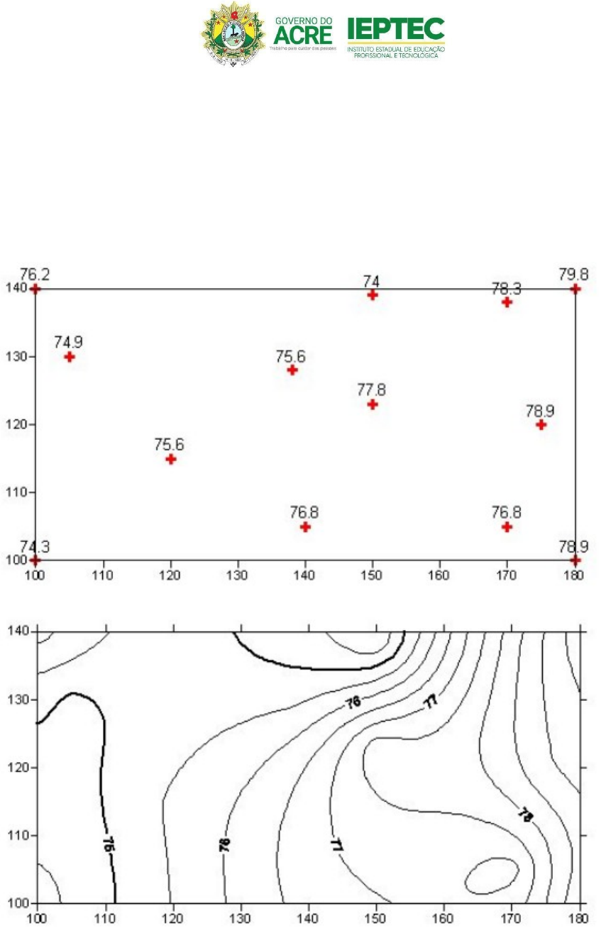 Centro de Educação Profissional e Tecnológica – CEPT Roberval Cardoso EXERCÍCIO SOBRE CURVAS DE NÍVEIS Dados os pontos cotados, desenhar as curvas de nível. Compare com as curvas geradas a partir de um programa para Modelagem Digital de Terrenos. Desenhar as curvas com equidistância de 0,5m. As cotas estão em metros. NOME: image1.png image2.jpeg