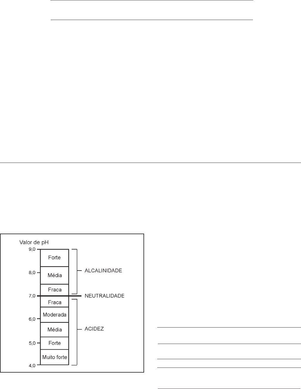 Manual Internacional de Fertilidade do Solo 23 O QUE É pH DO SOLO? O TERMO pH define a acidez ou a alcalinidade re- lativa de uma substância. A escala de pH cobre uma amplitude de 0 a 14. Um valor de pH igual a 7,0 é neu- tro. Valores abaixo de 7,0 são ácidos e acima de 7,0 são básicos. O pH da maioria dos solos produtivos va- ria entre os valores de 4,0 e 9,0. Os graus de acidez e CAPÍTULO 2 REAÇÃO DO SOLO E CALAGEM Página • O que é pH do solo ........................................................... 23 • Fatores que afetam o pH do solo.................................... 24 • Como medir o pH do solo ................................................ 25 • Determinação das necessidade de calcário .................. 25 • Porque os solos ácidos devem receber calagem ......... 26 • Os níveis desejáveis de pH variam ................................. 30 • Como o calcário reduz a acidez do solo ........................ 30 • Época e freqüência das aplicações de calcário ............ 31 • Seleção do material calcário ........................................... 31 • Localização do calcário ................................................... 32 • Materiais calcários ............................................................ 33 • Solos com alto pH: calcários, salinos e sódicos .......... 33 • Perguntas de revisão........................................................ 35 Figura 2-1. Graus de acidez e alcalinidade encontrados na maioria dos solos agrícolas. de alcalinidade para esta amplitude de pH são mostra- dos na Figura 2-1. Um ácido é uma substância que libera íons hidrogênio (H+). Quando saturado com H, um solo comporta-se como um ácido fraco. Quanto mais H+ for retido no complexo de troca maior será a acidez do solo. O alumínio também age como um elemento acidificante e ativa o H+. O pH do solo simplesmente mede a atividade do íon hidrogênio e é expresso em termos logarítmicos. O significado prático da relação logarítmica é que cada unidade de mudança no pH do solo significa uma mu- dança de dez vezes no grau de acidez ou de alca- linidade. Isto quer dizer que um solo com pH 6,0 tem um grau de acidez 10 vezes maior do que um solo com pH 7,0 ou 10 vezes mais H+ ativo, e que as necessida- des de calcário aumentam rapidamente à medida que o pH diminui (acidez aumenta). Os graus relativos de acidez ou de alcalinidade, comparados com o pH neu- tro ou 7,0, são mostrados na Tabela 2-1. Tabela 2-1. Comparação da magnitude de acidez e alca- linidade a vários valores de pH. Acidez/alcalinidade comparada a pH 7,0 9,0 100 8,0 10 7,0 Neutralidade 6,0 10 5,0 Acidez 100 4,0 1.000 pH do solo Alcalinidade Manual Fert.pmd 11/04/2016, 11:4923 Manual Internacional de Fertilidade do Solo24 FATORES QUE AFETAM O pH DO SOLO O pH do solo é influenciado por vários fatores, in- cluindo: material de origem, precipitação, decomposi- ção da matéria orgânica, vegetação nativa, tipo de cul- tura, profundidade do solo, adubação nitrogenada e inundação. • Material de origem — Os solos desenvolvidos de rochas ou de material de origem básica geralmen- te possuem valores de pH mais altos do que aque- les formados de rochas ácidas (por exemplo: gra- nito). • Precipitação — A água da chuva, passando pelo solo, lixivia os nutrientes básicos, como o cálcio e o magnésio. Eles são substituídos por elementos acidificantes como o hidrogênio, o manganês e o alumínio. Assim sendo, os solos formados sob con- dições de alta pluviosidade são mais ácidos do que aqueles formados sob condições áridas. • Decomposição da matéria orgânica — A maté- ria orgânica do solo está continuamente sendo de- composta pelos microrganismos em ácidos orgâ- nicos, dióxido de carbono (CO2) e água, formando ácido carbônico. O ácido carbônico, por sua vez, reage com os carbonatos de cálcio e magnésio no solo para formar bicarbonatos solúveis que são lixiviados, deixando o solo mais ácido. A Figura 2-2 mostra o efeito a longo prazo do acúmulo e mineralização da matéria orgânica sobre o carbono orgânico (C), o N orgânico e o pH do solo. Figura 2-2. Mudanças no carbono orgânico, nitrogênio orgânico e pH do solo quando o solo super- ficial foi deixado em pousio por 82 anos num clima temperado úmido (Rothamsted, Ingla- terra). • Vegetação nativa — Os solos formados sob ve- getação de floresta tendem a ser mais ácidos do que aqueles desenvolvidos sob vegetação de gramíneas. As coníferas causam maior acidez do que as florestas decíduas. • Tipo de cultura — Os solos podem tornar-se mais ácidos quando as colheitas removem as bases. Cul- turas diferentes removem quantidades diferentes de cálcio e magnésio, como pode ser visto na Ta- bela 2-2. As leguminosas geralmente contêm maio- res quantidades destes nutrientes do que as plan- tas não leguminosas. As quantidades de cálcio e de magnésio também variam de acordo com a parte da planta que é removida. Tabela 2-2. Estimativa das quantidades de cálcio e de magnésio removidas pelas culturas. Remoção (kg/ha) Ca Mg Alfafa 8 (feno) 196 45 Banana 60 (frutos) 23 25 Milho 9 (grãos) 2 15 Algodão 1 (fibra) 2 3 Soja 3 (grãos) 7 15 Os valores se referem às quantidades totais removidas pe- las culturas nas plantas colhidas. Quando a palhada de uma cultura ou a forragem é removida de um solo, um balanço final ácido permane- ce. Quando os grãos ou sementes são removidos, o balanço final é o aumento do pH porque as sementes contêm um alto nível de componentes ácidos. Várias leguminosas liberam íons de hidrogênio (H+) na sua rizosfera quando estão fixando ativamente o nitrogênio (N2) atmosférico. A acidez gerada pode va- riar de 0,2 a 0,7 unidades de pH por mol de nitrogênio fixado. A Figura 2-3 mostra que a gramínea (Ryegrass) não afetou o pH do solo, enquanto a leguminosa (trevo vermelho) teve efeito significante na diminui