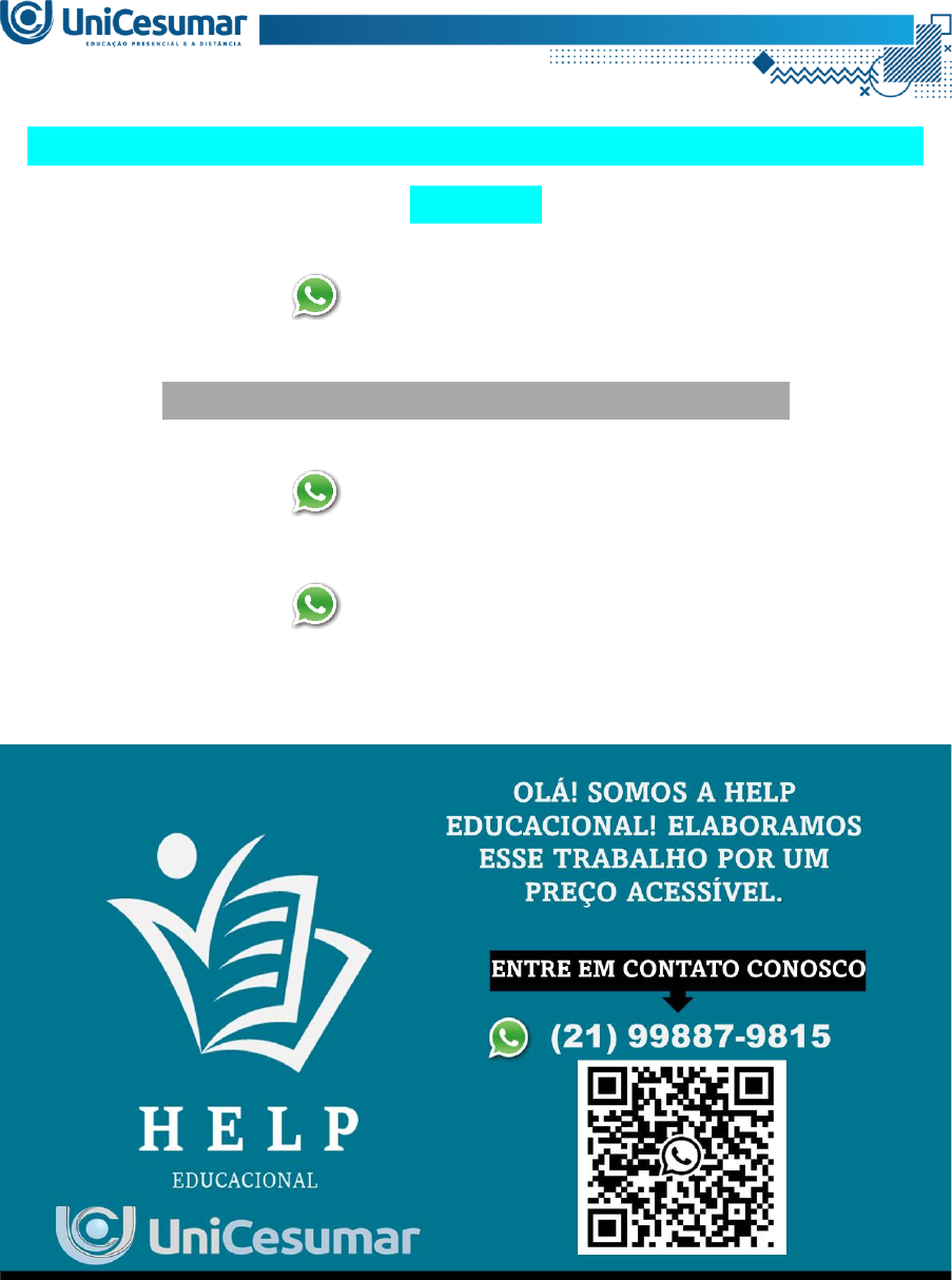MAPA – BEDU - ESPORTES INDIVIDUAIS: ATLETISMO - 53_2024 (21) 99887-9815 ASSESSORIA NOS SEUS TRABALHOS (21) 99887-9815 (21) 99887-9815 O Atletismo precisa ser compreendido como uma expressão do movimento humano intenci- onal, planejado e treinado. Este conjunto de movimentos, reconhecidos como uma categoria denominada Atletismo, foram desenvolvidos pelo homem e são estudados por ele nas mais diversas áreas de conhecimento. Com o passar do tempo, os espaços para a prática do atletismo foram construídos exclusi- vamente para o esporte, observando-se as regras de cada modalidade e pensando na pos- sibilidade de acontecerem várias provas ao mesmo tempo, em um único lugar. Como profissionais da área da Educação Física, precisamos entender que o conhecimento da técnica não impede que o processo de construção do movimento aconteça em conjunto, principalmente quando estamos trabalhando com grupos de crianças que precisam, antes de aprender a técnica, desenvolver as habilidades motoras, pois essas crianças ainda não têm a percepção de suas competências. Sem falar também dos inúmeros adultos que che- gam aos nossos cuidados com percepção zero daquilo que eles podem e do que são capa- zes de realizar. Fonte: OLIVEIRA, H. G. de; BARALDI, É. C. da C. Esportes Individuais: atletismo. Ma- ringá: UniCesumar, 2022. Partindo disso, responda as questões a seguir: A partir da imagem da pista de atletismo, insira no quadro a seguir as provas corresponden- tes aos locais em que os números estão 1 2 3 4 5 6 7 8 9 2) Imagine que você, como professor(a)/profissional de Educação Física, está ministrando uma aula de atletismo, e um aluno lhe diz que tem muitas dúvidas sobre o Atletismo. Neste momento, você o pergunta quais eram as dúvidas do seu aluno, e ele começa a perguntar os questionamentos a seguir: *Observação: responda como se estivesse respondendo ao seu aluno, ou seja, de forma completa e explicativa. A) Professor, o que são as corridas de velocidade pura e de meio fundo? Qual a diferença entre elas? Resposta: B) Existe prova de grande fundo? Como se realiza? Resposta: C) Em quais provas utilizamos a saída de bloco? Resposta: D) Na corrida sobre barreiras, o que acontece quando um atleta derruba uma barreira? Resposta: E) Qual a diferença entre os tipos de passagem do bastão? Resposta: F) Os saltos possuem fases em comum? Quais são? Resposta: G) E os lançamentos? Também possuem fases em comum? Quais? Resposta: OLÁ! SOMOS A HELP EDUCACIONAL! ELABORAMOS ESSE TRABALHO POR UM PREÇO ACESSÍVEL. ENTRE EM CONTATO CONOSCO (21) 99887-9815