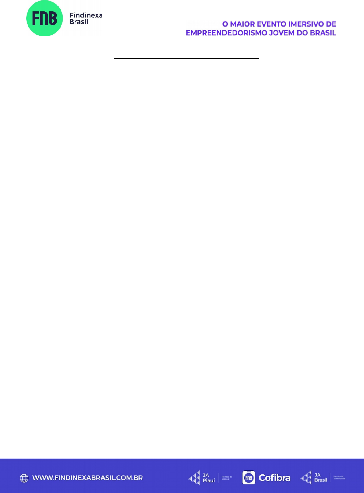 Manual Geral Staff FNB 2024 – Atividades É com muito prazer que damos as boas-vindas ao Manual Geral de Staffs para as atividades do FNB 2024. Sabe quando bate aquela dúvida sobre uma determinada atividade, ou quando o participante faz AQUELA pergunta? Nós entendemos! E é por isso que preparamos com muito carinho este manual para você! Aqui você encontrará detalhadamente o passo a passo de cada uma das atividades planejadas e futuramente executadas para o Findinexa Brasil 2024. Esperamos que aproveite a leitura (vai ser um pouco longa haha) e que este manual seja de muita serventia para você. Desde já agradecemos a sua cooperação! Nossas atividades não seriam as mesmas sem o apoio de cada uma das demais equipes envolvidas. Vamos todos unidos em prol de materializar uma semana mágica e incrível para cada participante. Contamos com você! <3 Sumário: · Rally de Provas ...................................................................................................................... · Empreendedor Destaque ...................................................................................................... · Feira de Miniempresas ......................................................................................................... · Minha Terra ........................................................................................................................... · Integração de Quartos ........................................................................................................... · Negociando ........................................................................................................................... · Show de Talentos ................................................................................................................. · Trilhas Para o Futuro ............................................................................................................ · Rally de Provas: 1 - Como funciona o Rally de Provas? O Rally de Provas é um circuito de atividades em que os participantes, divididos em equipes, cumprem os desafios propostos por cada uma das 10 estações. Cada estação possui 1 ou mais staffs responsáveis, incumbidos de garantir que a atividade corra normalmente. Todas as provas terão o tempo máximo de 4 minutos para serem finalizadas. 2 - Qual o papel do Staff no Rally? Os staffs que auxiliarão nesta atividade deverão permanecer nas respectivas estações designadas, garantindo que as atividades sejam realizadas sem interferências. Além disso, ao final de cada prova, o staff deve reorganizar os materiais utilizados na prova, de modo que estejam prontos para a próxima equipe. 3 - Método de avaliação do Rally de Provas: Em todas as provas do circuito as equipes serão pontuadas de acordo com o critério de avaliação da prova (tempo, agilidade etc.), distribuídos os pontos da seguinte forma: 1º Lugar: 10 pontos 2º Lugar: 9 pontos 3º Lugar: 8 pontos . . 10º Lugar: 1 ponto Ao final das provas, serão somados os pontos ganhos por cada equipe e as 3 equipes com o maior número de pontos ganhos nas provas assumirão o posto de primeiro, segundo e terceiro lugar respectivamente. Na planilha a seguir, está disponível para conhecimento, a tabela de pontuação conforme o critério de avaliação de cada estação: Planilha de Pontuação Rally 2024.xlsx - Planilhas Google Para a equipe de Participantes: Os staffs que auxiliarão nesta atividade serão escolhidos pela respectiva diretora da área, respeitando os critérios de disponibilidade de cada um e acomodando-os conforme as necessidades das provas. Os staffs escolhidos deverão permanecer nas respectivas estações designadas, garantindo que as atividades sejam realizadas sem interferências externas. Além disso, ao final de cada prova, o staff deve reorganizar os materiais utilizados na prova, de modo que estejam prontos para a próxima equipe. Por ser uma prova de alta demanda, staffs de outras áreas poderão ser convocados para ajudar, de acordo com a sua disponibilidade, para suprir a quantidade de pessoas necessária. Em cada estação, o staff receberá uma planilha com os critérios de avaliação daquela prova, assim como os espaços para colocar os resultados de cada equipe no Rally. É muito importante que o staff detenha sua atenção nesse quesito, para que todas as pontuações sejam anotadas corretamente, de modo que possam ser computadas adequadamente no final do rally e seja escolhida uma equipe vencedora. Para a equipe de Produção: As explicações para a equipe de produção estão em cada uma das atividades na aba “montagem”, acompanhadas dos respectivos desenhos e medidas. Estação 1 – Futebol de Sabão: Nesta prova os participantes deverão chutar a gol bexigas cheias de água, com o objetivo de acertar o maior número de bexigas possível. Os participantes só poderão chutar uma bexiga por vez. Se estourar, devem pegar outra. Só serão computadas como pontos as bexigas que entrarem no gol sem estourar. Participam 5 representantes do grupo. Método de Avaliação: Será contabilizado o número de gols do grupo. O grupo com o maior número será o vencedor da estação. Staffs Necessários: 2 Staffs serão necessários nesta prova. Um deles deverá auxiliar os participantes na entrada e saída do inflável garantindo que não se machuquem no percurso. O segundo ficará responsável por computar todas as pontuações, estando atento para o preenchimento da planilha corretamente. Montagem: Para esta prova, a equipe de produção deve somente auxiliar a equipe responsável pelo inflável, promovendo o melhor espaço para a montagem do equipamento. A equipe externa contratada será responsável por desmontar o equipamento ao final do rally. Materiais: 15 pacotes de bexigas; inflável de futebol de sabão – preço estimado de R$ 400,00 Estação 2 – Torta na cara: Nesta estação, os participantes serão colocados e