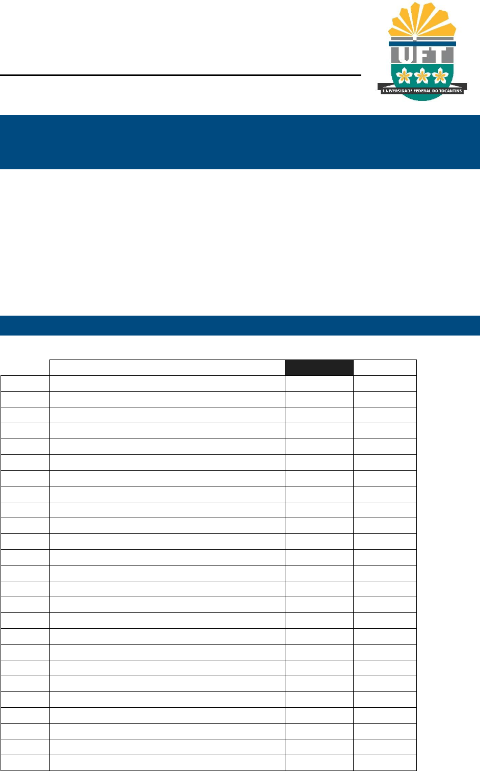 UNIVERSIDADE FEDERAL DO TOCANTINS CÂMPUS UNIVERSITÁRIO DE ARRAIAS MESTRADO PROFISSIONAL EM MATEMATICA Av. Juraíldes de Sena Abreu – Câmpus Buritizinho | 77330-000 | Arraias/TO (63)3653-1531 | www.uft.edu.br | profmat_arraias@uft.edu.br EDITAL N°05/2016 – PROFMAT RESULTADO DO ENA 2017 A Universidade Federal do Tocantins (UFT), por meio da Pró-Reitoria de Pesquisa e Pós- graduação (PROPESQ) e do Programa de Mestrado Profissional em Matemática em Rede Nacional (PROFMAT - Arraias) torna público o Resultado final do Exame Nacional de Acesso 2017. Conforme Edital PROFMAT n 08, Retificação I, publicado em 30 de julho de 2016., Lembramos que em caso de empate nas notas totais no ENA 2017, o desempate será dado, para fins de classificação, em todas as fases, pelo critério da maior idade (Conforme decisão do Colegiado).,,,,=, Candidatos Aprovados e Classificados Ponto de Corte: 24 pontos PONTUAÇÃO 1 ELIAS ARAÚJO DO NASCIMENTO 44 2 DUCIANY BATISTA DA SILVA RODRIGUES 42 3 RENATO FRANCISCO MACHADO 40 4 FABIO COSTA DO AMARAL 38 5 GENILDO COELHO MENEZES 34 Maior Idade 6 CRISTIANE CASTRO PIMENTEL 34 7 LUCIANO NEVES DE SANTANA 32 Maior Idade 8 EDIVALDO FERNANDES DA SILVA 32 9 SEVERINO CASSIANO DE SOUZA FILHO 30 Maior Idade 10 GILVAN SAMYR PEIXOTO 30 11 MÁRIO FERREIRA DO NASCIMENTO FILHO 30 12 LUIZ ANTÔNIO DE ASSIS MACHADO 30 13 LAURO RODRIGUES DE ASSUNCAO 28 Maior Idade 14 MARIA APARECIDA PEREIRA DE OLIVEIRA 28 15 FÁBIO DA COSTA ALECRIM 28 16 FERNANDO CÉLIO DA SILVA 28 17 DOUGLAS CATULIO DOS SANTOS 28 18 ROSÂNGELA PIMENTA DE SOUSA 26 Maior Idade 19 REGINA GOMES VALADARES DIAS 26 20 DEUSMAR OLIVEIRA DE BORBA 26 21 PAULO BATISTA FRANCA 26 22 ARLENE DE OLIVEIRA CORDEIRO 26 23 SABRINA KAYRA FERREIRA DE OLIVEIRA 26 24 ARLY LEITE RIBEIRO 24 Maior Idade 25 REGINA CELIA FLORES SILVEIRA ROCHA 24 Data da Matrícula Primeira chamada: 05, 06 e 07 de dezembro de 2016. Segunda chamada: 08 e 09 de dezembro de 2016. Demais Candidatos Aprovados Aguardar chamada para matrícula, em segunda chamada, caso tenha vagas remanescentes em 07 de dezembro de 2017. PONTUAÇÃO 1 VERONICA MARTINS DE ARAUJO MOREIRA 24 Maior idade 2 JESIAS COSMO DA SILVA 24 3 GILCINEY JARDIM DA SILVA 24 4 ÉRICA CRISTINA DA SILVA GLÓRIA 24 5 WALDISNEY GONÇALVES DE ALMEIDA 24 6 ADEMILSON RIBEIRO GLÓRIA 22 Maior idade 7 PAULO FERREIRA DE SOUZA 22 8 ALISON SANTOS ASSUNÇÃO 22 9 MARIA JOSÉ COUTINHO DE SOUZA 22 10 APARECIDA CLEIDE ADAMI CRUZ 20 Maior idade 11 ANTONIO CARLOS DE SOUZA 20 12 ECLÉSIO FERNANDES DOS SANTOS 20 13 JUCELIA FERREIRA DE SOUSA 20 14 WANDEILSON DIAS SABINO 20 15 CHRISTIANE SILVA MACHADO ARAUJO 20 16 FERNANDO SOUSA FRANÇA 20 17 DRIELLE PASSOS ALVES 20 18 LUCIENE COSTA SANTOS 20 19 FELLIPE DIONIZIO DE SANTANA 20 20 ELIAS BRAZ LETE 18 Maior idade 21 IVANETE ARAUJO OLIVEIRA BRITO 18 22 BENYSILVIO MAGELLA CARVALHO FERRAZ 18 23 MARCOS ANDRE TELES LUNA OLIVEIRA 18 24 AMISAEL CRUZ DE OLIVEIRA 18 25 FENYCIA DE ARAUJO FREITAS 18 26 FÁBIO JUNIO MOREIRA DA ROCHA 18 27 VANESSA MARTINS DE ARAUJO 18 28 TAYLLA CRISTINE BARBOSA SANTOS GONÇALVES 18 29 VALDEMIRO CARLOS DOS SANTOS SILVA FILHO 18 Coordenação PROFMAT UFT Arraias