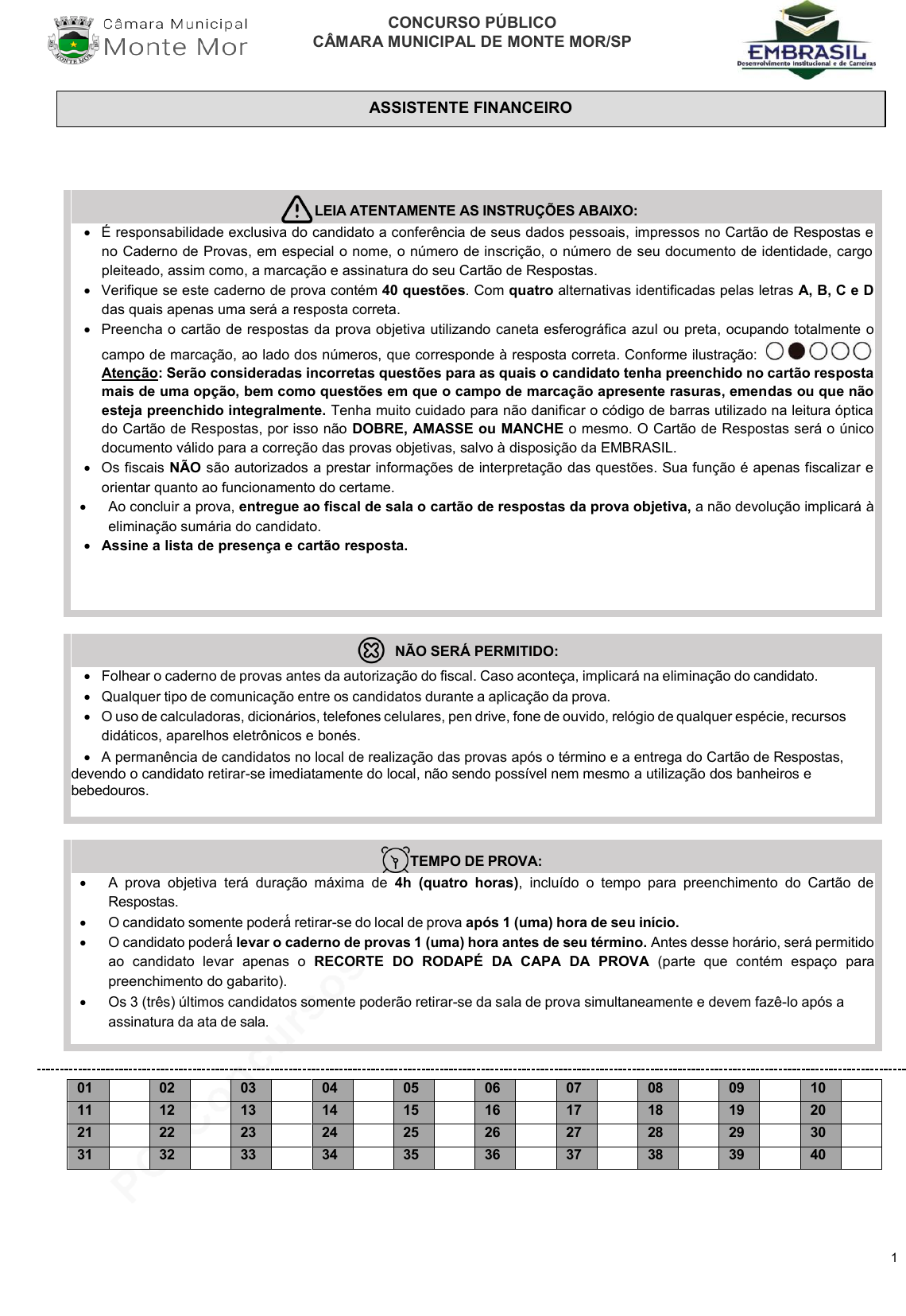 documento válido para a correção das provas objetivas, salvo à disposição da EMBRASIL.
