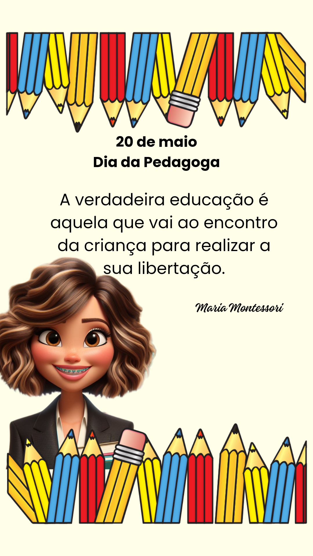 20 de maio Dia da Pedagoga A verdadeira educação é aquela que vai ao encontro da criança para realizar a sua libertação. Maria Montessori