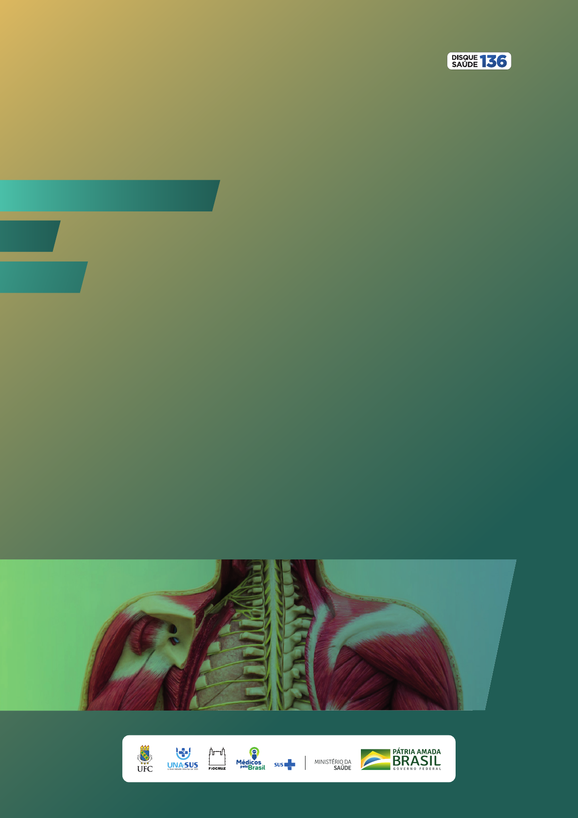 Programa Médicos pelo Brasil EIXO 4 | ATENÇÃO À SAÚDE Abordagem a problemas musculo- esqueléticos MÓDULO 22 Programa Médicos pelo Brasil EIXO 4 | ATENÇÃO À SAÚDE Universidade Federal do Ceará Ministério da Saúde 2023 Abordagem a problemas musculoesqueléticos MÓDULO 22 Instituições patrocinadoras: Código de barras de identificação e número do ISBN Ministério da Saúde Secretaria de Atenção Primária à Saúde (SAPS) Secretaria-Executiva da Universidade Aberta do SUS (UNA-SUS) Fundação Oswaldo Cruz (Fiocruz) Universidade Federal do Ceará (UFC) Faculdade de Medicina (Famed) Núcleo de Tecnologias e Educação a Distância em Saúde da Faculdade de Medicina da UFC (NUTEDS/UFC) B823a Brasil. Ministério da Saúde. Abordagem a problemas musculoesqueléticos [módulo 22] / Ministério da Saúde, Universidade Federal do Ceará. Brasília : Fundação Oswaldo Cruz, 2023 Inclui referências. 157 p. : il., organogs., tabs. (Programa Médicos pelo Brasil. Atenção à saúde ; 4). ISBN 978-65-84901-16-2 1. Problemas musculoesqueléticos. 2. Dor muscular. 3. Atendimento clínico. 4. Sistema Único de Saúde. 5. UNA- SUS. I. Título II. Universidade Federal do Ceará. III. Série. CDU 610 Bibliotecário: Fhillipe de Freitas Campos | CRB1 3282 Ficha Técnica © 2022. Ministério da Saúde. Sistema Universidade Aberta do SUS. Fundação Oswaldo Cruz. Universidade Federal do Ceará. Alguns direitos reservados. É permitida a reprodução, disseminação e utilização dessa obra, em parte ou em sua totalidade, nos termos da licença para usuário final do Acervo de Recursos Educacionais em Saúde (ARES). Deve ser citada a fonte e é vedada a sua utilização comercial. Referência bibliográfica UNIVERSIDADE Federal do Ceará. Abordagem a Problemas Infecciosos [módulo 16]. In: MINISTÉRIO DA SAÚDE. Programa Médicos pelo Brasil. Eixo 4: Atenção à saúde. Brasília: UNA-SUS/Fiocruz, 2022. 149p. Ministério da Saúde Marcelo Antônio Cartaxo Queiroga Lopes | Ministro Secretaria de Atenção Primária à Saúde (SAPS) Raphael Câmara Medeiros Parente | Secretário Departamento de Saúde da Família (DESF) Renata Maria de Oliveira Costa | Diretor Coordenação Geral de Provisão de Profissionais para Atenção Primária (CGPROP) Carlos Magno dos Reis Venturelli | Coordenador Fundação Oswaldo Cruz (Fiocruz) Nísia Trindade Lima | Presidente Secretaria-executiva da Universidade Aberta do SUS (UNA-SUS) Maria Fabiana Damásio Passos | Secretária-executiva Coordenação de Monitoramento e Avaliação de Projetos e Programas (UNA-SUS) Alysson Feliciano Lemos | Coordenador Assessoria de Planejamento (UNA-SUS) Sybele Avelino Pereira Assessoria Pedagógica UNA-SUS Márcia Regina Luz Sara Shirley Belo Lança Vânia Moreira Revisor Técnico-Científico UNA-SUS Paula Zeni Miessa Lawall Rodrigo Pastor Alves Pereira Rodrigo Luciano Bandeira de Lima Universidade Federal do Ceará Prof. José Cândido Lustosa Bittencourt de Albuquerque | Reitor Faculdade de Medicina da UFC Prof. João Macedo Coelho Filho | Diretor Núcleo de Tecnologias e Ead em Saúde da Faculdade de Medicina da UFC Luiz Roberto de Oliveira | Coordenador Universidade Federal do Ceará (UFC) Coordenação da UNA-SUS/UFC Endereço: Rua Professor Costa Mendes, 1608 - Rodolfo Teófilo - Fortaleza-CE -Bloco Didático - Térreo CEP: 60430-140 - (85) 3366-8055 / 3366-8654 E-mail:nuteds.comunica@nuteds.ufc.br Site: http://www.nuteds.ufc.br/ CRÉDITO DE PRODUÇÃO Revisão Ministério da Saúde Secretaria de Atenção Primária à Saúde Eduardo Ricardo Viegas Santo Revisor Técnico-Científico UNA-SUS Rafaela Aprato Menezes Luciano Nunes Duro Paula Zeni Miessa Lawall Rodrigo Pastor Alves Pereira Rodrigo Luciano Bandeira de Lima Designer Gráfico UNA-SUS Claudia Schirmbeck APOIO TÉCNICO UNA-SUS Acervo de Recursos Educacionais em Saúde (ARES) – UNA-SUS Fhillipe de Freitas Campos Juliana Araujo Gomes de Sousa Tainá Batista de Assis Engenheiro de Software UNA-SUS José Rodrigo Balzan Onivaldo Rosa Júnior Desenvolvedor de Moodle UNA-SUS Claudio Monteiro Jaqueline de Carvalho Queiroz Josué de Lacerda Silva Luciana Dantas Soares Alves Lino Vaz Moniz Márcio Batista da Silva Rodrigo Mady da Silva Créditos Coordenador Geral do NUTEDS/FAMED/UFC Luiz Roberto de Oliveira Coordenador Acadêmico (relacionado à temática) Mônica Cardoso Façanha Gestão de Projetos Raquel de Melo Rolim Coordenador de Produção Pedagógica Andréa Soares Rocha da Silva Gerente de Tecnologia da Informação Diego Rodrigues Tavares Conteudista Allan Denizard Mota Marinho Carla Kerr Pontes João Victo Ferreira Alves Leandro Araújo da Costa Marco Túlio Aguiar Mourão Ribeiro Severino Ferreira Alexandre Edição Textual Emanoel Alves Cavalcante Ana Josiele Ferreira Coutinho Designer Gráfico Emanoel Alves Cavalcante Francisco Lucas Castro de Almeida Junior Designer Instrucional Ana Josiele Ferreira Coutinho Ilustrador de EaD Francisco Cristiano Lopes de Sousa Francisco Lucas Castro de Almeida Junior Administrador de AVA/Moodle NUTEDS/FAMED/UFC Cleyson Carvalho Cândido Desenvolvedor HTML NUTEDS/FAMED/UFC Luis Diego Pereira Cavalcante José Flávio Vasconcelos Alves Assessoria de Comunicação NUTEDS/FAMED/UFC Paulo Jefferson Pereira Barreto Revisão Ortográfica Maiara Sousa Soares Sumário Apresentação do módulo 1. Unidade 1 - Lombalgia Introdução da Unidade 1.1 Do que se trata a Lombalgia 1.2 Etiologia 1.3 Classificação 1.4 Abordagem diagnóstica: o que fazer? 1.5 Anamnese 1.6 Exame Físico 1.7 Exames Complementares 1.8 Projeto Terapêutico 1.9 Tratamento Medicamentoso 1.10 Avaliação de Prognóstico e acompanhamento 1.11 Quando Encaminhar 1.12 CID 10 1.13 Fechamento de Unidade 2. Unidade 2 – Dor no ombro Introdução da Unidade 2.1 Anatomia do ombro 2.2 Do que se trata 2.3 História Clínica e Exame Físico 2.4 Exames Complementares 2.5 Diagnóstico Diferencial 2.5.1 Síndrome do Impacto do Ombro 2.5.2 Lesão do Manguito Rotador 2.5.3 Tend