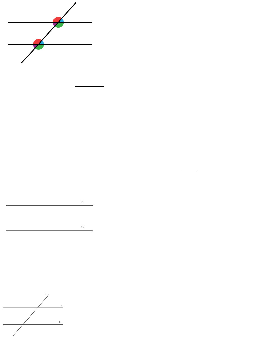 Na imagem, as retas r e s são paralelas. Note que elas estão sendo cortadas por uma reta t, então dizemos que a reta t é uma reta transversal às retas paralelas.