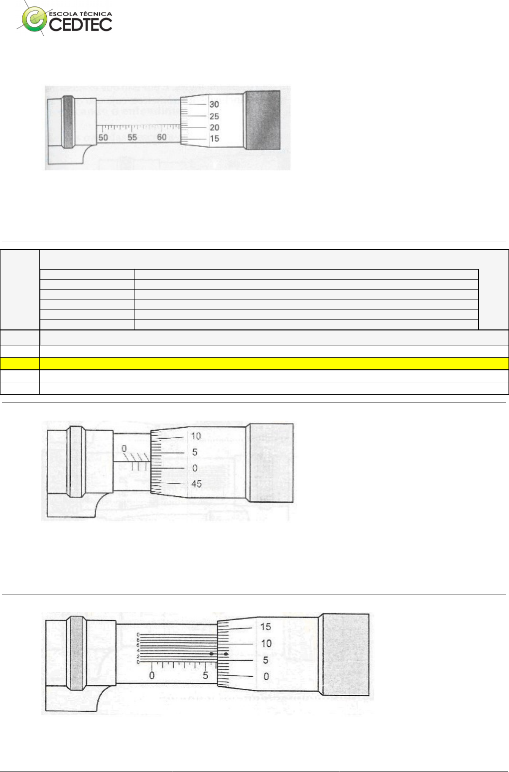 REVISÃO DE SIMULADO Nome: ALEXANDRE CORREIA DA SILVA Disciplina: Metrologia Respostas corretas são marcadas em amarelo X Respostas marcardas por você. Questão 001 Marque a alternativa correta que corresponde a leitura do instrumento abaixo. A) 63,71 mm B) 66,21 mm C) 65,71 mm D) 64,71 mm X E) 63,21 mm Questão 003 Marque a alternativa correta que corresponde a leitura do instrumento abaixo: A) 4,20 mm B) 3,12 mm X C) 3,02 mm D) 3,20 mm E) 6,20 mm Questão 004 Marque a alternativa correta que corresponde a leitura do instrumento abaixo: X A) 6,043mm B) 6,430mm C) 6,703mm Questão 002 Marque a alternativa correta que corresponde a relação dos componentes do micrômetro enumerados da segunda coluna de acordo com a primeira coluna. 1-Isolante térmico ( ) Construído de aço temperado retificado para garantir a exatidão do passo da rosca 2-Arco ( ) Feito em aço especial fundido e tratado para eliminar tensões internas 3-Fuso micrométrico ( ) Permite imobilizar o fuso numa medida predeterminada 4-Tambor ( ) Assegura uma pressão de medição constante 5-Catraca ( ) Onde se localiza a escala centesimal 6-Trava ( ) Isola a transmissão de calor das mãos para o instrumento A) 6, 5, 4, 3, 2 e 1 B) 1, 2, 3, 4, 5 e 6 X C) 3, 2, 6, 5, 4 e 1 D) 6, 2, 5, 4, 3 e 1 E) 4, 3, 6, 5, 2 e 1 23/06/2024 12:54:54 1/3 D)Questão 005 Marque a alternativa correta que corresponde a leitura do instrumento abaixo: A) 31,535 mm B) 35,535 mm C) 31,500 mm D) 29,535 mm X E) 30,035 mm Questão 006 Marque a alternativa correta que corresponde a leitura do instrumento abaixo: A) 0,140” B) 0,175” C) 0,275” D) 0,114” X E) 0,214” Questão 007 Marque a alternativa correta que corresponde a leitura do instrumento abaixo: X A) 0,0779” B) 0,0829” C) 0,0878” D) 0.0709” E) 0,0889” 7,043mm E) 7,073mm 23/06/2024 12:54:54 2/3 Questão 008 Marque a alternativa correta que corresponde a leitura do instrumento abaixo: A) 1,78 mm; B) 5,78 mm; C) -2,78 mm; D) 2,78 mm; X E) -3,78 mm; Questão 009 Marque a alternativa correta que corresponde à leitura do instrumento abaixo: A) 10º 45’ B) 12º 45’ X C) 11º 30’ D) 9º 55’ E) 11º 50’ Questão 010 Marque a alternativa correta que corresponde a leitura do instrumento abaixo: A) 25º 15’ B) 15º 25’ X C) 14º 15’ D) 5º 20’ E) 20º 15’ 23/06/2024 12:54:54 3/3 10mv1e25.png tenpnpv0.jpeg qx04pjut.jpeg v0ibzz21.jpeg yczlfe4e.jpeg 1dfetkii.jpeg 3sl5tcpz.jpeg k0qbc03l.jpeg fw2j5i0r.jpeg oyjazvku.jpeg