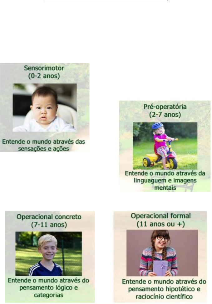 RESUMO PEDIATRIA Aula 01 – Brincar como recurso terapêutico • Brinquedo = Instrumento • Brincar = Ação • Brincadeira = ato/atividade (pode ser recreacional ou terapêutica) O brincar estimula função, brincando a criança adquire experiências sensoriais, motoras, cognitivas e sociais/afetivas. A R. Circular Secundária está relacionada ao OBJETO. • Maior interação com o adulto; • Gosta de brinquedos com movimentos; • Brinquedos estáticos com interação. Inteligência sensório-motora = criatividade, imaginação, faz de conta etc. FISIOTERAPIA E OBJETIVOS Objetivo – Estabilidade Objetivo – Deslocamento AULA 02 – SAÚDE DA CRIANÇA “Criança” – pessoa na faixa etária de zero a 9 anos, ou seja, de zero até completar 10 anos ou 120 meses. “Primeira infância” – pessoa de zero a 5 anos, ou seja, de zero até completar 6 anos ou 72 meses. 3 primeiros anos • Após isso a conexação neural fica mais lenta; • Nos 3 primeiros anos há mais plasticidade; • Quando ocorre a formação de conexões neurais. • Biológico – peso; • Afetivo e psíquico – interação familiar; • Social – ambiente em que está inserido. Após o nascimento, altura e peso devem ser aferidos até os 18 anos (curvas de crescimento- padrão de crescimento da criança está compatível com outras de mesmo sexo e idade e se está de acordo com o padrão de estatura da família). – Peso, idade e altura compatíveis. • Embrião: até 9 semanas de gestação, após esse período – Feto; • Neonato: do nascimento até a 2 semana de vida; • Maior ou igual 37 semanas: a termo; • Menor que 37 semanas: pré-termo (necessário idade corrigida) • 1 mês = 4 semanas. OBS: Toda criança com história de baixo peso ao nascer, deve ser considerada como criança de risco nutricional e acompanhada com maior assiduidade pelos serviços de saúde, principalmente no primeiro ano. • Crianças 5 anos = + fator ambiental do que genético; • Adolescência = + genético. OBS: o baixo peso ao nascer deve ser monitorado até os 2 anos de vida. OBS: a linha precisa ser ascendente! Perímetro aumentado: hidrocefalia; Perímetro diminuído: microcefalia. AULA 03 – TÔNUS MUSCULAR Tônus Muscular: Resistência encontrada quando uma articulação em um paciente em estado de relaxamento é movida passivamente. Estado de tensão ou atividade muscular contínua. O tônus pode ser alterado por lesão central ou periférica. Lesão em SNC (neurônio motor superior) indica HIPERTONIA e lesão em SNP (neurônico motor inferior) indica HIPOTONIA. O aumento do tônus causa uma maior resposta reflexa (hiperreflexia). ESPASTICIDADE (HIPERTONIA ELÁSTICA): Desordem motora caracterizada pela hiperexcitabilidade do reflexo de estiramento velocidade dependente, com exacerbação dos reflexos profundos e aumento do tônus muscular. (HIPERTONIA VELOCIDADE DEPENDENTE) Sinais clínicos: • Reflexos tendíneos aumentados (hiperreflexia); • Resposta do músculo depende da velocidade; • Flexores do MS e extensores do MI; • Clônus; • Sinal de Babinski. OBS: Sempre que há clônus significa que há espasticidade presente. Abertura rápida e relaxamento súbito. RIGIDEZ (HIPERTONIA PLÁSTICA): Aumento uniforme da resistência que persiste através de toda a ADM e é independente da velocidade do movimento. (comum no Parkinson e raro em crianças). Sinais clínicos: • Rigidez é relativamente constante e independente da velocidade do alongamento; • Afeta músculos extensores/flexores igualmente; • Reflexos tendíneos normais; • Rigidez em “CANO DE CHUMBO”. OBS: extensa lesão cortical Descerebração costuma ser pior que a decorticação, acontece quando há lesão em tronco encefálico e afeta o trato respiratório (centro de controle respiratório). Lesão em diencéfalo. • SNC – Apenas lesões no CEREBELO; • Temporária – Após AVE, lesão medular etc. Sinais clínicos: • Resistência ao mov. passivo está diminuída; • Hiporreflexia; • Hiperextensibilidade articular. EXTENSIBILIDADE: é o grau máximo de alongamento passivo que se pode imprimir a um músculo. ELÁSTICIDADE. PASSIVIDADE: é a resistência muscular ao movimento. O quanto o músculo é capaz de se opor a um alongamento. RIGIDEZ. • HIPERTONIA: Passividade aumentada e extensibilidade diminuída; • HIPOTONIA: Passividade diminuída e extensibilidade aumentada. Descarga de peso, alongamento mentido, mobilização articular, pressão inibitória, inibição reciproca em extensão. Alongamento, descarga de peso Dissociação, movimento passivo, alongamentos Ortostase e descarga de peso • Estímulos vestibulares rápidos aumentam o tônus (velocidade dependente) • Trocas posturais contra a gravidade (lentamente) – modula • Movimentos passivos: mobilização articular, proximal para distal, procurar posturas que alonguem. • Deslizamento: 3 a 4 vezes; • Alongamento passivo com estiramento; • Movimentos ativos de forma rápida. • Rotações: tanto na elástica quanto na plástica (dissociação de cinturas); • Hipertonia: descarga de peso sobre a articulação lento e mantido; • Pressão inibitória: pressão manual sob o ventre muscular espástico (utilizar antes do alongamento); • Hipotonia – tapping (tapinhas no ventre muscular), bobath; • Exercícios de propriocepção – instabilidade. OBS: Hipotonia usado para alinhamento e descarga de peso! FES OBS: Hipertonicos espásticos (36 graus) correto, hipotonicos 32 graus. AULA 04 – CRESCIMENTO MÚSCULO ESQUELÉTICO E AVALIAÇÃO OBS: Epifises cartilaginosas – crescimento. Diferenciação em TAMANHO e VOLUME! • Tônus flexor fisiológico do RN; • Diminuição do espaço IU. • Sem grau significativo de flexão, desalinhamento. • Importante: Posicionamento! • Posturas inadequadas; • Formas de sentar, dormir ou carregar inadequadas. • Acetabulo raso (não é concavo); • Ângulo do fêmur aberto; • Fêmur um pouco