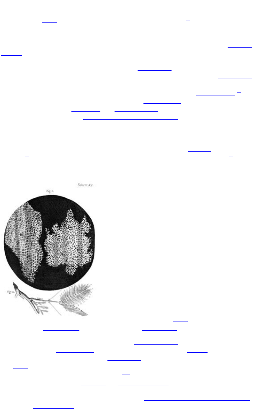 Células A célula (do latim cella, que significa "pequeno aposento")[1] é a unidade básica e fundamental de todos os organismos conhecidos. Uma célula é a menor unidade funcional da matéria viva. As células são frequentemente chamadas de "blocos de construção da vida". O estudo das células é denominado biologia celular ou citologia. Todas as as células são compostas por citoplasma, constituído por água e biomoléculas, como ácidos nucleicos e e proteínas, envolto por uma membrana plasmática. A maioria das células vegetais e animais são visíveis apenas ao microscópio, apresentando dimensões entre 1 e 100 micrômetros.[2] Os organismos podem ser classificados como unicelulares (consistindo em uma única célula, como as bactérias) ou multicelulares (incluindo plantas e animais). A maioria dos organismos unicelulares são classificados como microorganismos. O número de células em plantas e animais varia de espécie para espécie; estima-se que os humanos contêm algo em torno de 40 trilhões * (4×1013) de células.[3] O cérebro humano contém cerca de 80 bilhões dessas células.[4] História Desenho da estrutura do súber, conforme visto pelo microscópio de Robert Hooke e descrito em seu livro Micrographia As células foram descobertas pelo inglês Robert Hooke entre 1663 e 1665. Ao examinar em um microscópio rudimentar uma fina fatia de cortiça, verificou que era constituída por cavidades poliédricas, às quais chamou de células (do latim cella, pequeno aposento) por sua semelhança com as celas habitadas por monges cristãos em um mosteiro.[5][6] Na realidade, Hooke observou blocos hexagonais que eram as paredes de células vegetais mortas. Alguns anos depois, em 1674, Antonie van Leeuwenhoek, utilizando microscópios de invenção própria, foi o primeiro a analisar células https://pt.wikipedia.org/wiki/Latim https://pt.wikipedia.org/wiki/C%C3%A9lula#cite_note-1 https://pt.wikipedia.org/wiki/Biologia_celular https://pt.wikipedia.org/wiki/Biologia_celular https://pt.wikipedia.org/wiki/Citoplasma https://pt.wikipedia.org/wiki/Membrana_plasm%C3%A1tica https://pt.wikipedia.org/wiki/Membrana_plasm%C3%A1tica https://pt.wikipedia.org/wiki/Micr%C3%B3metro_(unidade_de_medida) https://pt.wikipedia.org/wiki/C%C3%A9lula#cite_note-2 https://pt.wikipedia.org/wiki/Unicelulares https://pt.wikipedia.org/wiki/Bact%C3%A9rias https://pt.wikipedia.org/wiki/Multicelulares https://pt.wikipedia.org/wiki/Organismos_unicelulares https://pt.wikipedia.org/wiki/Microorganismos https://pt.wikipedia.org/wiki/1_000_000_000_000 https://pt.wikipedia.org/wiki/Escalas_curta_e_longa https://pt.wikipedia.org/wiki/C%C3%A9lula#cite_note-3 https://pt.wikipedia.org/wiki/C%C3%A9lula#cite_note-4 https://pt.wikipedia.org/wiki/S%C3%BAber https://pt.wikipedia.org/wiki/Robert_Hooke https://pt.wikipedia.org/wiki/Micrographia https://pt.wikipedia.org/wiki/Robert_Hooke https://pt.wikipedia.org/wiki/Microsc%C3%B3pio https://pt.wikipedia.org/wiki/Corti%C3%A7a https://pt.wikipedia.org/wiki/Poliedro https://pt.wikipedia.org/wiki/Latim https://pt.wikipedia.org/wiki/C%C3%A9lula#cite_note-5 https://pt.wikipedia.org/wiki/C%C3%A9lula#cite_note-6 https://pt.wikipedia.org/wiki/Parede_celular https://pt.wikipedia.org/wiki/C%C3%A9lula_vegetal https://pt.wikipedia.org/wiki/Antonie_van_Leeuwenhoek https://pt.wikipedia.org/wiki/Microsc%C3%B3pio https://pt.wikipedia.org/wiki/Ficheiro:Cork_Micrographia_Hooke.png vivas, sobretudo de algas. Ele desenhou protozoários, tais como o Vorticella da água da chuva, e bactérias de sua própria boca. [7] A teoria celular foi estabelecida em 1839 por Matthias Schleiden e Theodor Schwann. A teoria afirma que todos os organismos são compostos por uma ou mais células, que as células são a unidade fundamental da estructura e função de todos os seres vivos, e que todas as células vem de células preexistentes.[7][8] Estrutura Células procarióticas Ver artigo principal: Procarionte Estrutura de uma célula procariótica típica Procariontes incluem as bactérias e archaeas, dois dos três domínios da vida. Células procarióticas foram as primeiras formas de vida na Terra. Elas são mais simples e menores do que células eucarióticas, e não possuem um núcleo celular e nem outras organelas delimitadas por membrana. O DNA de uma célula procariótica consiste em um único cromossomo circular que está em direto contato com o citoplasma. A região semelhante ao núcleo no citoplasma é denominada nucleoide. Os procariotos variam em tamanho, desde células muito pequenas, com diâmetro de aproximadamente 0,2 μm, até aquelas com mais de 700 μm de diâmetro.[9] Uma célula procariótica possui três regiões: • Envolvendo a célula está o envelope celular - geralmente consistindo de uma membrana plasmática coberta por uma parede celular que, para algumas bactérias, pode ser coberta por uma terceira camada chamada cápsula. Embora a maioria dos procariontes tenham uma membrana celular e uma parede celular, há exceções como Mycoplasma (bactérias) e Thermoplasma (arqueias), que possuem apenas a camada de membrana celular. O envelope dá rigidez à célula e separa o interior da célula de seu ambiente, servindo como filtro protetor. A parede celular consiste em peptidoglicano em bactérias e atua como uma barreira adicional contra forças externas. Também evita que a célula se expanda e rompa (citólise) pela pressão osmótica devido a um ambiente hipotônico. Algumas células eucarióticas (células vegetais e células fúngicas) também possuem parede celular. https://pt.wikipedia.org/wiki/Protozo%C3%A1rio https://pt.wikipedia.org/w/index.php?title=Vorticella&action=edit&redlink=1 https://pt.wikipedia.org/wiki/Bact%C3%A9ria https://pt.wikipedia.org/wiki/Boca https://pt.wikipedia.org/wiki/C%C3%A9lula#cite_note-Bolsover-7 https://pt.wikipedia.org/wiki/Teoria_celular https://pt.wikipedia.org/wiki/Matthias_Schleiden https://pt.wikipedia.org/wiki/Theodor_Schwann https: