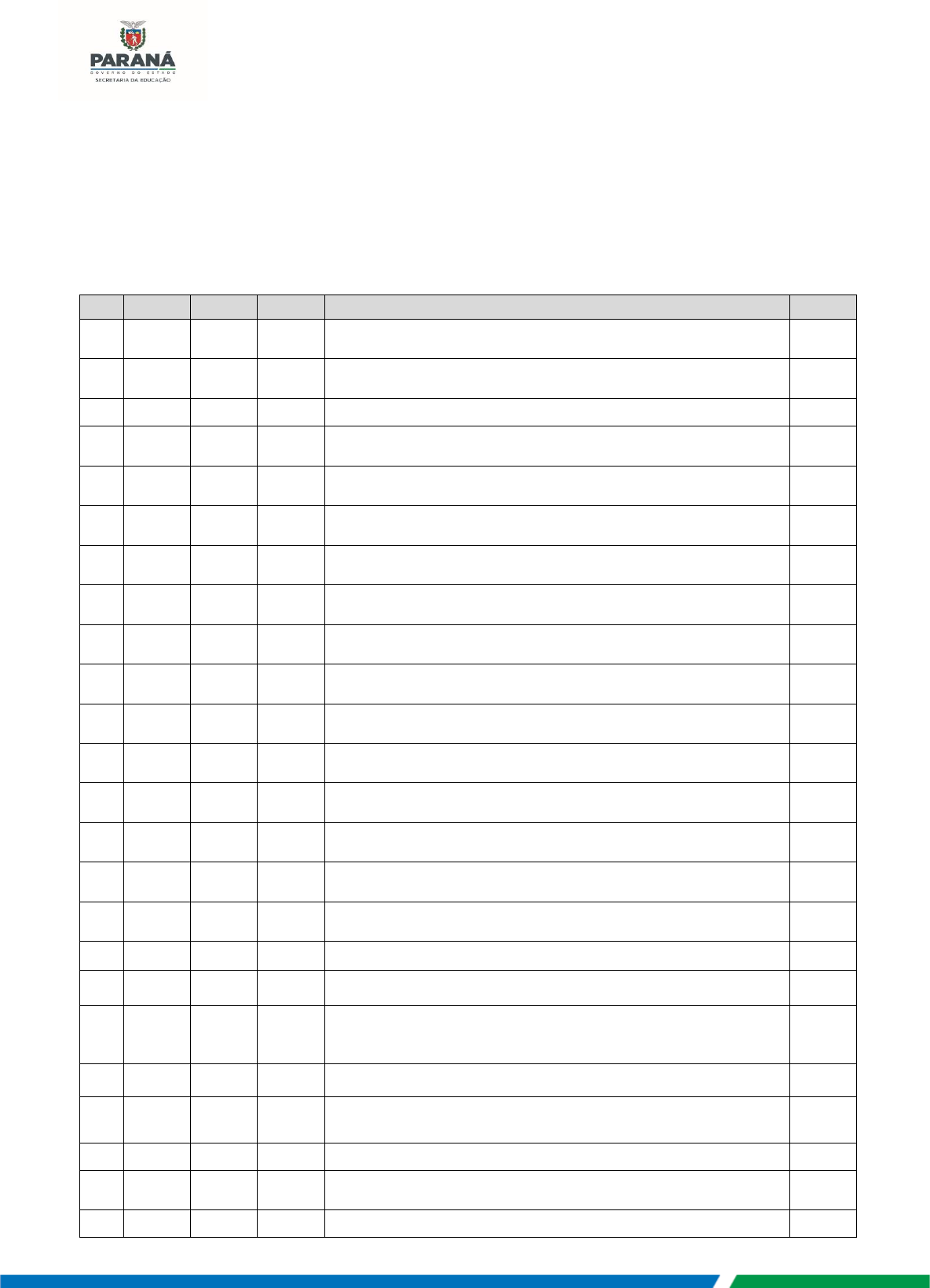 Avenida Água Verde, 2140 | Vila Isabel | Curitiba/PR | CEP 80240.900 | Brasil | Fone:41 3340.1500 www.educacao.pr.gov.br SECRETARIA DE ESTADO DA EDUCAÇÃO - SEED DIRETORIA DE EDUCAÇÃO – DEDUC DEPARTAMENTO DE DESENVOLVIMENTO CURRICULAR - DDC Gabaritos da Prova Paraná – 2ª Edição 2023 – Caderno 1 Aplicação da Prova Paraná Digital Gabaritos da Prova Paraná – 2ª Edição 2023 – Caderno 2 8º Ano – Ensino Fundamental – Anos Finais Ano Disciplina Posição Descritor Descrição Habilidade Gabarito 8º GEO 1 D22 Identificar estratégias de apropriação do espaço geográfico que (re)configuram as relações socioespaciais por diferentes agentes. C 8º GEO 2 D45 Compreender a relação entre a vegetação e outros elementos naturais (clima, relevo, hidrografia e solo) no continente americano. B 8º GEO 3 D46 Reconhecer os diferentes usos dos recursos naturais pelo homem. A 8º GEO 4 D47 Compreender as dinâmicas e os processos demográficos do continente americano. D 8º GEO 5 D36 Relacionar o desenvolvimento dos continentes ao seu processo de colonização. D 8º GEO 6 D43 Compreender os fenômenos migratórios e suas consequências para a dinâmica espacial do continente americano. B 8º GEO 7 D47 Compreender as dinâmicas e os processos demográficos do continente americano. C 8º GEO 8 D48 Analisar diferentes tipos de documentos que abordam indicadores de desenvolvimento. A 8º HIS 9 D31 Identificar as estratégias de resistência territorial, política e/ou cultural dos grupos sociais brasileiros. C 8º HIS 10 D16 Identificar as principais razões de conflitos políticos, econômicos, sociais e culturais em diversos contextos. B 8º HIS 11 D13 Reconhecer as diferentes formas de organização das sociedades como resultado das relações de poder. A 8º HIS 12 D23 Compreender os conflitos políticos, econômicos, sociais e culturais no domínio da força e do poder. C 8º HIS 13 D30 Identificar fatos e acontecimentos políticos, sociais e econômicos em diferentes fontes históricas. A 8º HIS 14 D31 Identificar as estratégias de resistência territorial, política e/ ou cultural dos grupos sociais brasileiros. B 8º HIS 15 D14 Analisar o contexto político, econômico, social e cultural em diferentes tempos e espaços. D 8º HIS 16 D11 Reconhecer processos econômicos em diferentes sociedades e contextos históricos. B 8º LI 17 D01 Localizar informações explícitas em um texto. B 8º LI 18 D03 Inferir o sentido de uma palavra ou expressão. A 8º LI 19 D20 Reconhecer diferentes formas de tratar uma informação na comparação de textos que tratam do mesmo tema, em função das condições em que ele foi produzido e daquelas em que será recebido. D 8º LI 20 D12 Identificar a finalidade de textos de diferentes gêneros. C 8º LI 21 D05 Interpretar texto com auxílio de material gráfico diverso (propagandas, quadrinhos, foto, etc.). C 8º LI 22 D06 Identificar o tema de um texto. A 8º LI 23 D15 Estabelecer relações lógico-discursivas presentes no texto, marcadas por conjunções, advérbios, etc. D 8º LI 24 D04 Inferir uma informação implícita em um texto. B http://www.educacao.pr.gov.br/ Avenida Água Verde, 2140 | Vila Isabel | Curitiba/PR | CEP 80240.900 | Brasil | Fone:41 3340.1500 www.educacao.pr.gov.br SECRETARIA DE ESTADO DA EDUCAÇÃO - SEED DIRETORIA DE EDUCAÇÃO – DEDUC DEPARTAMENTO DE DESENVOLVIMENTO CURRICULAR - DDC http://www.educacao.pr.gov.br/