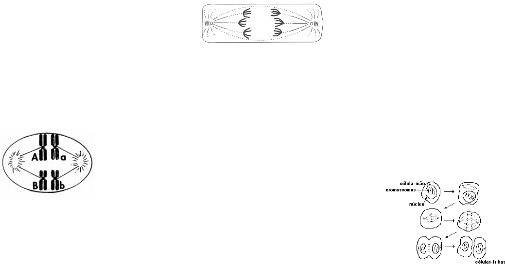 I ATIVIDADE ENEM – NÚCLEO CELULAR, MITOSE E MEIOSE PROFA. ELLEN LETÍCIA BIOLOGIA 1. (Fuvest) Analise os eventos mitóticos relacionados a seguir: I. Desaparecimento da membrana nuclear. II. Divisão dos centrômeros. III. Migração dos cromossomos para os pólos do fuso. IV. Posicionamento dos cromossomos na região mediana do fuso. Qual das alternativas indica corretamente sua ordem temporal? a) IV-I-II-III. b) I-IV-III-II. c) I-II-IV-III. d) I-IV-II-III. e) IV-I-III-II. 2. (UFSC) A meiose caracteriza-se pela ocorrência de apenas uma duplicação do material genético para cada duas divisões nucleares, e é responsável pela formação de células haplóides a partir de células diplóides. Em relação a esse tipo de divisão celular, é correto afirmar que: 01. O crossing over ocorre na prófase da meiose I e caracteriza-se pela permuta entre os segmentos das cromátides irmãs do mesmo cromossomo. 02. A redução, pela metade, do número cromossômico confere à meiose uma importância fundamental na manutenção do número constante de cromossomos da espécie. (V) 04. A meiose ocorre durante o processo de produção das células reprodutivas e possibilita o aumento da variabilidade genética dos seres vivos que a realizam. (V) 08. A primeira divisão meiótica é reducional, enquanto a segunda é equacional, já que a partir delas são formadas duas células diplóides e quatro células haplóides, respectivamente. (F) 16. Na anáfase I ocorre a separação dos pares de homólogos, havendo a migração polar dos cromossomos duplicados. (V) 32. As anáfases I e II são semelhantes entre si, à medida que os centrômeros se dividem e as cromátides de cada díade migram para o pólo da célula. (F) 64. Na metáfase I, os pares de cromossomos homólogos duplicados encontram-se na placa equatorial da célula. (V) 3. Assinale a alternativa que representa a associação correta entre o tipo de divisão celular e os processos que ocorrem durante a divisão. a) Mitose – produção de gametas com redução no número de cromossomos. b) Meiose – ocorrência de crossing-over ou permutação na Prófase I. c) Meiose – número de células-filhas ao fim do processo é o dobro do número de células-mãe. d) Meiose – produção de células 2n, após a Meiose I. e) Mitose – emparelhamento dos cromossomos homólogos na Prófase. 4. A figura abaixo esquematiza uma célula meiótica em metáfase I. A partir dessa célula, é possível prever-se a formação de gametas a) AB e ab, somente. b) Aa e Bb, somente. c) Ab e aB, somente. d) AB, Ab, aB e ab. e) AB e ab ou Aa e Bb. 5. Certos fármacos, como a colchicina, ligam-se às moléculas de tubulina e impedem que elas se associem para formar microtúbulos. Quando células em divisão são tratadas com essas substâncias, a mitose é interrompida na metáfase. Células contendo dois pares de cromossomos homólogos foram tratadas com colchicina, durante um ciclo celular. Após o tratamento, essas células ficaram com: a) quatro cromossomos. b) dois cromossomos. c) seis cromossomos. d) dez cromossomos. e) oito cromossomos. 6. Mitose e Meiose são tipos de divisões celulares, que apresentam as seguintes características diferenciais: a) a mitose ocorre exclusivamente nas células somáticas, nunca no plasma germinativo b) a meiose possibilita a recombinação genética, ingrediente constituinte da variabilidade genética c) mitose e meiose se alternam no processo de reprodução assexuada dos seres unicelulares d) mitose e meiose sempre ocorrem num mesmo organismo vivo. 7. A divisão celular é o processo pelo qual uma célula produz outras células e pode ocorrer por dois tipos nos seres eucariontes: mitose e meiose. Os seres humanos apresentam células somáticas, que constituem o corpo, e células sexuais, também chamadas de gametas, responsáveis pela reprodução. QUAL O TIPO DE DIVISÃO CELULAR QUE CÉLULAS SOMÁTICAS E GAMETAS SOFREM? a) células somáticas sofrem meiose e gametas sofrem mitose b) células somáticas sofrem mitose e gametas sofrem meiose c) células somáticas e gametas sofrem apenas mitose d) células somáticas e gametas sofrem apenas meiose. 8. Considere as afirmativas a seguir sobre a mitose e a meiose I e as classifique em verdadeira (V) ou falsa (F). I. Na prófase da mitose e da meiose I ocorre o emparelhamento dos cromossomos homólogos. II. Tétrades são estruturas formadas na região equatorial da célula na metáfase da mitose e da meiose I. III. Tanto na anáfase da mitose quanto da meiose I ocorre a separação do centrômero. IV. Em cada polo da célula na telófase da mitose e da meiose I estão n cromossomos duplicados. A SEQUÊNCIA CORRETA É: a) V, F, V, F b) V, V, F, F c) V, V, V, V d) F, F, F, F 9. (PUC-SP) Considerando uma célula com 6 cromossomos (2n = 6) e que esteja em divisão, O ESQUEMA ABAIXO REPRESENTA uma: a) anáfase I da meiose. b) metáfase I da meiose. c) metáfase II a meiose. d) anáfase mitótica. e) metáfase mitótica. 10. (IFCE/2014) O núcleo celular é o local que abriga o material genético nas células eucariontes. No núcleo interfásico, fase em que a célula não se encontra em divisão, a cromatina aparece imersa na cariolinfa, como um emaranhado de filamentos longos e finos. Ao iniciar o processo de divisão celular, esses filamentos começam a se condensar em espiral, tornando-se mais curtos e grossos, passando a ser chamados de: A) Cromonema B) Cromossomo C) Carioteca D) DNA E) Genes 11. (FUVEST) QUAL DAS ALTERNATIVAS SE REFERE A UM CROMOSSOMO? A) Um conjunto de moléculas de DNA com todas as informações genéticas da espécie. B) Uma única molécula de DNA com informação genética para algumas proteínas. C) Um segmento de molécula de DNA com informação para uma cadeia polipeptídica. D) Uma única molécula de RNA com informação para uma cadeia polipeptídica. E) Uma sequência de três bases nitrogenadas do RNA mensageiro correspondente a um aminoácid