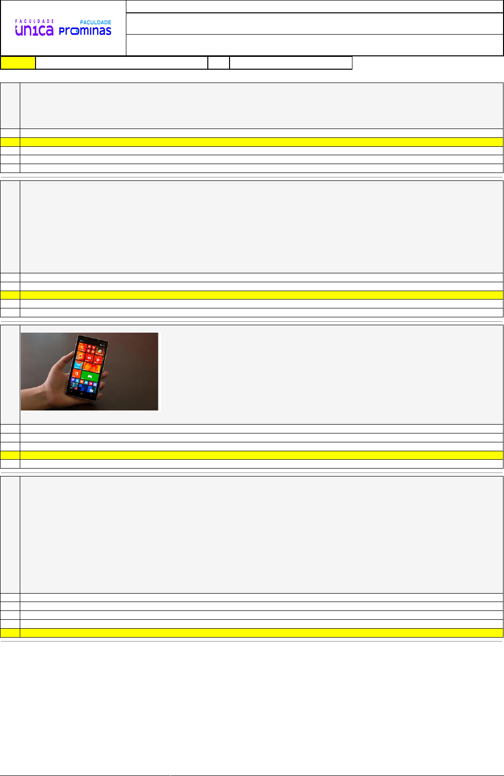07/04/2024 13:38:49 1/2 REVISÃO DE SIMULADO Nome: SUELY ROSA BARBOSA BRITO Disciplina: Informática Aplicada Respostas corretas são marcadas em amarelo X Respostas marcardas por você. Questão 001 (ENADE - 2017) Conceitualmente, cada processo tem sua própria CPU (Central Processing Unit) virtual. É claro que, na realidade, a CPU troca a execução, a todo momento, de um processo para outro, mas, para entender esse sistema, é muito mais fácil pensar em um conjunto de processos sendo executados (pseudo) paralelamente do que tentar controlar o modo como a CPU faz esses chaveamentos. Fonte: TANEBAUM, A. S. Sistemas operacionais modernos. 3 ed. São Paulo: Pearson, 2010 (adaptado). De acordo com o exposto, o conceito descrito denomina-se: A) Thread X B) Multiprogramação. C) Máquina de estados finitos. D) Processo monothread. E) Multiprocessador. Questão 002 (ENADE - 2021) Uma empresa deseja se reposicionar no mercado e, para isso, precisa ampliar sua capacidade de atendimento em serviços computacionais. Atualmente, os sistemas infraestruturais e de informação rodam sobre Sistemas Operacionais de diversas versões e distribuições, tanto na plataforma Windows, quanto na plataforma Linux. Uma consultoria especializada propôs a migração do parque de servidores físicos para servidores virtuais, adotando-se o tipo II, ou seja, os Monitores de Máquina Virtual serão executados como processos dos Sistemas Operacionais hospedeiros, mantendo-se, a princípio, os Sistemas Operacionais do parque original como visitantes e adotando-se um único Sistema Operacional como hospedeiro. Sobre o modelo proposto pela consultoria, avalie as afirmações a seguir. I.Os Sistemas Operacionais visitantes serão infectados se algum malware se instalar no Sistema Operacional hospedeiro. II.A empresa, após a virtualização, economiza recursos financeiros na aquisição de servidores e obterá mais eficiência no consumo de recursos. III.A empresa não poderá manter a mesma estrutura de Sistemas Operacionais físicos no sistema virtualizado do tipo II. IV.A recuperação do Sistema Operacional Virtual é mais simples e rápida, quando comparada ao sistema físico. É correto apenas o que se afirma em: A) I, II e IV. B) I e III. X C) II e IV. D) II e III. E) I, III e IV. Questão 003 Veja a imagem, a seguir e responda: Fonte: https://t.ctcdn.com.br/vbHdCHPxHqPEt7z_aSG6EZDYBIM=/512x288/smart/filters:format(webp)/i274398.jpeg, Acesso em: 20 maio 2022. Na tela deste dispositivo aparece o sistema operacional ______________. A) iOs (Apple B) Windows 10. C) Linux. X D) Windows Phone. E) Solaris. Questão 004 Leia o texto, a seguir: Muitos aparelhos simples possuem firmware, entre eles: controles-remotos, calculadora de mão, algumas partes do computador, como disco rígido, teclado, cartão de memória, unidades USBs, muitos instrumentos científicos e robôs. Outros aparelhos mais complexos como celulares, câmeras digitais, sintetizadores, entre outros, também possuem um firmware para a execução de suas tarefas. Não há fronteiras rígidas entre firmware e software, pois ambos são termos descritivos bastante livres. Contudo, o termo firmware foi originalmente inventado para contrastar com software de alto nível que poderia ser alterado sem a troca de um componente de hardware. Disponível em: https://www.embarcados.com.br/sistemas-operacionais-de-tempo-real-rtos/. Acesso em: 10 mar. 2022. Considerando as informações apresentadas, avalie as asserções abaixo e a relação proposta entre elas, sobre firmware: I.O firmware está normalmente envolvido com operações muito básicas de baixo nível das quais sem um dispositivo seria completamente não-funcional. PORQUE II.Firmware trata-se de um conjunto de instruções operacionais programadas diretamente no hardware de um equipamento eletrônico A respeito dessas asserções, assinale a opção correta. A) A asserção I é uma proposição falsa, e a II é uma proposição verdadeira. B) As asserções I e II são proposições verdadeiras, e a II é uma justificativa correta da I. C) As asserções I e II são proposições verdadeiras, mas a II não é uma justificativa correta da I. D) A asserção I é uma proposição verdadeira, e a II é uma proposição falsa. X E) As asserções I e II são proposições verdadeiras. 07/04/2024 13:38:49 2/2 Questão 005 Com base na imagem, responda: Fonte: https://www.researchgate.net/profile/Carolina-Moreira-18/publication/337223452/figure/fig1/AS:824763496800256@1573650349341/Figura-1-Pilares-do-Pensamento-Computacional-Adaptado-de-Shoop-et-al-2016.ppm. Acesso em: 20 maio 2022. Trata-se do desenvolvimento da lógica da linguagem de programação, através de: A) Tecnologia digital. X B) Pensamento computacional. C) Letramento digital. D) User experience ou UX. E) Cultura digital. Questão 006 Hora de testar seus conhecimentos em códigos para programa de computador, na prática de programador(a) ou desenvolvedor(a), vamos lá? Analise a imagem, a seguir: Fonte: https://docplayer.com.br/docs-images/64/52223158/images/52-2.jpg. Acesso em: 20 maio 2022. Com base no código apresentado na imagem, avalie e assinale, pois trata-se da linguagem de programação: A) JavaScript. B) PHP. X C) Python. D) R. E) Perl. Questão 007 Kernel, o nome vem do inglês, e significa “núcleo”. Em linhas gerais, o kernel é o “cérebro” do computador. Peça fundamental dos sistemas operacionais, ele é a ligação entre o processamento dos dados e os programas. Mesmo estando presente no Windows e no Mac OS, por exemplo, ele ficou mais conhecido com o desenvolvimento do Linux. Disponível em: http://glo.bo/3PRRQqK Acesso em: 10 mar. 2022. No sistema operacional o kernel trata-se do: X A) Gerenciamento Do Sistema De Entrada E Saída De Dados (I/O) B) Gerenciamento De Arquivos C) Gerenciamento De Armazenamento Secundário D) Gerenciamento De Processos E) Gerenciamento Da Memória Principal Questão 008 Uma aluna do curso