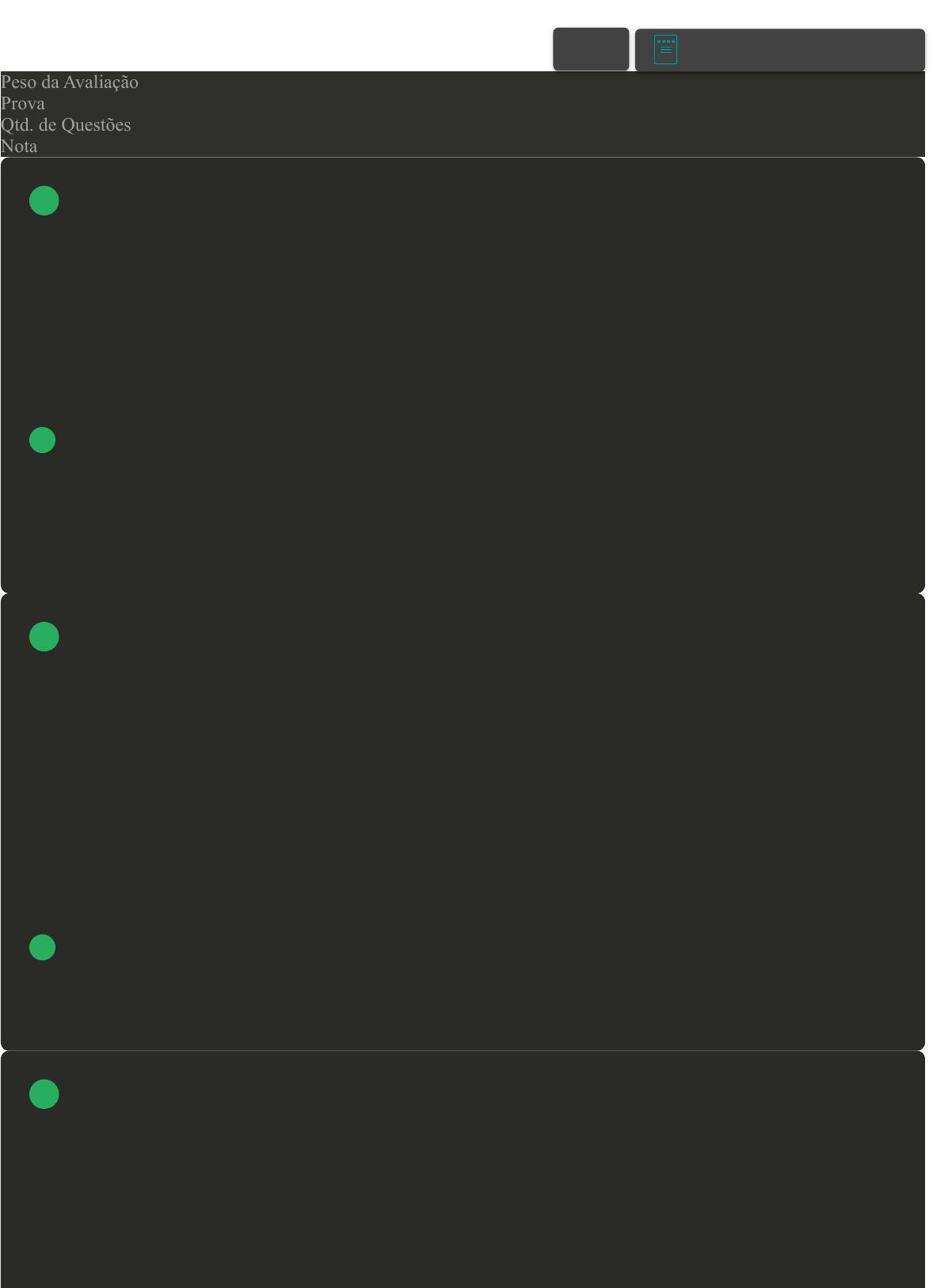 Prova Impressa GABARITO | Avaliação da Disciplina (Cod.:645522) Peso da Avaliação 10,00 Prova 85134436 Qtd. de Questões 20 Nota 8,00 Sobre as atitudes do professor em situações envolvendo jogos, assinale V para verdadeiro e F para falso nas afirmações que seguem: ( ) Explicar as regras e sua a complexidade. ( ) Garantir o cumprimento das regras e solicitar ao aluno que justifique suas decisões. ( ) Escolher entre jogos de sorte e de estratégia, apontando as suas principais diferenças. ( ) Apresentar o jogo aos alunos, como, por exemplo, os materiais, os temas e as metas. Assinale a alternativa que apresenta a sequência correta de respostas: A V – F – V – V. B V – V – V – V. C V – V – F – V. D V – V – V – F. A autora Eliane Debus, no livro intitulado ‘Festaria de brincança’, salienta alguns aspectos importantes relacionados à contação de histórias. Sobre tais aspectos, assinale V para verdadeiro e F para falso nas afirmações que seguem: ( ) O professor deve manter um tom de voz sem variações ao contar uma história. ( ) Os alunos devem permanecer enfileirados para melhor organizar o ambiente da contação de histórias. ( ) Recursos diversos podem ser utilizados, como, por exemplo, avental literário, fantoches, caixas e etc. ( ) Histórias com início, meio e fim, ajudam a criança a perceber-se e organizar-se. Assinale a alternativa que apresenta a sequência correta de respostas: A V – F – V – V. B V – V – V – V. C F – F – V – V. D F – V – V – V. A elaboração do plano de negócios visa criar uma oportunidade para o empreendedor analisar todas as facetas da nova empresa e refletir sobre elas. Sobre os elementos que compõe o plano de negócios, assinale V para verdadeiro e F para falso nas afirmações que seguem: ( ) A análise de mercado apresenta aspectos importantes sobre a clientela, a concorrência e os fornecedores. ( ) O planejamento financeiro visa diferenciar investimentos de despesas administrativas. ( ) O plano de marketing visa definir o preço do serviço prestado ou da produção de determinado produto. Assinale a alternativa que apresenta a sequência correta de respostas: VOLTAR A+ Alterar modo de visualização 1 2 3 A V – V – V. B V – F – V. C F – V – F. D F – V – V. Na educação infantil, a brincadeira e o jogo fazem parte do desenvolvimento da criança. Nesse sentido, assinale a alternativa que apresenta a resposta correta: A O brincar em excesso prejudicará o estudante no futuro. B Na educação infantil, o brincar é livre e não necessita de observação e/ou intervenção do professor. C Na brincadeira, a criança imita somente pessoas do seu círculo de convivência. D O jogo permite que a criança desenvolva processos psíquicos, vivenciando e percebendo seus próprios comportamentos. Sobre o trabalho com a ludicidade, o autor Cipriano Carlos Luckesi, em seus estudos sobre os efeitos do lúdico no sujeito que brinca, afirma que... LUCKESI, Cipriano Carlos. Ludicidade e atividades lúdicas: uma abordagem a partir da experiência interna, 2005. Disponível em:<www.luckesi.com.br>. Acesso em 20 jan. 2016. Assinale a alternativa que completa corretamente a frase: A É preciso ter um roteiro fechado para aplicar a ludicidade em sala de aula. B As brincadeiras individuais podem ser mais propícias ao lúdico que as coletivas. C Somente quando vivida com prazer e plenitude, pode-se dizer que uma experiência foi lúdica para o sujeito. D A escolha das brincadeiras deve ser orientada pelo professor, garantindo assim que haja ludicidade na prática e na forma sugerida. As brincadeiras sonoras estão presentes na infância e, comumente, constituem um material que causa encantamento nas crianças. Sobre as brincadeiras sonoras na infância, é correto afirmar que: A A musicalidade da poesia não é considerada uma brincadeira sonora. B Devem acontecer somente nas aulas de música. C Devem acontecer somente após o incentivo da literatura em sala de aula. D São as cantigas, os poemas e as rimas. 4 5 6 Sobre o brincar e o brinquedo, assinale V para verdadeiro e F para falso nas afirmações que seguem: ( ) O jogo protagonizado aparece nas brincadeiras após os sete anos de idade. ( ) A criança transforma em brinquedo qualquer objeto, dando novos usos e significados às coisas do cotidiano. ( ) As brincadeiras imaginativas (faz-de-conta) deram origem às brincadeiras de regras. Assinale a alternativa que apresenta a sequência correta de respostas: A F – V – F. B V – V – V. C F – V – V. D V – F – V. Sobre as atividades que podem ser desenvolvidas em uma brinquedoteca, assinale V para verdadeiro e F para falso nos itens que seguem: ( ) Jogos de diferentes níveis.( ) Brincadeiras individuais e coletivas.( ) Dramatizações. ( ) Oficinas e rodas de leituras. Assinale a alternativa que apresenta a sequência correta de respostas: A V – V – F – V. B V – V – V – F. C V – V – V – V. D V – F – V – V. O plano de marketing é uma etapa importante dentro do plano de negócios, principalmente pela definição do preço do produto/serviço. Assim, o preço do produto/serviço é definido com base... Assinale a alternativa que completa corretamente a frase: A No valor da cotação da moeda estrangeira. B No valor sentimental. C No valor praticado pelo mercado internacional. D No custo de produção somado com a margem de lucro. O desenho é uma das manifestações semióticas, isto é, uma das formas através das quais a função de atribuição da significação se expressa e se constrói. PIAGET, J; INHELDER, B. A psicologia da criança. São Paulo: Difusão Europeia do Livro, 1973 (adaptado). Sobre o desenho na infância, assinale V para verdadeiro e F para falso nas afirmações que seguem: ( ) A prática do desenho deve ser iniciada com a proposta do exercício de cópia. ( ) Aos dois anos de idade a criança demonstra interesse em uma superfície 