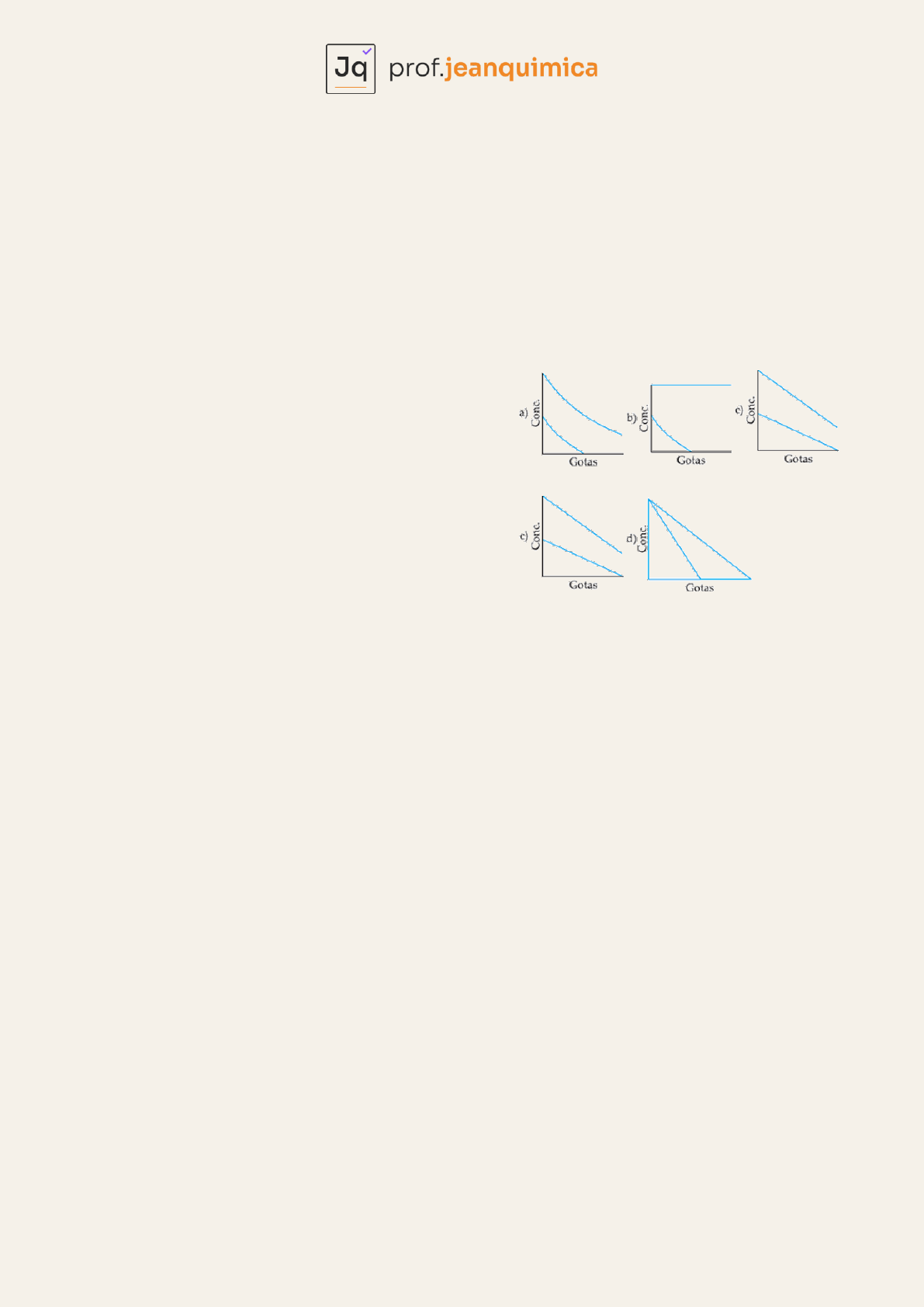 1 Mistura de soluções com reações químicas 1. (Fuvest-SP) 100 mL de uma solução 0,2 M de HCl foram misturados a 100 mL de uma solução 0,2 M de NaOH. A mistura resultante: a) tem concentração de Na+ igual a 0,2M. b) é uma solução de cloreto de sódio 0,1M. c) tem concentração de H+ igual a 0,1M. d) não conduz corrente elétrica. e) tem concentração de OH- igual a 0,1 mol/L. 2. (FAAP-SP) Misturam-se 40 mL de uma solução aquosa 0,50 mol/L de H2SO4 com 60 mL de solução aquosa 0,40 mol/L de NaOH. Calcular a concentração molar da solução final em relação: I. ao ácido II. à base III. ao sal formado 3. (Unifesp-SP) BaSO4, administrado a pacientes para servir como material de contraste em radiografias do estômago, foi obtido fazendo-se a reação de solução de ácido sulfúrico com um dos seguintes reagentes: I. 0,2 mol de BaO II. 0,4 mol de BaCO3 III. 200 mL de solução de BaCl2 3M Supondo que em todos os casos foram utilizados 100 mL de H2SO4 4M, e que a reação ocorreu totalmente, qual das relações entre as massas obtidas de BaSO4 é válida? a) m I < m II < m III. b) m I = m II < m III. c) m I < m II = m III. d) m I = m II = m III. e) m I > m II > m III. 4. (Fuvest-SP) A 100 mL de solução aquosa de nitrato de bário, adicionaram-se, gota a gota, 200 mL de solução aquosa de ácido sulfúrico. As soluções de nitrato de bário e de ácido sulfúrico têm, inicialmente, a mesma concentração, em mol/L. Entre os gráficos abaixo, um deles mostra corretamente o que acontece com as concentrações dos íons Ba2+ e NO3- durante o experimento. Esse gráfico é: 5. (UEL-PR) Inadvertidamente, uma pessoa deixou cair 2 pastilhas de NaOH(S) em um béquer que continha 100mL de HCl 6 · 10-2 mol/L. Que quantidade de HCl, em mol, restou na solução remanescente? Dado: massa de 1 pastilha de NaOH = 0,02 g a) 1 · 10-3 mol b) 2 · 10-3 mol c) 3 · 10-3 mol d) 4 · 10-3 mol e) 5 · 10-3 mol 6. O volume de uma solução de NaOH, 0,150 M, necessário para neutralizar 25,0 mL de solução HCl 0,300 M é: a) 25,0 mL b) 22,5 mL c) 12,5 mL d) 75,0 mL e) 50,0 mL 2 7. Calcule a concentração em mols.L-1 de uma solução de hidróxido de sódio, sabendo que 25,00 mL dessa solução foram totalmente neutralizados por 22,50 mL de uma solução 0,2 M de ácido clorídrico. 8. (USF-SP) 25,0 mL de solução 0,2 M de HNO3 foram misturados com 25,0 mL de solução 0,4 M de NaOH. Na solução final, a concentração molar da base restante é igual a: a) 0,4 b) 0,2 c) 0,1 d) 0,050 e) 0,025 9. (FCC) A 1 L de solução 0,10 mol/L de NaOH adiciona-se 1 L de solução 0,10 mol/L de HCl. Se a solução resultante for levada à secura até se obter uma massa sólida, essa deverá pesar: a) 2,3 g b) 3,5 g c) 5,8 g d) 35 g e) 58 g 10. (Fafeod-MG) Misturamos 100 mL de H2SO4 0,40 M com 200 mL de H2SO4 0,15 M e ainda 200 mL de NaOH 0,1M. Qual a concentração molar da solução resultante dessa mistura? 1 H2SO4 + 2 NaOH → Na2SO4 + 2 H2O a) 4,0·10-2 em relação ao Na2SO4 b) 4,0·10-2 em relação ao NaOH c) 1,2·10-1 em relação ao NaOH d) 1,2·10-1 em relação ao H2SO4 e) 1,2·10-1 em relação ao ácido 11. (ITA-SP) O volume de HCl gasoso, medida na pressão de 624 mmHg e temperatura igual a 27 °C, necessário para neutralizar completamente 500 cm3 de uma solução aquosa 0,200 molar de NaOH é: Dado: R = 62,4 mmHg·L·mol-1· K-1 a) 0,27 L b) 1,5 L c) 3,0 L d) 6,0 L e) 27 L 12. Misturamos 300 mL de uma solução aquosa de H3PO4 0,5 mol/L com 150 mL de solução aquosa de KOH 3,0 mol/L. Qual a molaridade da solução final em relação ao sal formado? a) 0,33 mol/L. b) 1,33 mol/L. c) 0,66 mol/L. d) zero. e) 3,5 mol/L. 13. Num balão volumétrico são colocados 200 mL de ácido sulfúrico 0,50 mol/L e 400 mL de hidróxido de sódio 1,0 mol/L. O volume é completado a 1000 mL e homogeneizado. A solução resultante será: a) 0,17 mol/L em H2SO4 e 0,67 mol/L em NaOH. b) 0,20 mol/L em Na2SO4. c) 0,10 ml/L em Na2SO4 e 0,20 mol/L em NaOH. d) 0,10 mol/L em Na2SO4 e 0,30 mol/L em NaOH. e) 0,10 mol/L em H2SO4 e 0,20 mol/L em Na2SO4. 14. (ITA) Determine o menor volume de solução de ácido clorídrico 0,250 molar necessário para dissolver completamente 13,5g de alumínio metálico granulado. ( Al=27 ) 3 15. 0,3 litro de HCl 0,4 mol/L reagem com 0,2 litro de NaOH 0,8 mol/L . A molaridade do sal resultante é: a) 0,48 mol/L. b) 0,24 mol/L. c) 0,12 mol/L. d) 0,32 mol/L. e) 0,56 mol/L. 16. (Ufop-MG) O bicarbonato de sódio frequentemente é usado como antiácido estomacal. Considerando que o suco gástrico contenha cerca de 250,0 mL de solução de HC? 0,1 mol/L, conclui-se que a massa, em gramas, de NaHCO3 necessária para neutralizar o ácido clorídrico existente no suco gástrico é: a) 1,2 b) 1,4 c) 1,8 d) 2,1 e) 2,6 17. (UFES-ES) A partir da reação balanceada: 2 KMnO4 + 10 FeSO4 + 8 H2SO4 → 5 Fe2(SO4)3 + 1 K2SO4 + 2 MnSO4 + 8 H2O podemos concluir que 1 litro de uma solução de permanganato de potássio, KMnO4, contendo 158 g de soluto por litro, reage com um volume de uma solução de sulfato ferroso, FeSO4, contendo 152 g do soluto por litro, exatamente igual a: a) 1 litro. b) 3 litros. c) 5 litros. d) 7 litros. e) 10 litros. 18. (ITA-SP) Fazendo-se borbulhar gás cloro através de 1,0 litro de uma solução de hidróxido de sódio, verificou-se ao final do experimento que todo hidróxido de sódio foi consumido e que na solução resultante foram formados 2,5 mol de cloreto de sódio. Considerando que o volume da solução não foi alterado durante todo o processo e que na temperatura em questão tenha ocorrido apenas a reação correspondente à equação química, não balanceada, esquematizada a seguir, qual deve ser a concentração inicial de hidróxido de sódio? OH1- (aq) + Cl2(g) → Cl1- (aq) + ClO3 1- (aq) + H2O(l) a) 6,0 mol/L b) 5,0 mol/L c) 3,0 mol/L d) 2,5 mol/L e) 2,0 mol/L 19. (MACKENZIE-SP) Para neutralizar totalmente 2,0L de solução aquosa de ácido sulfúrico conti