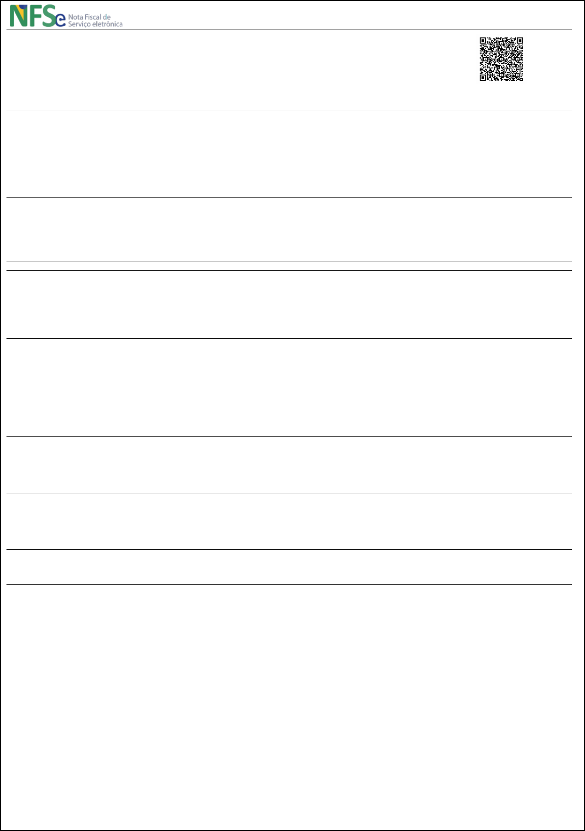 DANFSe v1.0 Documento Auxiliar da NFS-e Chave de Acesso da NFS-e 52087072252279204000107000000000000724044197980135 A autenticidade desta NFS-e pode ser verificada pela leitura deste código QR ou pela consulta da chave de acesso no portal nacional da NFS-e Número da NFS-e 7 Competência da NFS-e 08/04/2024 Data e Hora da emissão da NFS-e 08/04/2024 14:22:09 Número da DPS 7 Série da DPS 900 Data e Hora da emissão da DPS 08/04/2024 14:22:09 EMITENTE DA NFS-e Prestador do Serviço CNPJ / CPF / NIF 52.279.204/0001-07 Inscrição Municipal - Telefone (62) 3100-1994 Nome / Nome Empresarial 52.279.204 JOEL SILVA MARIANO E-mail ORIGOJ.MARIANO@GMAIL.COM Endereço C161, S/N Município Goiânia - GO CEP 74255-120 Simples Nacional na Data de Competência Optante - Microempreendedor Individual (MEI) Regime de Apuração Tributária pelo SN - TOMADOR DO SERVIÇO CNPJ / CPF / NIF 15.467.513/0001-84 Inscrição Municipal - Telefone - Nome / Nome Empresarial ALLIANCE CONSULTORIA E NEGOCIOS CO. LTDA E-mail - Endereço C4, 931 Município Goiânia - GO CEP 74265-040 INTERMEDIÁRIO DO SERVIÇO NÃO IDENTIFICADO NA NFS-e SERVIÇO PRESTADO Código de Tributação Nacional 17.02.01 - Datilografia, digitação, estenografia e congêneres. Código de Tributação Municipal - Local da Prestação Goiânia - GO País da Prestação - Descrição do Serviço Assessoria mês 04/2024 TRIBUTAÇÃO MUNICIPAL Tributação do ISSQN Operação Tributável País Resultado da Prestação do Serviço - Município de Incidência do ISSQN Goiânia - GO Regime Especial de Tributação Nenhum Tipo de Imunidade - Suspensão da Exigibilidade do ISSQN Não Número Processo Suspensão - Benefício Municipal - Valor do Serviço R$ 3.800,00 Desconto Incondicionado - Total Deduções/Reduções - Cálculo do BM - BC ISSQN - Alíquota Aplicada - Retenção do ISSQN Não Retido ISSQN Apurado - TRIBUTAÇÃO FEDERAL IRRF - CP - CSLL - PIS - COFINS - Retenção do PIS/COFINS - TOTAL TRIBUTAÇÃO FEDERAL - VALOR TOTAL DA NFS-E Valor do Serviço R$ 3.800,00 Desconto Condicionado R$ Desconto Incondicionado R$ ISSQN Retido - IRRF, CP,CSLL - Retidos R$ 0,00 PIS/COFINS Retidos - Valor Líquido da NFS-e R$ 3.800,00 TOTAIS APROXIMADOS DOS TRIBUTOS Federais - Estaduais - Municipais - INFORMAÇÕES COMPLEMENTARES