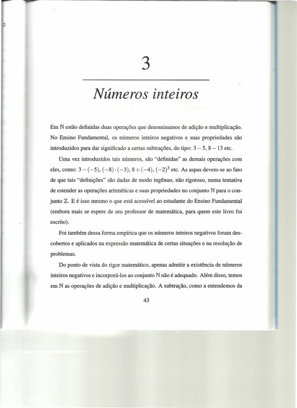 inteiros negativos e incorporá-los ao conjunto N não é adequado. Além disso, temos