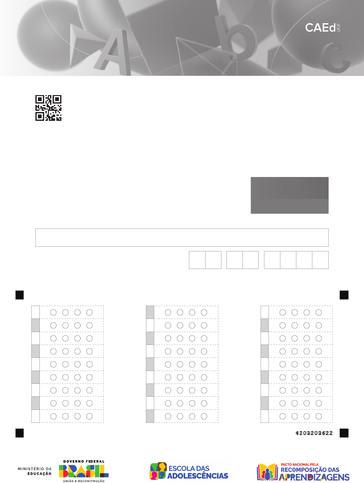CA D E R N O Data de Nascimento do(a) estudante Nome do(a) estudante N 0 70 3 AVALIAÇÃO CONTÍNUA DA APRENDIZAGEM NOS ANOS FINAIS CICLO I 2024 1890N0703 7º ano do Ensino Fundamental CIÊNCIAS DA NATUREZA 01 DCBA 02 DCBA 03 DCBA 04 DCBA 05 DCBA 06 DCBA 07 DCBA 08 DCBA 09 DCBA 10 DCBA 11 DCBA 12 DCBA 13 DCBA 14 DCBA 15 DCBA 16 DCBA 17 DCBA 18 DCBA 19 DCBA 20 DCBA 21 DCBA 22 DCBA 23 DCBA 24 DCBA 25 DCBA 26 DCBA 27 DCBA BL03N07 Leia as informações do quadro abaixo para responder às duas questões a seguir. A campanha “Julho Amarelo” foi instituída no Brasil, em 2019, com o objetivo de conscientizar a população sobre as hepatites virais e reforçar medidas como a disponibilização de vacinas pelo Sistema Único de Saúde (SUS). Dentre essas hepatites, a que apresenta maior ocorrência no país é a hepatite A, que é transmitida por água ou alimentos contaminados. Essa doença geralmente não apresenta sintomas, mas pode causar cansaço, tontura, enjoo, vômitos, febre, dor abdominal, pele e olhos amarelados. Assim como outras doenças transmitidas pela água contaminada, a hepatite A pode ser prevenida por meio de serviços de saneamento básico, como o tratamento da água e do esgoto. (N00069613_CEN) 01) (N00069613) Os tratamentos mencionados nesse texto previnem doenças, pois A) aumentam a disponibilidade de água para produzir alimentos. B) eliminam os microrganismos presentes na água. C) permitem a reutilização de água para a limpeza nas casas. D) reduzem o desperdício de água nas cidades. 02) (N00069614) O produto disponibilizado por essa campanha é necessário para A) curar sintomas de doenças. B) eliminar os vetores de doenças. C) evitar casos de doenças contagiosas. D) tratar os quadros de doenças nutricionais. Leia e observe as informações do quadro abaixo para responder às três questões a seguir. A poluição do ar é caracterizada como o conjunto de substâncias capazes de alterar as propriedades da atmosfera. O ar que respiramos, composto principalmente de nitrogênio (N2), oxigênio (O2), dióxido de carbono (CO2) e vapor de água (H2O), é constantemente alterado pela queima de combustíveis fósseis, pelos resíduos da produção industrial e pelas queimadas, podendo causar problemas ambientais, como a destruição da camada de ozônio, e problemas de saúde nos seres humanos. A imagem abaixo mostra as representações de alguns constituintes do ar antes e depois de serem atingidos pelos poluentes. (N00070793_CEN) 03) (N00070793) Com base nessas representações, o ar é classificado como A) uma substância simples. B) uma mistura de gases. C) um elemento químico. D) um conjunto de sólidos. N0703 1 BL03N07 04) (N00070794) A partir dessas representações, a propriedade do ar que está sendo alterada pela poluição é a A) composição. B) pressão atmosférica. C) resistência do ar. D) temperatura. 05) (N00069605) Qual é a função da camada citada nesse texto? A) Conservar a rotação da Terra. B) Garantir a ocorrência de precipitações. C) Possibilitar as estações do ano. D) Realizar a filtragem dos raios solares. Leia as informações do quadro abaixo para responder às duas questões a seguir. Nas últimas décadas, ocorreu um aumento na proporção dos dias quentes em comparação com o começo do século XX. Na atualidade, é perceptível que os dias quentes estão ainda mais quentes do que já foram anteriormente. Isso aconteceu por diversos fatores, dentre eles o agravamento do fenômeno denominado efeito estufa. (N00069647_CEN) 06) (N00069647) A percepção mencionada recebe o nome de A) calor. B) capacidade térmica. C) sensação térmica. D) temperatura. 07) (N00069602) Esse fenômeno é responsável por A) favorecer a circulação de massas de ar polar nos dois hemisférios. B) fornecer gás oxigênio para todos os ecossistemas do planeta. C) impedir que ondas eletromagnéticas atinjam a superfície terrestre. D) manter a temperatura média do planeta compatível com a vida. N0703 2 BL04N07 Leia e observe as informações do quadro abaixo para responder às três questões a seguir. As usinas geotérmicas são uma alternativa à utilização de combustíveis fósseis para a produção de energia elétrica, pois elas são um tipo de instalação que utiliza a energia térmica vinda do interior do planeta Terra para gerar eletricidade. No mecanismo de funcionamento desse tipo de usina, algumas etapas envolvem a obtenção e o uso dessa energia térmica. Observe, na imagem abaixo, essas etapas enumeradas. Disponível em: https://meulink.fit/S0968. Acesso em: 21 maio 2024. Adaptado para fins didáticos. (N00069642_CEN) 08) (N00069642) Nessa usina, a transferência de energia ocorre por meio A) da massa. B) da temperatura. C) do calor. D) do trabalho. 09) (N00069643) O processo indicado pelas setas recebe o nome de A) condensação. B) convecção. C) irradiação. D) sublimação. 10) (N00069641) As pás nessa usina funcionam a partir do princípio de funcionamento de uma máquina A) elétrica. B) hidráulica. C) indutiva. D) simples. N0703 3 BL04N07 N0703 4 Leia as informações do quadro abaixo para responder às duas questões a seguir. Segundo os dados de uma agência de turismo, um dos estados da Região Norte do Brasil recebeu quase 56 mil turistas nos primeiros quatro meses de 2023. Esses números se devem a diversos atrativos, como os eventos culturais, a gastronomia e o turismo ecológico, uma vez que o estado abriga uma das mais importantes florestas tropicais. Essa floresta faz parte de um dos biomas mais ricos do mundo, que se caracteriza pela sua enorme biodiversidade. A sua flora é composta, predominantemente, por árvores bastante altas e robustas, como o mogno e a seringueira. Já a sua fauna, destaca-se por apresentar a maior concentração de diferentes espécies de peixes, além de uma variedade de mamíferos, aves, répteis e insetos, todos acostumados a um clima em que as estações do ano não são muito 