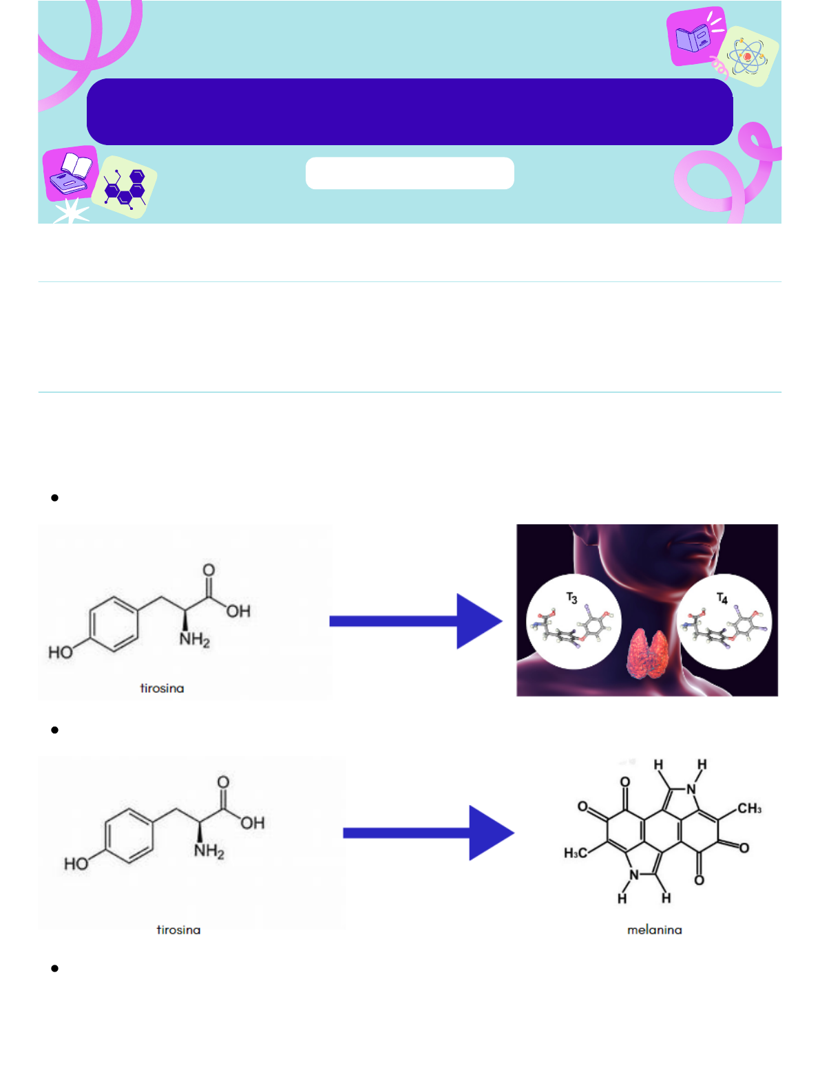 Aminoácidos são as subunidades monoméricas que compõem as proteínas. As proteínas são os instrumentos moleculares pelos quais a informação genética é expressa, em todos os organismos elas são constituídos do mesmo conjunto de 20 aminoácidos, esse grupo de moléculas podem ser consideradas o alfabeto no qual a estrutura proteica é lida. Funções dos Aminoácidos Servem como precursores de: Química dos Aminoácidos BIOQUIMICA Giovanna Ângela UFPE Hormônios (ex: tirosina percursora de hormônios da tireóide T3 e T4) Pigmentos (tirosina percursora da melanina). Mediadores inflamatórios (a histidina é precursor da histamina) Também podem ser mediadores de reações metabólicas, tampões energéticos e a creatina é utilizada para o armazenamento do grupo fosfato. Estrutura dos Aminoácidos Para todos os aminoácidos comuns, exceto a glicina, o carbono alfa está ligado a quatro grupos diferentes: um grupo carboxila(-COOH), um grupo amino(-NH3), um grupo R e um átomo de hidrogênio (na glicina o grupo R é outro hidrogênio). Compostos nitrogenados, como as purinas. Neurotransmissores (também podem atuar como um). Alfa aminoácidos são aqueles onde o grupo amino e o grupo carboxila estão ligados ao mesmo átomo de carbono (carbono alfa, primeiro contando a partir do grupo carboxila). são moléculas assimétricas. Beta aminoácidos são aqueles onde o grupo amino está ligado ao carbono beta, o segundo carbono contando a partir do grupo carboxila. Ômega aminoácidos são aqueles onde o grupo amino está ligado ao carbono omega, o ultido da cadeia, oposto a carboxila. Como o carbono alfa está ligado a quatro grupos diferentes ele é chamado de centro quiral. O arranjo tetraédrico do átomo permite dois arranjos espaciais únicos, ou seja dois esteroisômeros da classe denominada enantiômero. Elas são imagens especulares não sobreponíveis uma da outra (ou seja, imagens espelhadas). Os L-aminoácidos são aqueles com o grupo amino no lado esquerdo e os D-aminoácidos tem o grupo amino no lado direito Os aminoácidos das proteínas são exclusivamente L-aminoácidos, pois as células são capazes de sintetizar especificamente os isômeros L de aminoácidos, tornando-se estereoespecíficas as reações por elas catalisadas. Os D-aminoácidos são encontrados em peptídeos das paredes bacterianas e peptídeos antibióticos. Devido ao centro quiral as moléculas também são opticamente ativas, giram o plano da luz polarizada. Podem ser classificadas como levorrotatórias, rotaciona para a esquerda, e, dextrorrotatórias, rotaciona para a direita. Não confundir com L e D aminoácidos. Nem todos os L-aminoácidos são levorrotatórios e vice-versa. Classificação dos Aminoácidos Os aminoácidos são agrupados em cinco grupos principais com base nas propriedades dos seus grupos R, particularmente sua polaridade ou tendencia de interagir com a água em pH biológico (pH 7,0). Grupos R apolares, alifáticos são apolares e hidrofóbicos. Como o nome alifático já diz, não possui anéis de átomos de carbono. São eles: Glicina, alanina, prolina, valina, leucina, isoleucina, metionina. As cadeias de alanina, valina, leucina e isoleucina se agrupam no interior das proteínas, estabilizando-as por interações hidrofóbicas. A cadeia da glicina não contribui realmente para interações hidrofóbicas mas ela é facilmente agrupada com aminoácidos apolares. A metionina contem enxofre e tem um grupo tioéter ligeiramente apolar na cadeia lateral. A prolina tem uma cadeia lateral alifática com estrutura cíclica, e seu grupo amino secundário reduz a flexibilidade estrutural de regiões polipeptídicas que a contém. Grupos R aromáticos são aqueles com cadeias laterais aromáticas, relativamente apolares(hidrofóbicos). São eles: fenilalanina, tirosina e triptofano. Todos podem participar de interações hidrofóbicas. O grupo hidroxila da tirosina pode formar ligações de hidrogênio. A tirosina e o triptofano são mais polares que a fenilalanina. Eles absorvem luz ultravioleta, a fenilalanina em menor extensão. Grupos R polares, não carregados são mais solúveis em água, ou mais hidrofílicos do que os aminoácidos apolares, eles contêm grupos funcionais que formam ligações de hidrogênio com a água. São eles: a serina, treonina, cisteína, asparagina e glutamina. A cisteína é um caso isolado porque sua polaridade é devido ao seu grupo sulfidrila, fazendo ligações dissulfeto que desempenham um papel especial nas estruturas de muitas proteínas pela formação de ligações covalentes entre partes de uma molécula polipeptídica ou entre duas cadeias polipeptídicas diferentes. Grupos R carregados positivamente (básicos) são aqueles mais hidrofílicos junto com aqueles carregados negativamente, apresentam carga positiva em pH 7,0. São eles: lisina, arginina e histidina. Grupos R carregados negativamente (ácidos) apresentam carga negativa em pH 7,0. São eles: aspartato e glutamato. Quanto ao destino metabólico os aminoácidos podem ser classificados em: glicogênicos, que produzem percursores da glicose, como o piruvato, durante o catabolismo. Podem ser cetônicos, que produzem percursores de corpos cêtonicos como acetil-CoA ou acetoacetato. Ou podem ser ambos. Quanto a importância nutricional podem ser essenciais(histidina, isoleucina, leucina, lisina, metionina, fenilalanina, treonina, triptofano, valina), que devem ser obtidos pela dieta pois não podem ser sintetizados pelo organismo, e os não essenciais (alanina, asparagina, aspartato, glutamato, serina), que o corpo humano consegue sintetizar através de outros compostos. Há também os semiessenciais (arginina, cisteína, glutamina, glicina, prolina, tirosina), que são sintetizados pelo corpo porém as vezes a quantidade produzida não é suficiente para certas situações. Aminoácidos como Ácidos e Bases Os grupos amino e carboxila de aminoácidos, em conjunto com os grupos ionizá