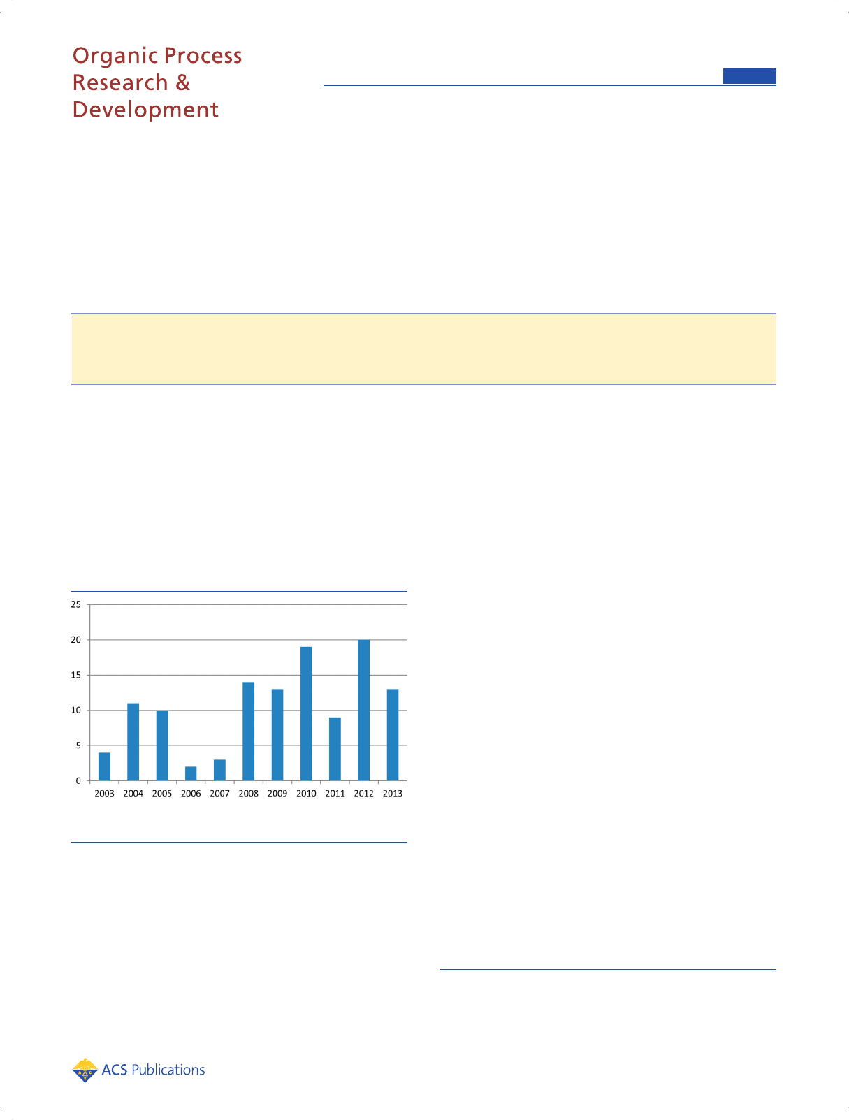 Design of Experiments (DoE) and Process Optimization. A Review of Recent Publications Steven A. Weissman*,† and Neal G. Anderson*,‡ †J-Star Research, 3001 Hadley Road, Unit 1, South Plainfield, New Jersey 07080, United States ‡Anderson’s Process Solutions, 7400 Griffin Lane, Jacksonville, Oregon 97530, United States *S Supporting Information ABSTRACT: Statistical design of experiments (DoE) is a powerful tool for optimizing processes, and it has been used in many stages of API development. This review summarizes selected publications from Organic Process Research & Development using DoE to show how processes can be optimized efficiently and how DoE findings may be applied to scale-up. ■ INTRODUCTION Statistical design of experiments (DoE) is a powerful approach to optimizing chemical processes.1 In 2002 the editor of this journal expressed the opinion that DoE deserved to be taught in academia and should be used more often in industry.2 Over the past 11 years the application of DoE to pharmaceutical process development3 has greatly increased,4 as measured by the volume of DoE-related publications in OPRD (Figure 1). For the period 2003−2007, the average was 6.0 publications/year, but that figure jumped to 14.7 publications/year for the period 2008− 2013, a 145% increase. Some of the reasons for this upward trend in DoE implementation are as follows: 1. Changing R&D Environment: The pressure of compressed API development timelines is always increasing.5 This, combined with recent reductions in the pharmaceutical work force, means process scientists are being asked to do more with fewer resources. Also, several new FDA designations are aimed at providing expedited reviews of drugs serving unmet medical needs.6 Accordingly, efficiency becomes paramount and DoE is a tool to resolve optimization issues in a timely manner. 2. Technological Advances: The once daunting prospect of setting up the multiple reactions required by a DoE has diminished with advances in parallel reactors and analytical assays/instrumentation. Setting up 19 reactions is no longer considered to be the barrier it was even 15 years ago. High- throughput screening (HTS) tools and flow chemistry setups have been widely adopted. 3. Changing Drug Substance Regulatory Environment: The unmistakable trend away from the traditional quality by testing and toward quality by design (QbD) has led to increased awareness of the concept of design space.7 DoE, as part of process validation, plays a central role defining the acceptable ranges for the critical process parameters. The FDA now expects DoE to be part of the NDA submissions.8 4. Increased Implementation of Green Chemistry Principles: Several of the well-known 12 Green Chemistry Principles advocate for using lesser amounts of solvents and reagents and for increased process efficiency as a means toward generating less chemical waste. Accordingly, manufacturers are increasingly implementing programs9 and applying metrics10 to assess the green chemistry performance of their processes. DoE’s ability to enable scientists to hone in on the optimal reaction conditions has helped it gain wider acceptance. Clearly the perceived barriers11 to implementing DoE in the process chemistry setting are being overcome, leading to wider adoption of this powerful tool. The traditional optimization approach, varying one factor/ variable at a time (OFAT, also called OVAT),12 suffers from many drawbacks. First, it rarely uncovers the optimal conditions, in large part due to the fact that the outcomes are highly dependent on the starting point. Second, the OFAT approach is unable to separate the “noise” (the inherent run-to-run variation of a system) of a reaction from actual improvement unless a significant number of reactions are repeated using the same conditions. The systematic approach inherent in DoE eliminates researcher bias and often will lead to reaction conditions that one had not considered previously. But the most significant Special Issue: Application of Design of Experiments to Process Development Received: May 28, 2014 Published: June 27, 2014 Figure 1. Number of DoE-related publications in OPRD annually from 2003−2013. Review pubs.acs.org/OPRD © 2014 American Chemical Society 1605 dx.doi.org/10.1021/op500169m | Org. Process Res. Dev. 2015, 19, 1605−1633 D ow nl oa de d vi a U N IV O F SA O P A U L O o n A ug us t 2 , 2 02 4 at 1 3: 48 :1 6 (U T C ). Se e ht tp s: //p ub s. ac s. or g/ sh ar in gg ui de lin es f or o pt io ns o n ho w to le gi tim at el y sh ar e pu bl is he d ar tic le s. pubs.acs.org/OPRD advantage to using DoE is the ability to quickly detect how interactions between factors can affect product yield and quality. Also, by simultaneously varying parameters, the DoE approach can be more efficient than that achieved by the traditional approach of varying one factor/variable at a time. For instance, if theOFAT approach was used to investigate the influence of three factors on a reaction (temperature, concentration, and reagent stoichiometry), eight experiments would be required; but more information could be generated through four experiments in a half-factorial DoE. Running a DoE may seem daunting initially, since the number of experiments to be run is defined at the beginning, unlike the traditional approach. But even if the effort to perform the multiple reactions and assays engendered by a DoE is time-consuming, the quality and thoroughness of the information obtained outweigh the effort. Generally there are three times in the life of a process when DoE may be used: early in process development when the best conditions are not obvious; when exploring robustness to assist in defining a design space in support of a QbD filing with regulatory agencies; and when optimizing conditions for established procedures. In the latter case there can be considerable financial impact by minimizing the charges of reagents and solvents and by optimizing condi