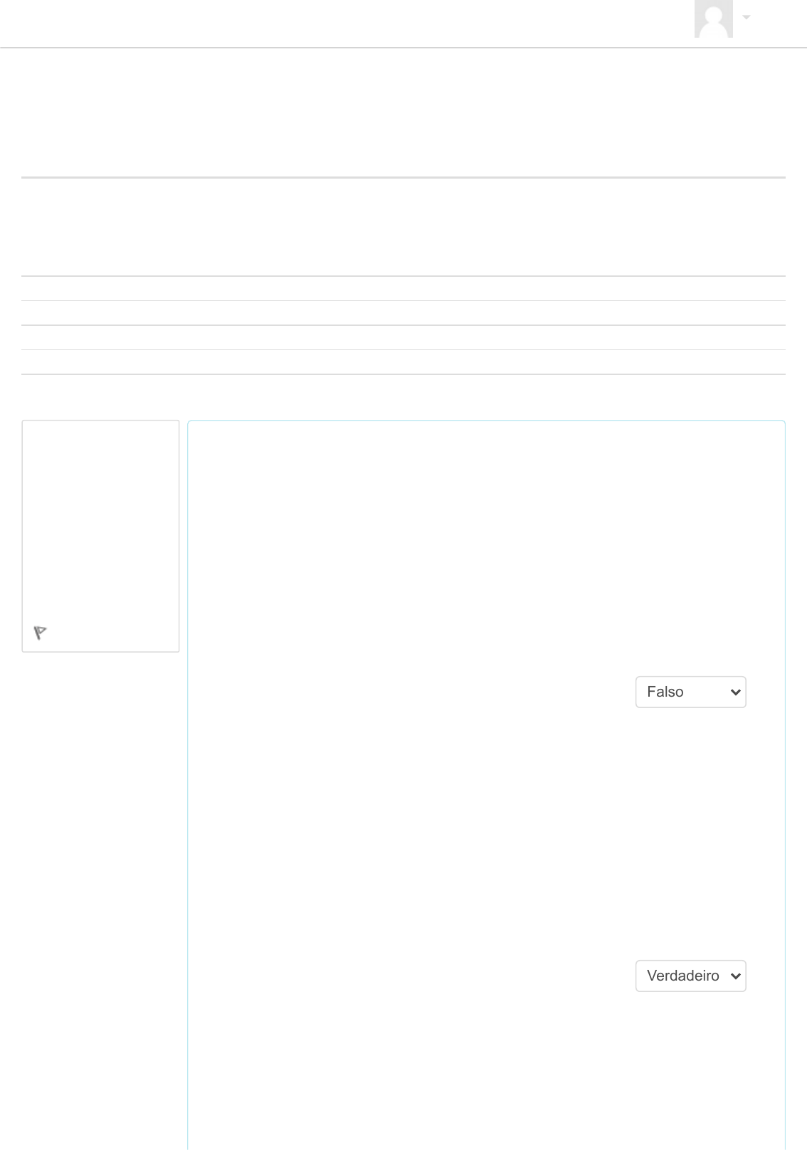 ANA PAULA EVANGELISTA MACIEL Página inicial ► Meus cursos ► Núcleo de Especialização ► Especialização em Primeira Infância: Direitos, Proteção e Enfrentamento das Violências ► Oferta 2024 ► PIF4M7PI012024 ► Unidade I - O Nexo Pesquisa e Intervenção ► Questionário - Unidade I Questão 1 Completo Atingiu 3,60 de 6,00 Marcar questão PI Fase 4 - Módulo 7 - Pesquisa e Intervenção 01/2024 Iniciado em domingo, 11 Ago 2024, 20:31 Estado Finalizada Concluída em domingo, 11 Ago 2024, 20:57 Tempo empregado 25 minutos 48 segundos Avaliar 20,40 de um máximo de 30,00(68%) Marque verdadeiro ou falso segundo o texto “Para que serve a pesquisa em educação” a) O segundo campo de produção de pesquisa em educação, de acordo com o texto da leitura obrigatória, apresenta um perfil mais pragmático, trazendo resultados mais objetivos e de curto prazo, enquanto o campo acadêmico segue uma trajetória associada a visões teóricas e ideológicas homogêneas, com pesquisa de cunho mais quantitativo. b) Entre as críticas encontradas pela pesquisa realizada no Reino Unido sobre a produção das pesquisas em educação, se destacam o pouco rigor, a irrelevância para a realidade das escolas e a baixa disseminação dos resultados encontrados. Falso Verdadeiro https://ens.mdh.gov.br/moodle https://ens.mdh.gov.br/moodle/ https://ens.mdh.gov.br/moodle/my/ https://ens.mdh.gov.br/moodle/course/index.php?categoryid=5 https://ens.mdh.gov.br/moodle/course/index.php?categoryid=41 https://ens.mdh.gov.br/moodle/course/index.php?categoryid=43 https://ens.mdh.gov.br/moodle/course/view.php?id=134 https://ens.mdh.gov.br/moodle/mod/quiz/view.php?id=5079 Questão 2 Completo Atingiu 3,60 de 6,00 c) Segundo o texto, um outro tipo de dificuldade diz respeito ao caráter propositivo da produção sobre educação, campo voltado para estudos teóricos que podem ser influenciados por posicionamentos ideológicos do pesquisador. d) Segundo o texto, Tardif e Zourhlal apontam algumas características dos professores em relação aos resultados de pesquisa. Segundo eles, professores com familiaridade com a pesquisa durante sua formação inicial, com escolaridade alta e com menor tempo de experiência docente, demonstram interesse para conhecer a produção acadêmica sobre educação. e) Segundo o texto, Gatti argumenta sobre a existência de uma porosidade entre as instâncias acadêmicas, que produzem pesquisa, e aqueles que utilizam seus resultados, os formuladores e gestores da política educacional e ações nos sistemas de ensino. O que os diferenciam são temporalidades equivalentes e interações uniformes. Marque verdadeiro ou falso segundo o texto “Embates teórico-filosóficos entre Thomas Kuhn e Karl Popper”: Verdadeiro Verdadeiro Falso Marcar questão a) Segundo o texto, esses dois teóricos contemporâneos faziam parte da escola francesa de epistemologia, centrados particularmente na corrente do empirismo lógico. b) Popper propõe a sua teoria dos 3 mundos, divididos em: mundo dos objetos, fatos e fenômenos; mundo dos estados mentais e mundo do conteúdo objetivo do pensamento. c) Na ciência, existem o contexto da justificação e o contexto da descoberta. Esses contextos apontam para como o cientista apresenta a seus pares sua teoria para avaliação do produto da atividade dos cientistas, contexto da descoberta, e como fatores externos influenciariam essa apresentação da teoria, contexto da justificação. d) Kuhn contrapõe aos 3 mundos de Popper, suas 4 fases da evolução do empreendimento científico, nessa ordem: ciência normal; substituição de um paradigma; anomalias e revolução científica. e) Na opinião da autora do texto, a relevância do pensamento de Kuhn está no fato dele trazer para o debate no meio científico a questão dos fatores internos, à semelhança de Popper. Falso Verdadeiro Verdadeiro Falso Verdadeiro Questão 3 Completo Atingiu 4,80 de 6,00 Marcar questão Marque verdadeiro ou falso segundo o texto “O pensamento decolonial: análise, desafios e perspectivas”: a) O artigo tem como escopo discutir o pensamento decolonial na perspectiva da reestruturação de todas as nações colonizadas, no âmbito da aquisição da consciência científica de sua autonomia sociocultural de campo epistêmico legitimamente constituído. b) Segundo o texto, o pensamento decolonial objetiva problematizar a manutenção das condições colonizadas da epistemologia, buscando a emancipação absoluta de todos os tipos de opressão e dominação. c) O texto identifica o pós-colonialismo como marcado pelo processo de independência dos países latino-americanos, com a responsabilidade de encontrar uma identidade latino-americana. d) O pensamento decolonial tem por objetivo conceder voz às narrativas de experiências históricas vivenciadas localmente pelos povos colocados em situação de subalternos na situação colonial. Verdadeiro Verdadeiro Falso Verdadeiro Questão 4 Completo Atingiu 3,60 de 6,00 Marcar questão e) Segundo o texto, no aspecto próprio do conhecimento, a racionalidade decolonial questiona os espaços de poder e os territórios geopolíticos em que as relações de poder se materializam, porém admite a legitimidade do conhecimento sistematizado pós-industrial. Marque verdadeiro ou falso segundo o texto orientador: a) Na perspectiva das ciências da natureza, o avanço da ciência da era pré-moderna para a era moderna se dá pelo entendimento de que a terra deixa de ser o centro fixo do sistema, mas passa a orbitar em torno do sol, denominado de sistema geocêntrico. b) A revolução científica na física se deu na passagem do campo da mecânica clássica newtoniana para a mecânica quântica proposta por Einstein, na fundação da física moderna. c) Karl Popper propôs o racionalismo crítico como base para o método científico, tendo por base a verificação de hipóteses que justificassem a evolução da ciência. Falso Falso Verd