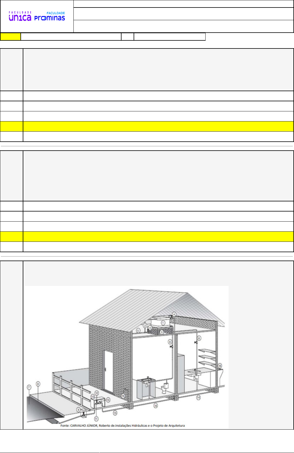 12/08/2024 19:32:57 1/3 REVISÃO DE SIMULADO Nome: BRENNDA ARAUJO CAROLA Disciplina: Hidráulica Respostas corretas são marcadas em amarelo X Respostas marcardas por você. Questão 001 As perdas de carga em tubulações hidráulicas podem ser distribuídas ou localizadas. A distribuída ocorre ao longo do comprimento devido à fricção, enquanto a localizada ocorre em pontos específicos devido a mudanças geométricas. Qual é a fórmula utilizada para calcular a perda de carga localizada em pontos específicos da tubulação em uma instalação hidráulica? A) Fórmula de Hazen-Williams. B) Equação de Darcy-Weisbach. X C) Fórmula de Poiseuille. D) Fórmula de perda de carga local E) Equação de Bernoulli. Questão 002 Condutos equivalentes em hidráulica simplificam sistemas complexos para um único conduto com características similares. São úteis em redes ramificadas e urbanas, facilitando análises. Calculados a partir de propriedades médias do sistema, representam perdas de carga e fluxo. Facilitam a avaliação de desempenho e otimização do projeto. Qual é o principal objetivo do uso de condutos equivalentes em hidráulica? A) Facilitar a compreensão da complexidade das redes de tubulações. B) Aumentar a complexidade dos sistemas de tubulações. C) Minimizar a necessidade de manutenção em sistemas hidráulicos. X D) Simplificar a análise de sistemas complexos de tubulações. E) Reduzir o desempenho e a eficiência dos sistemas hidráulicos. Questão 003 Órgão: Prefeitura de Chiapeta - RS Prova: OBJETIVA - 2023 - Prefeitura de Chiapeta - RS - Arquiteto) Considerando-se o sistema de distribuição de água mista representado a seguir pela figura A, assinalar a alternativa que apresenta a sequência CORRETA: 12/08/2024 19:32:57 2/3 X A) 1-reservatório, 2-ladrão, 3-limpeza, 4-registro, 5-saída na calçada, 6-distribuição, 7-rua, 8-guia, 9-registro na calçada, 10-abrigo cavalete, 11-hidrômetro, 12-registro, 13- cavalete, 14-alimentação, 15-instalação predial, 16-distribuição direta. B) 1-reservatório, 2-ladrão, 3-limpeza, 4-registro, 5-saída na calçada, 6-distribuição, 7-rua, 8-guia, 9-registro na calçada, 10-abrigo cavalete, 11-cavalete, 12-registro, 13- hidrômetro, 14-alimentação, 15-instalação predial, 16-distribuição direta. C) 1-reservatório, 2-registro, 3-limpeza, 4-ladrão, 5-saída na calçada, 6-distribuição, 7-rua, 8-guia, 9-registro na calçada, 10-abrigo cavalete, 11-cavalete, 12-hidrômetro, 13- registro, 14-alimentação, 15-instalação predial, 16-distribuição direta. D) 1-reservatório, 2-ladrão, 3-abrigo cavalete, 4-limpeza, 5-registro, 6-saída na calçada, 7- distribuição, 8-rua, 9-guia, 10-registro na calçada, 11-hidrômetro, 12-registro, 13- cavalete, 14-alimentação, 15-instalação predial, 16-distribuição direta. E) 1-reservatório, 2-registro, 3-limpeza, 4-ladrão, 5-saída na calçada, 6-distribuição, 7-rua, 8-guia, 9-registro na calçada, 10-abrigo cavalete, 11-cavalete, 12-registro, 13- hidrômetro, 14-alimentação, 15-instalação predial, 16-distribuição direta. Questão 004 Qual é o termo que se refere ao consumo de energia necessário para superar as resistências ao escoamento de um fluido em condutos forçados? X A) Viscosidade B) Perda de carga C) Pressão atmosférica D) Turbulência E) Atrito externo Questão 005 Na aplicação da engenharia hidráulica, várias equações são utilizadas para calcular as perdas de carga distribuídas em condutos forçados. Qual é a principal fórmula utilizada para calcular as perdas de carga distribuídas em condutos forçados na engenharia hidráulica? A) Equação de Colebrook-White. B) Equação de Bernoulli. C) Fórmula de Hazen-Williams. X D) Fórmula de Poiseuille. E) Equação de Darcy-Weisbach. Questão 006 Altas velocidades geram ondas de pressão, como o golpe de aríete hidráulico. Essas ondas de pressão podem causar danos ao sistema hidráulico, tornando desfavorável o uso de altas velocidades. Estratégias para mitigar esses impactos, como o uso de amortecedores e válvulas de fechamento suave, são recomendadas para evitar danos e garantir a eficiência do sistema. Considerando as informações fornecidas, qual é o principal motivo para não recomendar o uso de altas velocidades em sistemas hidráulicos? A) Altas velocidades provocam menor vibração no sistema. B) Altas velocidades geram ondas de pressão, como o golpe de aríete hidráulico. C) Altas velocidades facilitam a manutenção do sistema D) Altas velocidades aumentam a eficiência energética do sistema. X E) Altas velocidades reduzem o desgaste de material. 12/08/2024 19:32:57 3/3 Questão 007 A ABNT __________ estabelece que a pressão estática máxima em instalações prediais de água fria não pode exceder ___________ A perda de carga ocorre devido ao atrito entre a água e as paredes da tubulação, ou em mudanças de direção. Qual é a ABNT e o valor máximo permitido para a pressão estática em uma instalação predial de água fria? A) NBR 2033 20 m.c.a. B) NBR 5626 e 40 m.c.a. C) NBR 9077 e 30 m.c.a. D) NBR 1212 e 60 m.c.a. X E) NBR 4515 e 50 m.c.a. Questão 008 Para calcular tubulações em condutos forçados, é crucial considerar diversas variáveis, como densidade, viscosidade, perda de energia admissível, pressão de vapor e aspectos econômicos. Esses fatores influenciam diretamente no dimensionamento e na escolha adequada do conduto. Qual consideração é essencial para o cálculo de tubulações em um sistema de condutos forçados? A) Apenas o aspecto econômico da escolha do conduto. B) Apenas o diâmetro das tubulações. C) Apenas a densidade do fluido. D) Diversas variáveis, incluindo densidade, viscosidade e perda de energia. X E) Apenas a viscosidade do fluido.