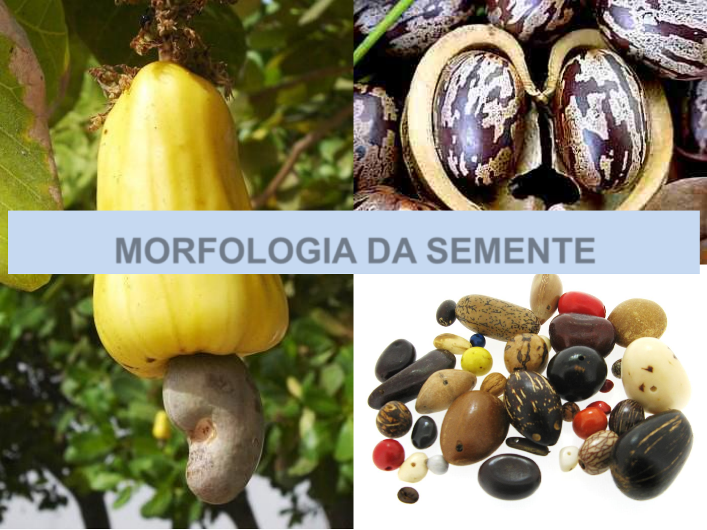 MORFOLOGIA DA SEMENTE O QUE É UMA SEMENTE???? O QUE É UM OVÁRIO??? O QUE É UM ÓVULO???? O QUE É UMA ESPORÓFITO??? O QUE É UM GAMETÓFITO??? ORIGEM EVOLUTIVA DA SEMENTE BRIÓFITAS Gametófito (n) rizóides caulídios filídios arquegônios (fem.) anterídeos (masc.) Esporófito (2n) “BRIÓFITAS” – MUSGOS, HEPÁTICAS E ANTÓCEROS PLANTAS TERRESTRES MENOS ADAPTADAS MUSGOS: SISTEMA VASCULAR POUCO DESENVOLVIDO NÃO POSSUEM ÓRGÃOS VERDADEIROS “CRIPTÓGAMAS” (“BRIÓFITAS” E “PTERIDÓFITAS”) CARACTERÍSTICAS: AUSÊNCIA DE FLORES, FRUTOS E SEMENTES EVENTOS EVOLUTIVOS: DIFERENCIAÇÃO CELULAR E ESTÔMATOS OS DIFERENTES GRUPOS DE PLANTAS, EVOLUÇÃO E CONQUISTA DO AMBIENTE TERRESTRE PTERIDÓFITAS 2. CAMADA EXTERNA ESTÉRIL AO REDOR DAS CÉLULAS PRODUTORAS DE ESPOROS, OS ESPORÂNGIOS ➢ TRANSFORMAÇÕES REPRODUTIVAS Lycopodium sp. – LICÓFITA (“PTERIDÓFITA”) TRANSFORMAÇÕES OCORRIDAS DURANTE O PROCESSO EVOLUTIVO SOROS “PTERIDÓFITAS” (TRAQUEÓFITAS) – LICÓFITAS E MONILÓFITAS (“SAMAMBAIAS”) SISTEMA VASCULAR DESENVOLVIDO E ÓRGÃOS VERDADEIROS “CRIPTÓGAMAS” (“BRIÓFITAS” E “PTERIDÓFITAS”) CARACTERÍSTICAS: AUSÊNCIA DE FLORES, FRUTOS E SEMENTES EVENTOS EVOLUTIVOS: TECIDOS DE SUSTENTAÇÃO E CONDUÇÃO OS DIFERENTES GRUPOS DE PLANTAS, EVOLUÇÃO E CONQUISTA DO AMBIENTE TERRESTRE COMO SURGIU O ÓVULO NA EVOLUÇÃO ??? PROGIMNOSPERMAS CARACTERÍSTICAS INTERMEDIÁRIAS ENTRE AS TRIMERÓFITAS (PTERIDÓFITA) E AS PLANTAS COM SEMENTES TRIMERÓFITAS - PTERIDÓFITA HIPÓTESE (Mauseth 2003) A comprovação fóssil O aparecimento do óvulo (Mauseth 2003) ESPORÂNGIO ESPORÓFITO cúpula cúpula GIMNOSPERMAS GIMNOSPERMAS GIMNOSPERMAS MAIOR PROTEÇÃO E NUTRIÇÃO AO EMBRIÃO DO ESPORÓFITO EM DESENVOLVIMENTO GIMNOSPERMAS SURGIMENTO E EVOLUÇÃO DA SEMENTE É CONCOMITANTE À EVOLUÇÃO DOS ESPOROFILOS E ESPORÂNGIOS NOS ESPORÓFITOS Cyca revoluta - CICAS GIMNOSPERMAS ANGIOSPERMAS ÓVULO E EMBRIÃO ENCERRADOS E PROTEGIDOS DENTRO DO OVÁRIO ➢ TRANSFORMAÇÕES REPRODUTIVAS ORIGEM DO CARPELO TRANSFORMAÇÕES OCORRIDAS DURANTE O PROCESSO EVOLUTIVO 5. ÓVULO E EMBRIÃO ENCERRADOS E PROTEGIDOS DENTRO DO OVÁRIO ➢ TRANSFORMAÇÕES REPRODUTIVAS ORIGEM DO CARPELO TRANSFORMAÇÕES OCORRIDAS DURANTE O PROCESSO EVOLUTIVO FRUTO OVÁRIO DA FLOR ORIGEM ESTRUTURA GERAL CONCEITO ➢ ÓVULO MADURO E FECUNDADO. ➢ ÓVULO MADURO, QUE POSSUI UM EMBRIÃO, MATERIAL DE RESERVA ALIMENTAR E UM ENVOLTÓRIO PROTETOR. ➢ CONJUNTO FORMADO PELO EMBRIÃO COM AS ESTRUTURAS QUE O RODEIAM. ESTRUTURA EXTERNA ESTRUTURA EXTERNA ➢ ORIGINA-SE DO ÓVULO (RUDIMENTO SEMINAL) – APRESENTA CICATRIZES: • MICRÓPILA – PEQUENA DEPRESSÃO OU PORO, ORIUNDA DA MICRÓPILA DO ÓVULO ➢ ORIGINA-SE DO ÓVULO (RUDIMENTO SEMINAL) – APRESENTA CICATRIZES: • HILO – CICATRIZ DEIXADA PELA ABSCISÃO DO FUNÍCULO (PEDÚNCULO) DA SEMENTE QUE A LIGAVA AO PERICARPO ESTRUTURA EXTERNA FUNÍCULO ➢ ORIGINA-SE DO ÓVULO (RUDIMENTO SEMINAL) – APRESENTA CICATRIZES: • RAFE – CICATRIZ RESULTANTE DA FUSÃO DO FUNÍCULO PROLONGADO COM O TEGUMENTO (EM SEMENTES ORIGINADAS DE ÓVULOS CURVOS). ESTRUTURA EXTERNA FUNÍCULO HILO MICRÓPILA ESTRUTURA EXTERNA Eugenia pyriformis - UVAIA Ricinus communis - MAMONA RAFE ESTRUTURA EXTERNA ➢ ESTRUTURAS COM COLORAÇÃO, SABOR E ODOR (ATRAÇÃO AGENTES DISPERSORES) • CARÚNCULA – EXCRESCÊNCIA CARNOSA COM ORIGEM NA MICRÓPILA Ricinus communis - MAMONA ESTRUTURA EXTERNA ➢ ESTRUTURAS COM COLORAÇÃO, SABOR E ODOR (ATRAÇÃO AGENTES DISPERSORES) • ARILÓIDE – A CARÚNCULA ESTENDE-SE ENVOLVENDO A SEMENTE PARCIAL OU TOTALMENTE ESTRUTURA EXTERNA ➢ ESTRUTURAS COM COLORAÇÃO, SABOR E ODOR (ATRAÇÃO AGENTES DISPERSORES) • ARILO – EXCRESCÊNCIA CARNOSA COM ORIGEM NO HILO Mucuna sp. - MUCUNÃ ESTRUTURA EXTERNA ➢ ESTRUTURAS COM COLORAÇÃO, SABOR E ODOR (ATRAÇÃO AGENTES DISPERSORES) • SARCOTESTA – TESTA OU PARTE DELA CARNOSA E COMESTÍVEL Punica granatum - ROMÃ ESTRUTURA EXTERNA Carica papaya - MAMÃO ESTRUTURA EXTERNA ➢ ESTRUTURAS COM COLORAÇÃO, SABOR E ODOR (ATRAÇÃO AGENTES DISPERSORES) • SARCOTESTA – TESTA OU PARTE DELA CARNOSA E COMESTÍVEL ESTRUTURA INTERNA ➢ PARTES DA SEMENTE: • TEGUMENTOS – EXTERNO (TESTA), INTERNO (TÉGMEN) • ENDOSPERMA • EMBRIÃO ESTRUTURA INTERNA - NUTRIR O EMBRIÃO - NATUREZA PARENQUIMÁTICA - CONTEÚDO DE RESERVA: LIPÍDIOS, CARBOIDRATOS E PROTEÍNAS - EM ALGUMAS SEMENTES O ENDOSPERMA É PRATICAMENTE TODO COMPOSTO POR AMIDO ESTRUTURA INTERNA ➢ PARTES DA SEMENTE: • ENDOSPERMA - SEMENTES ENDOSPÉRMICA - O ENDOSPERMA NÃO É TOTALMENTE CONSUMIDO PELO EMBRIÃO - SEMENTES EXENDOSPÉRMICAS - O ENDOSPERMA É TOTALMENTE CONSUMIDO PELO EMBRIÃO ESTRUTURA INTERNA ➢ PARTES DA SEMENTE: • ENDOSPERMA ESTRUTURA INTERNA SEMENTE ENDOSPÉRMICA Bauhinia sp. – PATA-DE-VACA • ENDOSPERMA ESTRUTURA INTERNA SEMENTE EXENDOSPÉRMICA • ENDOSPERMA ESTRUTURA INTERNA ALGUMAS MONOCOTILEDÔNEAS (EX.TRIGO E ARROZ) FIBRAS, PROTEÍNAS, MINERAIS, VITAMINAS, SUBSTÂNCIAS ANTI OXIDANTES, VITAMINAS TEGUMENTO RADÍCULA MAC CAMADA DE ALEURONA ESTRUTURA INTERNA ➢ PARTES DA SEMENTE: • EMBRIÃO primeiras folhas verdadeiras (eofilos), do primeiro nó verdadeiro RADÍCULA MAC HIPOCÓTILO ESTRUTURA INTERNA EUDICOTILEDÔNEA MONOCOTILEDÔNEA ➢ PARTES DA SEMENTE: • EMBRIÃO ➢ PARTES DA SEMENTE: • EMBRIÃO MAGNOLIÓFITAS - EUDICOTILEDÔNEAS ESTRUTURA INTERNA ➢ PARTES DA SEMENTE: • EMBRIÃO MAGNOLIÓFITAS - MONOCOTILEDÔNEAS ESTRUTURA INTERNA escutelo ESTRUTURA INTERNA ➢ PARTES DA SEMENTE: • EMBRIÃO TIPOS DE COTILÉDONES FECUNDAÇÃO E FORMAÇÃO DA SEMENTE A ORIGEM DO ENDOSPERMA NAS GIMNOSPERMAS E NAS ANGIOSPERMAS