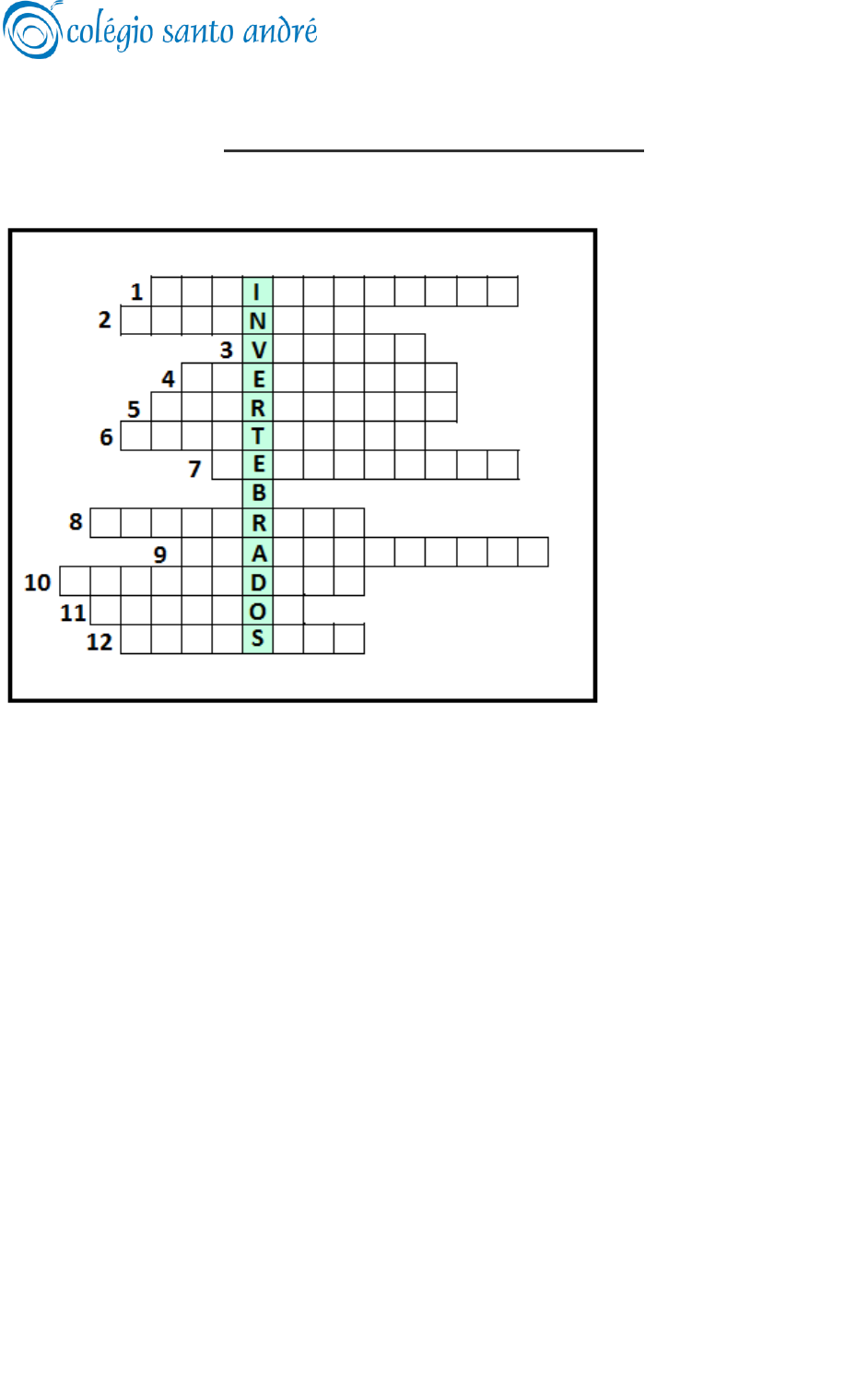 Exercícios online Ciências – 2017 / 7º Ano 1) Preencha o diagrama a abaixo de acordo com as instruções a seguir. 1) Grupo de seres vivos que inclui a estrela-do-mar e o ouriço-do-mar. 2) Invertebrados aquáticos, geralmente marinhos, cujo corpo tem a forma de um tubo ou de um vaso. 3) Palavra que se refere, de modo geral, aos platelmintos, aos nematódeos e aos anelídeos. 4) Grupo de animais ao qual pertencem a minhoca e a sanguessuga. 5) Grupo animal com maior número de espécies conhecidas. 6) Subdivisão dos artrópodes que engloba os camarões, as lagostas, os siris os caranguejos. 7) Vermes de corpo cilíndrico. 8) Grupo de animais que inclui as anêmonas-do-mar e as águas-vivas. 9) Vermes de corpo achatado. 10) Artrópodes tais como carrapatos, escorpiões, as aranhas e os ácaros. 11) Subdivisão dos artrópodes que inclui espécies com asas; são os únicos invertebrados que voam. 12) Invertebrados de corpo mole que inclui polvos, lulas e lesmas. 2) Um Nematoide, como a lombriga, não possui: A) sistema circulatório. B) intestino. C) boca. D) ânus. 3) A lombriga e a planária são exemplos de animais: A) monoico e dioico, respectivamente. B) dioicos. C) hermafroditas. D) dioico e monoico respectivamente. http://2.bp.blogspot.com/-WodDFGkm7xE/U90FpnTPjiI/AAAAAAAAAwc/c6K4AqItEkE/s1600/mestre.pngddddddddd.png 4) A lombriga é um verme que infesta os organismos humanos, provocando a ascaridíase. Caracteriza-se por ser um organismo pseudocelomado e apresentar respiração cutânea. Trata-se de um: A) Platelminto B) Celenterado C) Nematelminto. D) Anelídeo. 5) Em uma música de Raul Seixas temos a frase: "Eu prefiro ser uma metamorfose ambulante" Algo parecido acontece com certos insetos que para continuar sua espécie necessitam que ocorra a metamorfose. Qual alternativa a seguir apresenta animais que realizam a metamorfose completa? A) mosca – traça B) mosquito – barata C) mosca – borboleta D) traça – borboleta 6) As minhocas são importantes para o solo do ponto de vista ecológico, porque: A) mantêm a umidade do solo. B) repõem os sais minerais retirados pelas plantas. C) ajudam a fixar o nitrogênio no solo. D) abrem galerias e repõem a matéria orgânica no solo. 7) São células de defesa dos Cnidários: A) cnidoblastos. B) coanócitos. C) escleroblastos. D) solenócitos. 8) Faça a correlação entre as doenças humanas apresentadas na COLUNA A com os agentes causadores descritos na COLUNA B. Assinale a alternativa que apresenta a correlação correta. A) 1-e; 2-b; 3-a; 4-d; 5-c. B) 1-c; 2-e; 3-a; 4-b; 5-d. C) 1-a; 2-c; 3-d; 4-e; 5-b. D) 1-b; 2-a; 3-c; 4-d; 5-e. 9) Observe as imagens abaixo e responda: A) A que filo pertencem? http://2.bp.blogspot.com/-_duZqcyZ6dk/V9B36qKt3JI/AAAAAAAACzE/yfjvr67Lu3gititM7ZssZYuT1qBQffSvACK4B/s1600/capture-20160907-172543.png http://3.bp.blogspot.com/-GSaPJKFdyhA/V9B6OLrY_LI/AAAAAAAACzQ/R55nUhElExEVdLtyKH44T5NbK_KoHanuwCK4B/s1600/Sem+t%C3%ADtulo.png1.png B) Cite duas características comuns a esses animais. C) Cite uma característica exclusiva a cada um desses animais. . 10) Observe com atenção os desenhos abaixo e marque a relação correta do desenho com as maneiras de prevenção de cada doença que se segue. 11) A figura representa o ciclo de vida do mosquito Aedes aegypti, com as suas respectivas fases de desenvolvimento indicadas (I - ovo, II a VI - fases aquáticas e VII - fase adulta). Com base nesses dados e nas características gerais dos insetos holometábolos, assinale a afirmativa INCORRETA: A) Os indivíduos imaturos respiram por brânquias internas durante as fases de II a V. B) Esse tipo de inseto apresenta metamorfose completa e a pupa corresponde à fase VI. C) O inseto está incluído na Ordem Diptera, cujo hábito hematófago ocorre na fase VII. http://1.bp.blogspot.com/-xqRsg3dTNTc/V9B-8j_EUeI/AAAAAAAACzk/LI1-6sbe2ywfFrxRePwQI7yquWnkWchJACK4B/s1600/Imagem1.png http://1.bp.blogspot.com/-0T1BKkQ-Drc/V9B_KreQ5oI/AAAAAAAACzs/DKCpFFeONjwKAEs7tGp6ARlgV3DXt9_rwCK4B/s1600/capture-20160907-175641.png http://4.bp.blogspot.com/-bR-_xCHrzts/V9CAfZsQHKI/AAAAAAAACz0/LJ5_JxlP0h8C1j8WGMsHlLSPvSobQMUBACK4B/s1600/capture-20160907-180223.png D) As fêmeas são vetoras do vírus da febre amarela urbana e correspondem à fase VII. 12) Clitelo, rádula e lanterna-de- aristóteles são estruturas que ocorrem, respectivamente, em A) anelídeos, equinodermos e moluscos. B) anelídeos, insetos e moluscos. C) anelídeos, moluscos e equinodermos. D) cnidários, moluscos e equinodermos.