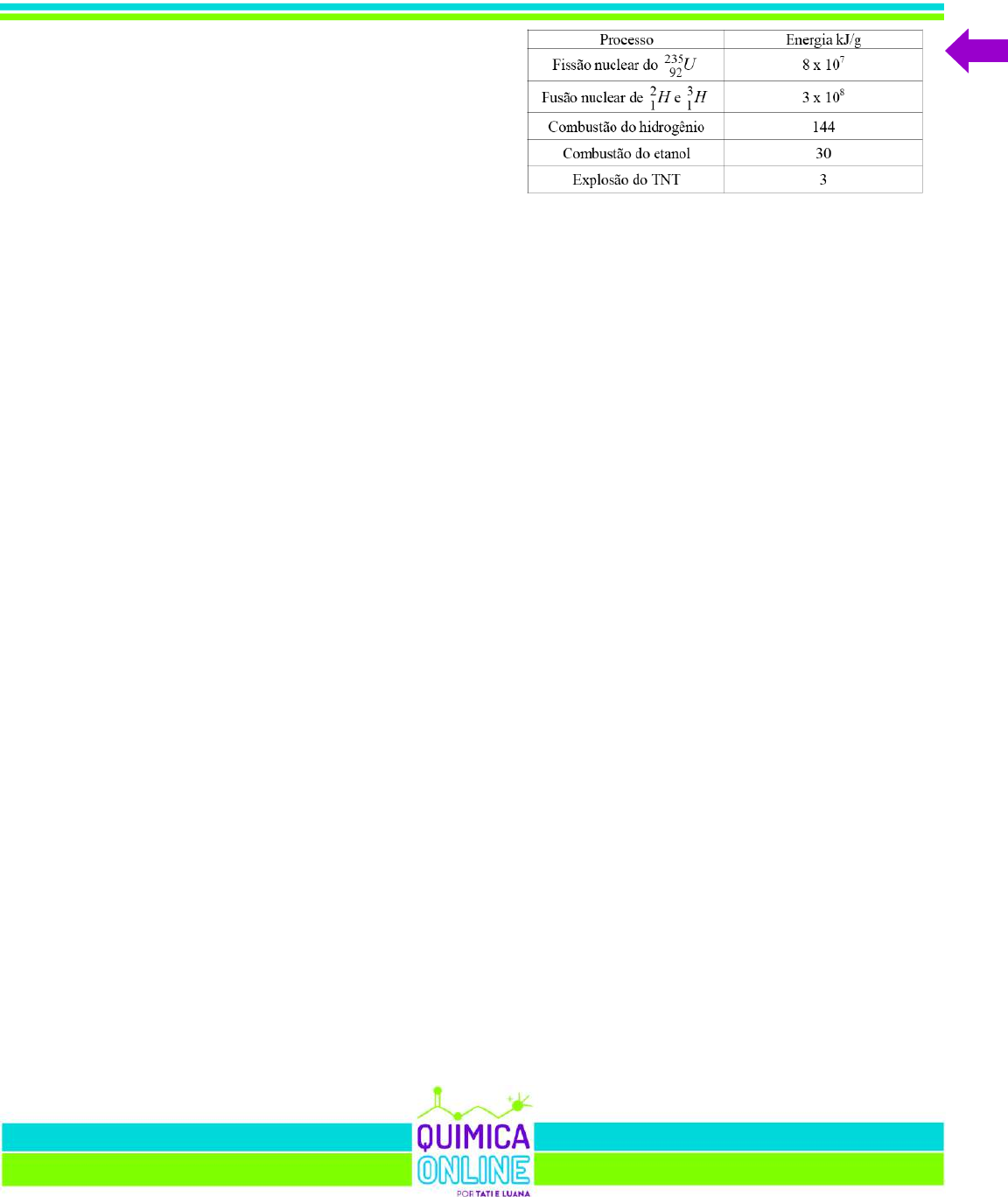 3000 QUESTÕES DE QUÍMICA 78 posso andar pelada pela casa sem agredir a moral pública ou os olhos exigentes da garotada dos binóculos, certo? De nossa sacada, quando faz bom tempo, sinto na pele o beijo ardente de meu amado sol. Uns poucos vasos mirrados, maltratados, sorriem de puro contentamento quando lhes dou a graça de minha atenção. E só. O gotejar da chuva no telhado, o cheiro da terra úmida, são lembranças remotas. Sabe, meu amor, não sei se algum dia você parou para pensar no assunto, talvez não, talvez a diferença seja mais nítida para nós, as mulheres. Ultimamente tenho questionado a diferença entre lar e moradia. E não me venha dizer que são sintomas de velhice! Apesar do atropelo impiedoso do novo sobre o velho, da globalização, que parece ignorar as diferenças individuais e culturais, da massificação, que padroniza a humanidade, sinto que, na cultura do povo brasileiro, demasiadamente jovem ainda, o conceito de lar continua enraizado em esteios, baldrames, telhado, pés descalços pisando canteiros fofos. Mulher. Terra. Fertilidade. Dá pra perceber a diferença? (BARROS, Adelice da Silveira. Mesa dos inocentes. Goiânia: Kelps, 2010. p. 43.) O texto faz menção a sol. O Sol é a estrela central do nosso Sistema Solar. É composto principalmente de hidrogênio (74%) e hélio (24%), com traços de outros elementos. No Sol, os átomos de hidrogênio passam pelo processo de fusão nuclear, de que resultam átomos maiores e liberação de enormes quantidades de energia. Sobre esse tema, analise os itens abaixo: I. Na Terra, as reações de fusão nuclear só foram largamente exploradas com o desenvolvimento da bomba de hidrogênio. II. Até hoje não se conseguiu controlar a fusão nuclear, a ponto de aproveitar a energia que é liberada, da mesma forma que se aproveita a energia liberada na fissão nuclear. III. Em fusões nucleares não há emissão de partículas subatômicas. De acordo com os itens analisados, marque a alternativa que contém apenas proposições corretas: a) I e II. b) I , II e III. c) I e III. d) II e III. 79 - (UEM PR) No quadro abaixo, encontra-se a energia aproximada liberada em alguns processos. Sabendo-se que 1 quiloton é o equivalente energético à explosão de mil quilos de TNT, assinale o que for correto. 01. A fusão nuclear é o processo de quebra de núcleos grandes em núcleos menores, liberando energia. 02. Uma bomba de TNT de uma tonelada tem a mesma energia da combustão de 10 mil quilos de etanol. 04. Para uma bomba atômica (baseada na fissão de urânio-235) de 20 quilotons de energia, é necessário menos de um grama de urânio. 08. Uma das vantagens da fusão nuclear em relação à fissão nuclear é a abundância de hidrogênio na natureza. 16. Se uma bomba baseada na fusão de hidrogênio tem 58 quilotons, então ela é equivalente à queima de mais de 5,8 toneladas de hidrogênio. 80 - (Mackenzie SP) A respeito dos processos de fissão e fusão nuclear, assinale a alternativa correta. a) A fusão nuclear é o processo de junção de núcleos atômicos menores formando núcleos atômicos maiores, absorvendo uma grande quantidade de energia. b) A fissão nuclear é o processo utilizado na produção de energia nas usinas atômicas, com baixo impacto ambiental, sendo considerada uma energia limpa e sem riscos. c) No Sol ocorre o processo de fissão nuclear, liberando uma grande quantidade de energia. d) A equação: , representa uma reação de fissão nuclear. e) O processo de fusão nuclear foi primeiramente dominado pelos americanos para a construção das bombas atômicas de Hiroshima e Nagasaki. 81 - (Univag MT) As equações I e II representam, respectivamente, uma das reações de fusão nuclear do hidrogênio que ocorrem no Sol, produzindo hélio, e a reação de combustão do hidrogênio gasoso, produzindo água no estado gasoso. n3KrBaUn 1 0 93 36 140 56 235 92 1 0 ++→+ 3000 QUESTÕES DE QUÍMICA 79 I. 2H + 3H 4He + 1n + 1,9 109 kJ II. H2 (g) + O2 (g) H2O (g) + 2,4 102 kJ A massa de H2 (g) necessária para que a sua combustão produza a mesma quantidade de energia do que a produzida na fusão de 1 mol de núcleos 2H é cerca de a) 2 t. b) 4 t. c) 16 t. d) 12 t. e) 8 t. 82 - (UEM PR) Um marco do programa nuclear brasileiro foi a construção de usinas nucleares para a geração de energia elétrica. Desde então, as pesquisas brasileiras na área nuclear resultaram em inovações no processo industrial de enriquecimento de urânio e no desenvolvimento de tecnologia nessa área. Em relação a esse tema, assinale o que for correto. 01. O processo denominado enriquecimento de urânio consiste, basicamente, em aumentar a porcentagem de 238U em relação à porcentagem de 235U no urânio encontrado na natureza. 02. Em um processo típico de fissão nuclear, um núcleo de 238U é bombardeado com um núcleo de hélio, resultando na obtenção de núcleos menores (tais como o xenônio e o estrôncio), na liberação de outros núcleos de hélio e na emissão de radiação gama. 04. O Brasil possui uma das maiores reservas mundiais (conhecidas) de urânio. 08. Para que a reação de fissão se mantenha, determinando uma reação em cadeia que continua espontaneamente, é necessário que a massa do material físsil seja maior que um valor característico denominado massa crítica. 16. Uma das vantagens da obtenção de energia por fissão nuclear é que os produtos resultantes do processo possuem radioatividade residual e são atualmente reutilizados na geração de energia elétrica. 83 - (UEM PR) Assinale o que for correto sobre os fenômenos relacionados à radioatividade, aos elementos radioativos, à energia nuclear e às suas interferências em vários setores da sociedade. 01. O ser humano convive diariamente com pequenas doses de radioatividade, por meio de fontes naturais e, por vezes, artificiais. 02. Aparelhos de radioterapia contêm elementos radioativos (tais como o césio-137). Quando esses a