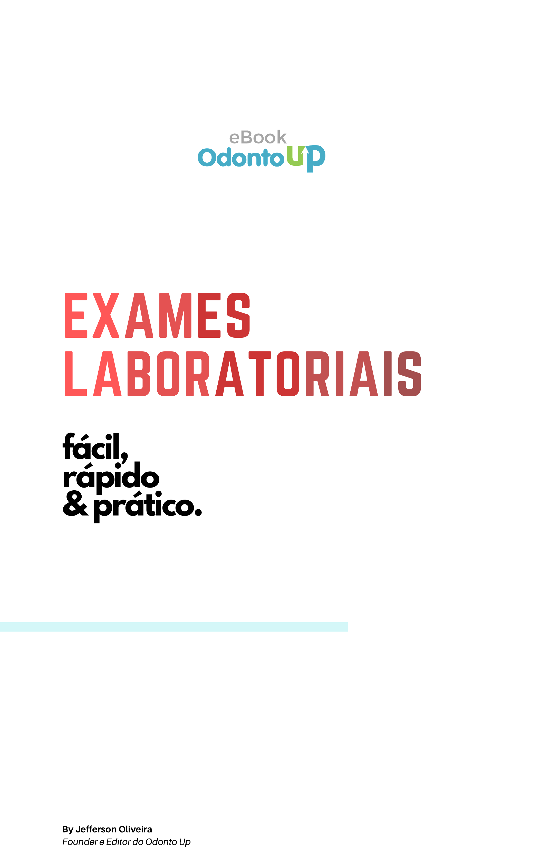Tudo o que você precisa saber para uma prática clínica segura By Jefferson Oliveira Founder e Editor do Odonto Up fácil, rápido & prático. eBook EXAMES LABORATORIAIS SOBRE O ODONTO UP Jefferson Oliveira fundou o Odonto Up na intenção de compartilhar seus conteúdos com os colegas da faculdade. Mas foi além, criou uma nova maneira de estudar e pensar a odontologia: acelerando conhecimento. Hoje, considerado um dos maiores sites com conteúdos digitais de odontologia do país, o Odonto Up tem o objetivo de democratizar informações acadêmicas e técnicas de qualidade, com uma releitura moderna, atrativa e esteticamente agradável. INTRO- DUÇÃO Encontre as informações que você precisa para se destacar na prática clínica e na sua carreira acadêmica através de um estudo completo e de referência. A vida de um profissional da saúde exige que você tenha flexibilidade e se adeque aos diferentes desafios impostos diariamente. Antes de definir um tratamento, é necessário que se tenha um diagnóstico o mais assertivo possível. Para tanto, coletar informações na anamnese é fundamental para se chegar lá. Exames radiográficos e de imagem estão sempre nas nossas prescrições, mas e os exames laboratoriais? Obter dados sobre o quadro sistêmico do paciente pode não só nos diferenciar como profissionais com visão global sobre o estado de saúde do paciente, mas também nos dar informações importantes para o tratamento e possíveis diagnósticos diferenciais. Os exames laboratoriais são um conjunto de exames e testes realizados em laboratórios de análises clínicas, auxiliando no diagnóstico ou confirmação de uma patologia. Existem vários tipos de exames que podem nos ajudar, e os mais solicitados são aqueles feitos à partir da coleta do sangue. SOLU- ÇÃO Nesse ebook você vai ter acesso à um conteúdo simplificado, didático e de rápida leitura. Vamos lá? Esse ebook contém Hemograma Coagulograma Glicemias Função Hepática Função Renal HIV Hepatites APROX. 25 MIN DE LEITURA (IDEAL PARA SER UTILIZADO EM DESKTOP. CASO VOCÊ ABRA NO CELULAR, USE NA HORIZONTAL E COM ZOOM+ PARA AUMENTAR A FONTE) 1 HEMO GRAMA Sangue Hemograma Eritrograma Leucograma COMPLETO Pg. 5 Exames Laboratoriais SANGUE Produzido na medula óssea, o sangue é um tecido líquido, cuja função é fazer circular por todo o corpo o oxigênio vindo dos pulmões e levar de volta o gás carbônico. Também carrega nutrientes e hormônios para serem distribuídos por todas as células, além de outras funções. Entre as principais células estão as hemácias (eritrócitos ou glóbulos vermelhos), os leucócitos (glóbulos brancos) e as plaquetas. COMPOSIÇÃO PLASMA LEUCÓCITOS PLAQUETAS HEMÁCIAS / ERITRÓCITOS QUANTIDADE O volume de sangue varia de acordo com o sexo, massa e altura da pessoa. Nos homens, pode variar de 3,2L a 6,5L, dependendo da constituição física. Já nas mulheres, esses valores variam entre 2.8L e 6,1L. Para pessoas com mesma massa e mesma altura, o volume de sangue do homem é cerca de 400mL maior do que o da mulher. você sabia? Parte líquida do sangue, com cor amarelada e serve para levar H20 e nutrientes para os tecidos do corpo Fragmento de uma célula maior chamada megacariócito, é essencial para a coagulação sanguínea Principal agente de defesa do organismo, dividido em: neutrófilos, eosinófilos, basófilos, linfócitos e monócitos Função de transportar o oxigênio para todos os tecidos do corpo, é a célula mais numerosa no sangue LEUCÓCITOS HEMÁCIAS PLASMA PLAQUETAS Tem a função de proteger o nosso organismo contra infecções. Através da quimiotaxia (processo de migração das células em direção a um gradiente químico), os leucócitos deslocam-se para a zona de infecção. Uma vez no local, conseguem atravessar do sangue para o tecido conjuntivo (diapedese), combatendo o agressor no local de origem. A concentração de leucócitos em um adulto saudável é de 4,500 - 11,000μL (unidades por microlitro). -Leucocitose: aumento da concentração de leucócitos; -Leucopenia: diminuição do número de leucócitos. Também conhecidos como trombócitos, são células sanguíneas liberadas pelos megacariócitos da medula óssea e circulam pelo sangue com um tempo de vida útil de aproximadamente 10 dias. Tem como principal função promover a coagulação do sangue através da formação de coágulos. A contagem normal de plaquetas em adultos varia de 150.000 a 450.000/μL. Quando há necessidade hemostática, as plaquetas movem-se a partir do baço para o sangue periférico, respondendo à estímulos celulares e humorais. Trombocitopenia: contagem menor que 150.000μL. ERITRÓCITOS Responsáveis pela oxigenação dos tecidos, a função da hemácia é trocar dióxido de carbono (CO2) por oxigênio (O2) na circulação pulmonar, O2 por CO2 nos tecidos periféricos e transportar o CO2 de volta aos pulmões. A cor vermelha resulta de um pigmento denominado de hemoglobina, proteína formada por quatro subunidades ligada a um grupo heme que contém Ferro 2+. -Anemia: baixa quantidade de hemoglobina no sangue. O transporte de O2 é afetado e as células realizam o processo de respiração celular em menor quantidade; - Anemia falciforme: uma doença hereditária caracterizada pela deformação da hemácia. É a porção líquida do sangue que serve de matriz para hemácias, leucócitos e nutrientes serem transportados através dos vasos sanguíneos. Representa mais da metade do volume total do sangue e possui um aspecto amarelado quando separado da porção celular. Cerca de 95% do plasma é água, sendo o restante formado por proteínas (albumina), glicose, eletrólitos (Na+, Mg+ e K+), hormônios e fatores de coagulação. O plasma é essencial para manter a homeostase corporal. Homeostase: condição de relativa estabilidade da qual o organismo necessita para realizar suas funções em equilíbrio. FA S E S D E C O R R E N T E S D A C E N T R I