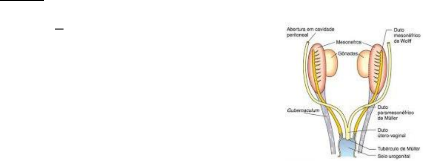 CCA 442 - Fisiopatologia da Reprodução Aula 1: Diferenciação Sexual As etapas na diferenciação sexual são interdependes, ou seja, uma etapa depende do evento que ocorreu nos estágios anteriores. o Etapa 1 - Sexo Cromossômico ou genético: XX e XY. Determinado durante a fecundação quando o espermatozoide X ou Y penetra em um oócito, formando o zigoto de constituição XX (fêmea) ou XY (macho). o Etapa 2- Sexo Gonadal: diferenciação das gônadas. Depende de estímulos. Ocorre mais tarde quando a gônada indiferenciada se desenvolve em testículos ou em ovário, certamente influenciada pelo sexo cromossômico. o Etapa 3 – Sexo fenotípico ou somático: é quando ocorre o desenvolvimento das estruturas da genitália do macho ou da fêmea, através de estímulos ou pela ausência deles. o Etapa 4 – Sexo comportamental: Ocorre diferenciação a nível de SNC. Diferenciação para MACHO: 1. Sexo cromossômico: XY. O cromossomo Y tem o Gen SRY (região determinante do sexo no cromossomo que codifica a proteína TDF – (fator determinante de testículo). O TDF age no sistema reprodutor indiferenciado embrionário, que é composto por um par de gônadas indiferenciadas, par de ductos internos (mesonéfricos) e externos (paramesonéfricos), tubérculos e pregas genitais e seio urogenital. 2. Sexo gonadal: Por influência da TDF, as gônadas indiferenciadas tornam-se testículos (células diferenciadas). 3. Sexo fenotípico: A testosterona produzida pelas células de Leyding, age na diferenciação dos ductos mesonéfricos, formando o epidídimo, ductos deferentes, ampolas e glândulas vesiculares. A enzima 5 alfa – redutase transforma a testosterona em Di- hidrotestosterona, que vai agir no tubérculo genital (transformando em pênis), nas pregas genitais (prepúcio, glande e escroto) e no seio urogenital (próstata, bulbouretrais e uretra peniana). As células de Sertoli produzem também o MIH – hormônio inibidor dos ductos de Muller. 4. Sexo comportamental: no macho a testosterona é transportada livre pela corrente sanguínea até o SNC, onde atravessa a barreira hematoencefálica e é convertido pela enzima Aromatase em estrógeno, ocasionando na masculinização. *estrógeno no SNC masculiniza. Diferenciação para FÊMEA: 1. Sexo cromossômico: XX, logo por não ter o Y, não tem o gen SRY e não codifica a proteína TDF. 2. Sexo Gonadal: gônadas indiferenciadas tornam-se ovários, pois não tem ação do TDF. 3. Sexo fenotípico: Nas fêmeas na ausência de testosterona, não há diferenciação dos ductos mesonéfricos e não há produção de MIH, logo ocorrerá desenvolvimentos dos ductos paramesonéfricos, que darão origem a tubas uterina, útero e parte cranial da vagina (até o vestíbulo). Na ausência de testosterona não ocorre a conversão para di-hidrotestosterona, dessa forma o restante do sistema reprodutor indiferenciado desenvolve-se para sistema reprodutor feminino, onde o seio urogenital forma a parte caudal da vagina, o tubérculo genital forma o clitóris e pregas genitais formam os grandes e pequenos lábios (vulva). 4. Sexo Comportamental: o ovário produz estrógeno, que cai na circulação sanguínea e é carreado pela alfa fetoproteína até o SNC. Essa proteína não consegue atravessar a barreira hematoencefálica, logo o estrógeno não entra no SNC. Por essa ausência de estrógeno no SNC o animal segue com o comportamento de fêmea. *Quando há problema na enzima alfa fetoproteína (não está disponível), o estrógeno circula livremente, passando pela barreira hematoencefálica e masculiniza o SNC (a fêmea fica com comportamento masculino). Resumo: A diferenciação do macho é ativa e precoce, pois precisa de fatores e estímulos. A diferenciação da fêmea é passiva e tardia, pois precisa de ausência de estímulos (não tem SRY - TDF – Testosterona – MHI). Intersexos: alteração no desenvolvimento anatômico ou fisiológico reprodutivo do animal. O sexo fenotípico contrapõe o sexo cromossômico, e o animal tem parte do sistema reprodutor de macho e parte do de fêmea. Tem mais incidência em suínos e caprinos, sendo os caprinos ligados ao caráter mocho, onde ao acasalar uma cabra mocha com um macho mocho, tem até 75% de chances de ter descendentes intersexo no rebanho, pois aumenta a predisposição desse gene recessivo se expressar. É menos frequente em equinos e caninos. Pouco frequente em bovinos e ovinos. E rara em felinos. - Animal estéril: animal não tem capacidade de se reproduzir. Não é reversível. - Animal infértil: animal não tem capacidade de se reproduzir naquele momento, a infertilidade pode ser revertida ou, pode caminhar para um quadro irreversível, tornando nesse caso, estéril. - Animal subfértil: animal tem capacidade diminuída de se reproduzir. Ex: baixo score corporal, baixa nutrição. ➢ Hermafrodita verdadeiro: combinações de ovários, testículos e ovotestis. Normalmente é XX. E é mais comum em suínos. Não é hereditário e o animal é estéril. Variadas alterações no sistema genital interno, e quase sempre a genitália externa é feminina (vulvas rudimentares, clitóris hipertrofiados e grande quantidade de pelos). No pseudo-hermafrodita o sexo gonadal contrapõe o sexo fenotípico. E a genitália não é totalmente completa e desenvolvida. ➢ Pseudo-hermafrodita macho: gônada masculina, vias genitais internas femininas e vias genitais externas masculinas rudimentares, XX ou XY. ➢ Pseudo-hermafrodita fêmea: gônada feminina, vias genitais internas masculinas rudimentares e vias genitais externas femininas rudimentares. *o macho pode ser XX, quando ocorre translocação ou mutação. Isso decorrente do cromossoma X paterno que deveria ser inativado durante o desenvolvimento embrionário. * animal XX com gen SRY negativo com fenótipo masculino – sexo reverso? Locus Z - Segundo essa hipótese, o produto do gene SRY agiria como repressor de outro gene autossômico ou loc