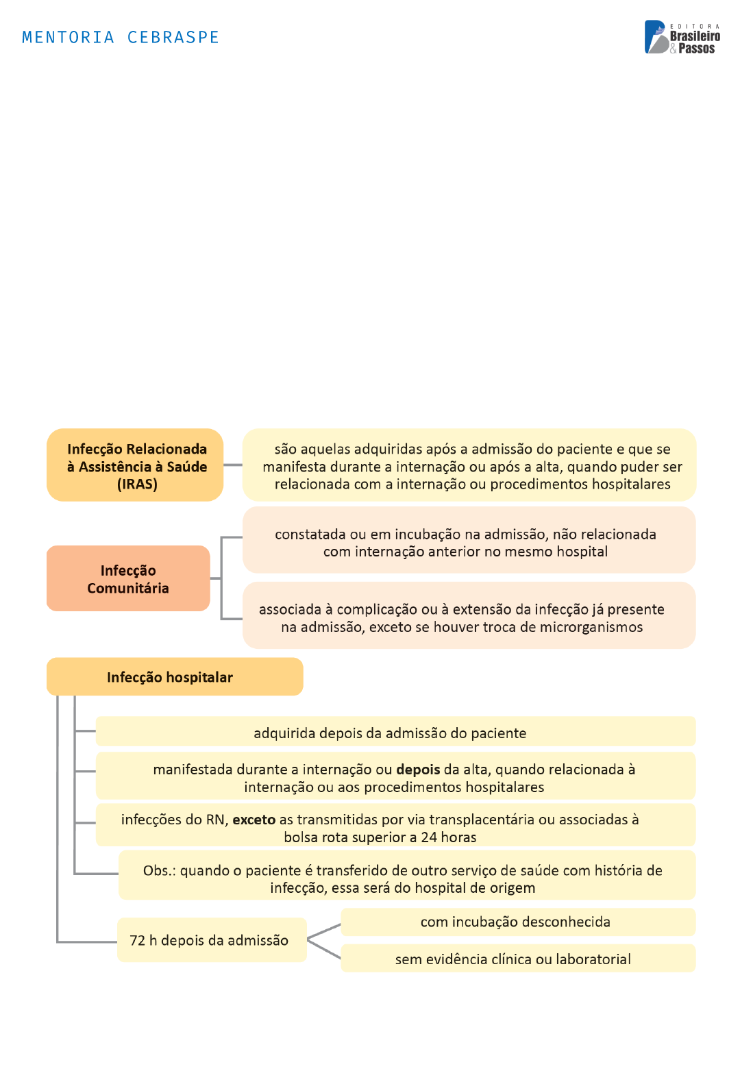 www.romulopassos.com.br 1 9º Simulado CEBRASPE 145 questões comentadas de Enfermagem Provas: DATAPREV; PM-TO; Petrobras; Barra dos Coqueiros- SE; Maringá-PR; e Camaçari-BA. Segunda, às 20h www.romulopassos.com.br 2 (DATAPREV/CEBRASPE/2023) Julgue o item que se seguem, com base em referências reconhecidas pelo Ministério da Saúde para o trabalho em enfermagem. 1. A infecção adquirida fora do ambiente hospitalar é denominada infecção externa. ( ) Certo ( ) Errado 2. (Prefeitura de Barra dos Coqueiros-SE/CEBRASPE/2020) Assinale a opção correta acerca das medidas de prevenção e controle das infecções relacionadas à assistência à saúde (IRAS). a) Os equipos de infusão de hemocomponentes devem ser trocados a cada 96 horas, a fim de se evitar infecção da corrente sanguínea. b) Na higiene íntima rotineira do paciente que usa cateter de longa permanência, é preciso aplicar antibióticos ou antissépticos junto ao meato urinário e realizar a troca periódica desse dispositivo. c) Para prevenir infecção cirúrgica, a tricotomia deve ser feita de rotina no dia anterior, com lâminas descartáveis. d) Na utilização de cateteres venosos periféricos, devem-se escolher aqueles de maior calibre, para diminuir a resistência das soluções infundidas, e manter fixação com esparadrapo comum ou fita micropore. e) Para diminuir os riscos de pneumonia associada à ventilação mecânica do paciente entubado, a higiene bucal dele deve ser feita com gaze seca ou umedecida em água destilada, inclusive na superfície externa do tubo orotraqueal. www.romulopassos.com.br 3 3. (Prefeitura de Barra dos Coqueiros-SE/CEBRASPE/2020) A higienização das mãos é uma medida de extrema importância para prevenir infecções na assistência à saúde. A respeito desse assunto, assinale a opção correta. a) As mãos, quando visivelmente sujas ou contaminadas, devem ser higienizadas somente com álcool em gel a 70%. b) A higienização antisséptica das mãos deve ser feita com polivinil pirrolidona iodo (PVPI) degermante, durante três a cinco minutos. c) O uso de luvas de procedimento torna facultativa a higienização das mãos durante a assistência. d) A higienização simples das mãos favorece a remoção mecânica de substâncias orgânicas e microrganismos. e) O uso obrigatório do álcool em gel a 70% restringe-se a procedimentos em que há possível contaminação por fluidos corporais. 4. (Prefeitura de Camaçari-BA/CEBRASPE/2024) A higienização das mãos é um componente das medidas de precauções padrão, que visa prevenir a transmissão de microrganismos nos ambientes de assistência à saúde. Acerca dessa prática, assinale a opção correta. a) A higienização pode ser feita com preparação alcoólica quando as mãos estiverem visivelmente sujas. b) A higienização das mãos após tocar o paciente visa proteger o paciente, evitando a transmissão de micro-organismos das mãos do profissional de saúde. c) A higienização das mãos deve ser realizada somente antes do contato com as áreas próximas ao paciente. d) A higienização das mãos é recomendada somente antes da exposição a fluidos corporais. e) A higienização das mãos antes da realização de qualquer procedimento asséptico evita a transmissão de microrganismos das mãos do profissional para o paciente. 5. (Prefeitura de Barra dos Coqueiros-SE/CEBRASPE/2020) O Ministério da Saúde preconiza a higienização das mãos como uma medida primária no controle e na prevenção de infecções nos serviços de saúde. O profissional de enfermagem deve, necessariamente, higienizar suas mãos com preparação alcoólica a) sempre antes de iniciar o turno de trabalho. b) quando tiver resíduo nas mãos após o preparo de medicamentos. c) no momento que antecede a manipulação do cateter e do sistema de administração de medicamento intravenoso. d) após usar o banheiro. e) após calçar luvas de procedimento para realização de procedimentos invasivos. (DATAPREV/CEBRASPE/2023) Julgue os itens subsequentes. 6. Por força do princípio da biossegurança, o uso de luvas pode substituir o processo de lavagem das mãos na situação de indisponibilidade de pias e lavatórios, conforme previsto nas normas regulamentadoras do trabalho. ( ) Certo ( ) Errado www.romulopassos.com.br 4 Comissão de Controle de Infecção Hospitalar - CCIH www.romulopassos.com.br 5 7. (Prefeitura de Camaçari-BA/CEBRASPE/2024) A comissão de controle de infecção hospitalar (CCIH) deve I. ser constituída por profissionais de nível superior. II. realizar periodicamente uma revisão das normas institucionais de combate às infecções hospitalares. III. promover atividades educativas de prevenção e controle das infecções dirigidas ao quadro de profissionais de saúde do hospital. Assinale a opção correta. a) Apenas o item I está certo. b) Apenas o item II está certo. c) Apenas o item III está certo. d) Apenas os itens I e III estão certos. e) Todos os itens estão certos. 8. (Prefeitura de Barra dos Coqueiros-SE/CEBRASPE/2020/Adaptada) As máscaras com filtro N95 ou PFF2 são utilizadas na assistência de pacientes em que há necessidade de precauções de contato por aerossóis. São exemplos de doenças cuja prevenção demanda o uso obrigatório dessas máscaras: a) a covid-19 em procedimentos geradores de aerossóis e a meningite. b) a covid-19 em procedimentos geradores de aerossóis e a rubéola. c) a covid-19 em procedimentos geradores de aerossóis e o sarampo. d) a covid-19 em procedimentos geradores de aerossóis e a zika. e) a covid-19 em procedimentos geradores de aerossóis e a coqueluche. www.romulopassos.com.br 6 9. (Prefeitura de Barra dos Coqueiros-SE/CEBRASPE/2020) A respeito do planejamento na administração e assistência de enfermagem ao paciente com tuberculose pulmonar em nível ambulatorial, assinale a opção correta. a) Sendo negativo o resultado da baciloscopia do escarro colhida na primeira