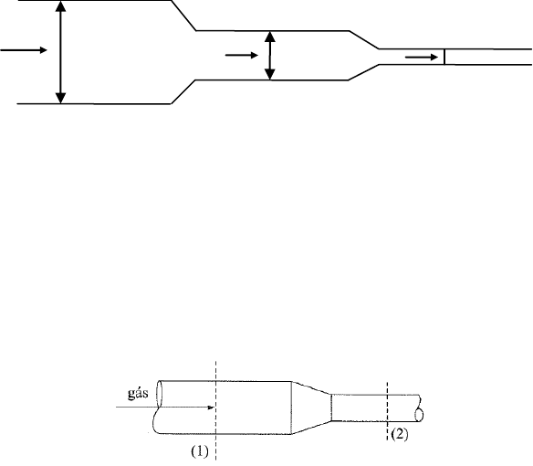 Fenômenos de Transporte I - Lista de Exercícios P2 Conservação de Massa (Equação da Continuidade) 1) Água ( 10³ kg/m³ ) escoa por um tubo de seção circular com duas reduções de área de seção. O fluido tem velocidade no ponto (1) igual a 1v 0,5 m/s . Os diâmetros do tubo em cada ponto são: 1D 1 m , 2D 0,7 m e 3D 0,3 m . Calcule: a) A vazão volumétrica, mássica e de peso pelo tubo. (g 9,8 m/s² ) b) As velocidades nos pontos 2 e 3. Resp.: Q 0,393 m³/s , MQ 392,7 kg/s , Q 3848,5 N/s G , 2v 1,02 m/s , 3v 5,56 m/s 2) Um gás escoa em regime permanente no trecho de tubulação da figura. Na seção (1), tem-se 1 20 cm²A , 1 4 kg/m³ e 1v 30 m/s . Na seção (2), 2 10 cm²A e 2 12 kg/m³ . Qual é a velocidade na seção (2) ? Dica: Como as densidades são diferentes, as vazões mássicas são iguais e não as volumétricas. (pág. 75, Mecânica dos Fluidos – Franco Brunetti 2ª edição revisada) Resp.: 2v 20 m/s 3) Um gás (γ 5 N/m³ ) escoa em regime permanente com uma vazão de 5 kg/s pela seção A de um conduto retangular de seção constante de 0,5 m por 1 m. Em uma seção B, o peso específico do gás é 10 N/m³. Qual será a velocidade média do escoamento nas seções A e B? (g = 10 m/s²) Resp.: Av 20 m/s , Bv 10 m/s . 4) Uma torneira enche de água um tanque, cuja capacidade é 6.000 L, em 1 h e 40 min. Determine a vazão em volume, em massa e em peso em unidade do SI se 2H O 1.000 kg/m³ e 10 m/s²g . 1D 2D 3D 1v 2v 3v Resp.: 1 L/sQ , 1 kg/sMQ e 10 N/sGQ . 5) Os reservatórios da figura são cúbicos. São cheios pelos tubos, respectivamente, em 100 s e 500 s. Determinar a velocidade da água na seção (A), sabendo que o diâmetro do nessa seção é 1 m. (Exercício 3.9, pág. 80, Mecânica dos Fluidos – Franco Brunetti 2ª Edição Revisada) Resp.: Av 4,14 m/s 6) O tanque cilíndrico mostrado na figura abaixo é alimentado pelas seções (1) e (2) com as vazões indicadas na figura. Determine a velocidade média na seção de descarga do tanque, sabendo que o nível da água no tanque permanece constante ao longo do tempo. (Exercício 5.10, pág. 246, Mecânica dos Fluidos – Munson, 4ª edição) Resp.: 3v 0,7 m/s Conservação de Energia (Bernoulli) 1) Água ( 10³ kg/m³ ) escoa por um tubo de seção circular com duas reduções de área de seção. O fluido tem velocidade no ponto (1) igual a 1v 0,5 m/s e pressão relativa 5 1P 1,5 10 Pa . Os diâmetros do tubo em cada ponto são: 1D 1 m , 2D 0,7 m e 3D 0,3 m . Calcule as pressões nos pontos 2 e 3. Resp.: 5 2P 1,55 10 Pa , 5 3P 1,47 10 Pa 2) Água escoa em regime permanente no Venturi da figura. No trecho considerado, supõem-se perdas por atrito desprezíveis e as propriedades uniformes nas seções. A área (1) é 20 cm², enquanto a da garganta (2) é 10 cm². Um manômetro cujo fluido manométrico é mercúrio ( Hg 136.000γ N/m³ ) é ligado entre as seções (1) e (2) e indica o desnível mostrado na figura. Pede-se a vazão da água que escoa pelo Venturi. ( 2H O 10.000γ N/m³ ) (pág. 89, Mecânica dos Fluidos – Franco Brunetti 2ª edição revisada) Resp.: Q 5,8 L/s 3) Água escoa num conduto com uma contração na seção como mostrada na figura abaixo. Em cada sistema, há um piezômetro e um tudo de pitot para medir a pressão em cada seção. Determine a vazão em volume na contração em função de D para os três sistemas sabendo que a diferença de alturas no manômetro é constante e igual a 0,2 m. (Exercício 3.31, pág. 133, Mecânica dos Fluidos – Munson, 4ª edição) 1D 2D 3D 1v 2v 3v 0,6 m 0,7 m Resp.: a) 2Q 1,56D . b) Não existe (provar que Q é irracional, e que necessariamente a altura da coluna no pitot deve ser maior que no piezômetro neste caso). c) Q = 0,0156 m³/s para qualquer D. 4) A figura abaixo mostra o escoamento de água numa redução com vazão Q. A pressão estática em (1) e em (2) são medidas com um manômetro em U invertido que utiliza óleo, densidade relativa igual à SG, como fluido manométrico. Nestas condições, determine a leitura no manômetro (h). (Exercício 3.58, pág. 137, Mecânica dos Fluidos – Munson, 4ª edição) Resp.: 2 4 2 1 2 2 14 2 1 D DQ g SGD h 5) Um método para se produzir vácuo numa câmara é descarregar água por um tubo convergente-divergente, como é mostrado na figura. Qual deve ser a vazão em massa de água pelo convergente-divergente, para produzir uma depressão de 22 cm de mercúrio na câmara da figura? Dados: desprezar as perdas de carga; 2 4 3 H N m10O ; 2 m s10g ; 1 72 mmD ; 2 mm36D . ( 5760 mmHg 1,01 10 Pa ) (Exercício 4.9, pág. 109, Mecânica dos Fluidos – Franco Brunetti 2ª edição revisada) Resp.: MQ kg/s8,14 6) Determinar a velocidade do jato de líquido no orifício do tanque de grande dimensões da figura abaixo. Considerar fluido ideal (incompressível e invíscido). (Exercício 4.1, pág. 107, Mecânica dos Fluidos – Franco Brunetti 2ª edição revisada) Resp.: 2v gh 7) Água escoa sob a comporta deslizante mostrada na figura abaixo. Estime o valor da vazão em volume de água na comporta por unidade de comprimento de canal. Assuma que 2 0,61z a , onde 0,61 é o fator de compressão do fluido após a saída pela comporta. Repare que a altura do fluido após a comporta não tem a mesma altura da comporta. (Exemplo 3.12, pág. 118, Mecânica dos Fluidos – Munson, 4ª edição) Resp.: 4,61 m³/sQ 8) Água escoa sobre um vertedouro triangular como o mostrado na figura abaixo. Se a vazão em volume é Q0 quando H = H0, estime qual é a vazão quando a profundidade aumenta para H = 3H0. (Exemplo 3.13, pág. 120, Mecânica dos Fluidos – Munson, 4ª edição) Resp.: 0/ 15,6Q Q 9) Água escoa em regime permanente nos tanques mostrados na figura abaixo abaixo. Determine a profundidade da água no tanque A (hA). Dica: Faça Bernoulli entre o topo do tanque B e o tubo de saída em B para calcular a vazão Q. (Exercício 3.58, pág. 137, Mecânica dos Fluidos – Munson, 4ª edição) Re