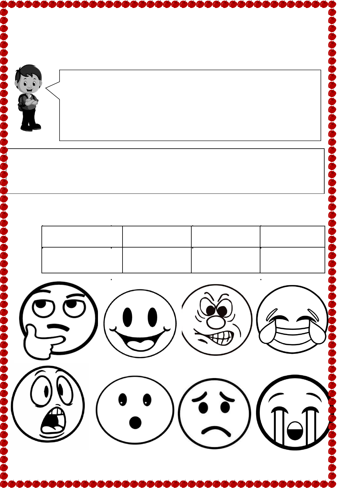 EI03EF01 - Expressar ideias, desejos e sentimentos sobre suas vivências, por meio da linguagem oral e escrita (escrita espontânea), de fotos, desenhos e outras formas de expressão. . AGORA OBSERVE AS FIGURAS DE EMOÇÕES E PINTE CADA UMA DE ACORDO COM A LEGENDA. ALEGRIA = LARANJA TRISTEZA = AZUL RAIVA = VERMELHO MEDO = ROXO GARGALHADAS = AMARELO CHORO = CINZA DÚVIDA = VERDE SUPRESA = ROSA OLÁ VAMOS COMEÇAR NOSSAS ATIVIDADES. GOSTARIA DE DIZER QUE ESTOU MUITO FELIZ DE ESTÁ AQUI COM VOCÊS. VAMOS FALAR AQUI SOBRE A NOSSA VIDA DURANTE A PANDEMIA , NOSSOS SONHOS E O QUE REALMENTE ESTAMOS VIVENDO . IREMOS TAMBÉM FALAR SOBRE NOSSO DIREITOS E DEVERES COMO CIDADÃOS. NO FINAL DA APOSTILA TEM AS CARINHAS DE EMOÇÕES. GOSTARIA QUE VOCÊ ME CONTASSE COMO VOCÊ ESTAVA. QUAL ERA O SEU SENTIMENTO AO CONCLUIR CADA ATIVIDADE. ESTAMOS MORRENDO DE SAUDADE DE VOCÊS. VAMOS COMEÇAR? O TEMPO TEM PASSADO MUITO DEPRESSA E MUITAS COISAS ESTÃO ACONTECENDO NO NOSSO MUNDO. E NOSSAS EMOÇÕES ESTÃO EM CONSTANTES MUDANÇAS. ESTAMOS EM BUSCA DE NOVOS SONHOS, DE DIREITOS SEREM CONQUISTADOS E PRINCIPALMENTE DO RESPEITO POR NOSSAS EMOÇÕES E NOSSOS SENTIMENTOS. EI03EF01 - Expressar ideias, desejos e sentimentos sobre suas vivências, por meio da linguagem oral e escrita (escrita espontânea), de fotos, desenhos e outras formas de expressão. LEIA AS FRASES. DEPOIS RECORTE E COLE CADA EXPRESSÃO FACIAL NA FRASE QUE VOCÊ ACHAR QUE MAIS COMBINA. A) RENATA GANHOU UM PRESENTE DE ANIVERSÁRIO E FICOU: B) A BICICLETA DE FELIPE QUEBROU E ELE FICOU: C) JOÃO ASSISTIU A UM FILME DE TERROR E ELE FICOU: D) PEDRO CAIU DA BICICLETA E ELE FICOU: E) JOANA PEGOU A BONECA DE PAULA SEM PEDIR ELA FICO F) A PROFESSOR FEZ UMA PERGUNTA A MARCOS E ELE FICOU: G) O PAI DE THIAGO CONTOU UMA PIADA E ELE FICOU: H) MARA MOSTROU SUA BOLSA NOVA PARA ANA E ELA FICOU: Fonte ilustrações das expressões:https://stevenrsouthard.co ?? (EF12LP01) Ler palavras novas com precisão na decodificação, no caso de palavras de uso frequente, ler globalmente, por memorização. https://www.educamaisbrasil.com.br/enem/biologia/banana NA NA https://www.amazon.com.br/Boneco-2019-E5766-Spider-Man- Vermelho/dp/B07PMLDYMW ATIVIDADES DE LÍNGUA PORTUGUESA NE CO EF01LP08) Relacionar elementos sonoros (sílabas, fonemas, partes de palavras) com sua representação escrita. JUNTE A PRIMEIRA SÍLABA DE CADA DESENHO E FORME PALAVRA. + NO=___ + + CHE=____ + + TA=_____ + + TE=______ TODOS NÓS TEMOS SONHOS. NA BUSCA PARA A CONCRETIZAÇÃO DESSES SONHOS, NOS DEPARAMOS COM NOSSOS DIREITOS E DEVERES QUE NOS AJUDARÃO A FORMALIZAR MAIS RAPIDAMENTE NOSSOS SONHOS E NOSSAS METAS. VAMOS FAZER NOSSA ATIVIDADE DE LÍNGUA PORTUGUESA. PRESTE MUITA ATENÇÃO! (EF01LP02) Escrever, espontaneamente ou por ditado, palavras e frases de forma alfabética – usando letras/grafemas que representem fonemas. ABAIXO ESTÃO ALGUMAS FIGURAS. VOCÊ IRÁ PRECISAR ANTES DE FAZER A ATIVIDADE FALAR O NOME DE CADA FIGURA EM VOZ ALTA. DEPOIS LEIA A FRASE E CIRCULE A IMAGEM QUE ELA REPRESENTA. (EF03LP14) - Planejar e produzir textos injuntivos instrucionais, com estrutura própria desses textos e mesclando palavras, imagens e recursos gráfico-visuais, considerando situação comunicativa tema/ assunto do texto. PRODUÇÃO TEXTUAL MARCOS VAI TODO FELIZ AO CIRCO. TEM TAMBÉM O ELEFANTE DUMBO QUE USA CHAPÉU. NO CIRCO TEM UM PALHAÇO MUITO ENGRAÇADO CHAMADO PIPOCA. QUE ALEGRIA! O CIRCO CHEGOU NA CIDADE. (EF02MA05) Construir fatos básicos da adição e subtração e utilizá-los no cálculo mental ou escrito VAMOS PRODUZIR! "O TEXTO O CIRCO É PATRIMÔNIO AFETIVO DA HUMANIDADE" DESTACA A IMPORTÂNCIA DA ARTE CIRCENSE QUE VEM SOBREVIVENDO ENTRE GERAÇÕES, TRAZENDO ALEGRIA POR ONDE PASSA. ABAIXO PODEMOS OBSERVAR ALGUMAS CENAS. NUMERE AS CENAS EM ORDEM DOS ACONTECIMENTOS E DEPOIS ESCREVA O TEXTO QUE VOCÊ FORMOU. FAÇA COM BASTANTE CAPRICHO (EF01MA02)Contar de maneira exata ou aproximada, utilizando diferentes estratégias como o pareamento e outros agrupamentos QUESTÃO 33 VAMOS FAZER UMA CONTINHA DIFERENTE. COM AS PEÇAS DO LEGO VOCÊ TERÁ QUE CONTAR CADA BOLINHA, E COLOCAR AO LADO O RESULTADO QUE VOCÊ ENCONTROU. VOCÊ É O CAMPEÃO(Ã) DOS NÚMEROS! OBSERVE O NUMERAL E FAÇA UM BONITO COLORIDO NO NÚMERO DE FRUTA INDICADO. (EF03MA01) Ler, escrever e comparar números naturais de até a ordem de unidade de milhar, estabelecendo relações entre os registros numéricos e em língua materna. VAMOS LÁ! OBSERVE CADA NUMERAL, EM SEGUIDA LEIA EM VOZ ALTA O SEU NOME DE CADA NUMERAL. RECORTE A PALAVRA QUE CORRESPONDE A CADA NUMERAL E COLE-A NO LOCAL CORRETO. (EF01MA08) Resolver e elaborar problemas de adição e de subtração, envolvendo números de até dois algarismos, com os significados de juntar, acrescentar, separar e retirar, com o suporte de imagens e/ou material manipulável, utilizando estratégias e formas de registro pessoais. www.todamateria.com.br WWW.todamateria.com.br A) SUZANA TINHA DUAS CESTAS EM UMA ELA COLOCOU 5 MAÇÃS, NA OUTRA, COLOCOU 4 MAÇÃS. QUANTAS TEM AS DUAS CESTAS JUNTAS? SENTENÇA MATEMÁTICA: _____________________________ = _ B) EM UMA CESTA HAVIA OITO MAÇÃS . LUCAS E SEUS AMIGOS COMERAM TRÊS MAÇÃS, QUANTAS MAÇÃS SOBRARAM NA CESTA? A MAÇÃ É UMA DAS FRUTAS MAIS CONSUMIDAS NO MUNDO. ALÉM DE SER BOA PARA O INTESTINO E TAMBÉM PARA O CORAÇÃO. NO SÍTIO DO SENHOR NICOLAU TODOS OS ANOS VÁRIAS PESSOAS SE ENCONTRAM PARA COLHER MAÇÃS. VAMOS AGORA TRABALHAR COM PROBLEMAS. PRESTE MUITA ATENÇÃO!