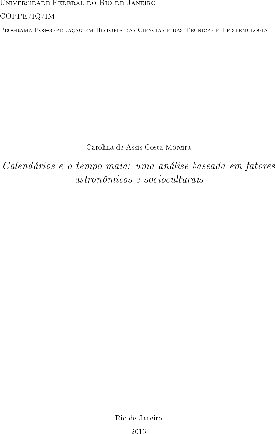 ASSIS, Carolina de. Costa Moreira. Calendários e o tempo maia: uma análise baseada