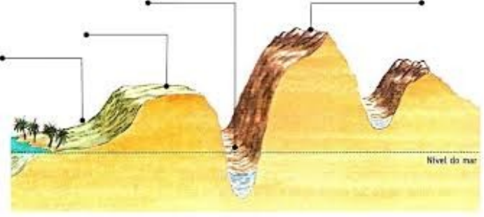 1. Defina o que é relevo: ____________________________________________________________________________________________________________ 2. COMPLETE AS FRASES ABAIXO COM AS FORMAS DE RELEVO TERRESTRE: a) As ______________________ são as mais altas formas de relevo existentes na Terra. Seu conjunto é denominado cordilheira. b) Os _____________________ são caracterizados pelo desgaste em sua superfície e pelas suas bordas íngremes e escarpadas. c) As _______________________ são áreas de altitude geralmente inferior ao relevo que as circunda. Podem ser classificadas como absoluta ou relativa, conforme sua localização em relação ao nível do mar. d) As _________________________ apresentam um relevo muito suave, geralmente de grande extensão. São encontradas principalmente em regiões litorâneas ou de bacias hidrográficas. 3. Preencha a imagem ao lado com as respectivas formas do relevo: RESPONDA AS PERGUNTAS A SEGUIR COM BASE NOS TEXTOS DAS PÁGINAS: 109- 111 -112. 4. O que são AGENTES EXTERNOS OU EXÓGENOS? ____________________________________________________________________________________________________________________________________________________________________________________________________ 5. O que são AGENTES INTERNOS ou ENDÓGENOS? __________________________________________________________________________________________________________________________________________________________________________________________________ 6. Qual fenômeno é causado pelos AGENTES INTERNOS? __________________________________________________________________________________________________________________________________________________________________________________________________ 7. Explique o que é: a) EROSÃO: _________________________________________________________________________________________________________________________________________________________________________________________________ B) SEDIMENTAÇÃO: _________________________________________________________________________________________________________________________________________________________________________________________________ C) INTEMPERISMO: ___________________________________________________________________________________________________________________________________________________________________________________________________ 8. De que maneira o ser humano atua na modificação do relevo terrestre? ____________________________________________________________________________________________________________________________________________________________________________________________________ 9. Cite quatro agentes do modelado do relevo terrestre (internos ou externos, tanto faz): ___________________________________________________________________________________________________________________________________________________________________________________________________ 10. De que maneira o ser humano atua na modificação do relevo terrestre? __________________________________________________________________________________________________________________________________________________________ 11. Escreva os movimentos de cada placa abaixo: ____________________ __________________ ____________________ 12. Relacione a 1º coluna de acordo com a 2º coluna: (a) Ocorre em regiões de clima frio e temperado, onde o degelo causa fricção promove desgaste. (b) É causada pelos seres humanos. (c) É causada pela chuva onde ocasiona o transporte e disposição dos sedimentos. (d) Ocorre transformação das rochas pelos ventos. (e) Causada pela força da água dos mares assim modifica o relevo litorâneo. (f) São causadas pelas águas correntes dos rios. ( ) EROSÃO FLUVIAL ( ) EROSÃO MARINHA ( ) EROSÃO EÓLICA ( ) EROSÃO GLACIAL ( ) EROSÃO ANTRÓPICA ( ) EROSÃO PLUVIAL 1. RELACIONE OS NUMEROS AO TIPOS DE PLACAS: ( 1) TRANFORMANTE ( 2 ) CONVERGENTE ( 3 ) DIVERGENTE ____________ ___________ ___________ 2. Preencha a imagem ao lado com as respectivas formas do relevo: 3. RELACIONE A IMAGEM AO TIPO DE EROSÃO: ( ) EROSÃO FLUVIAL ( ) EROSÃO MARINHA ( ) EROSÃO EÓLICA ( ) EROSÃO GLACIAL ( ) EROSÃO ANTRÓPICA ( ) EROSÃO PLUVIAL A B C D E F image1.jpeg image2.jpeg image3.jpeg