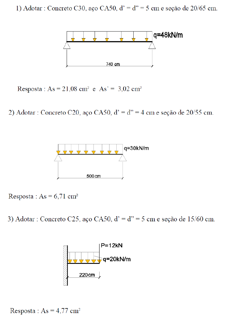 Calcular a área de aço As e As’ se houver das vigas abaixo.
