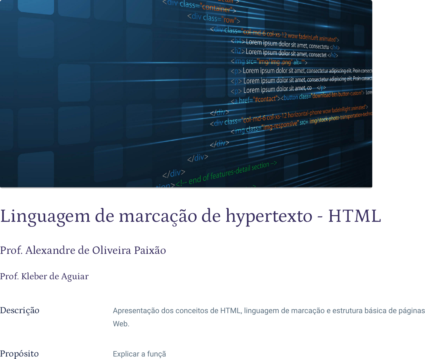 Descrição Apresentação dos conceitos de HTML, linguagem de marcação e estrutura básica de páginas