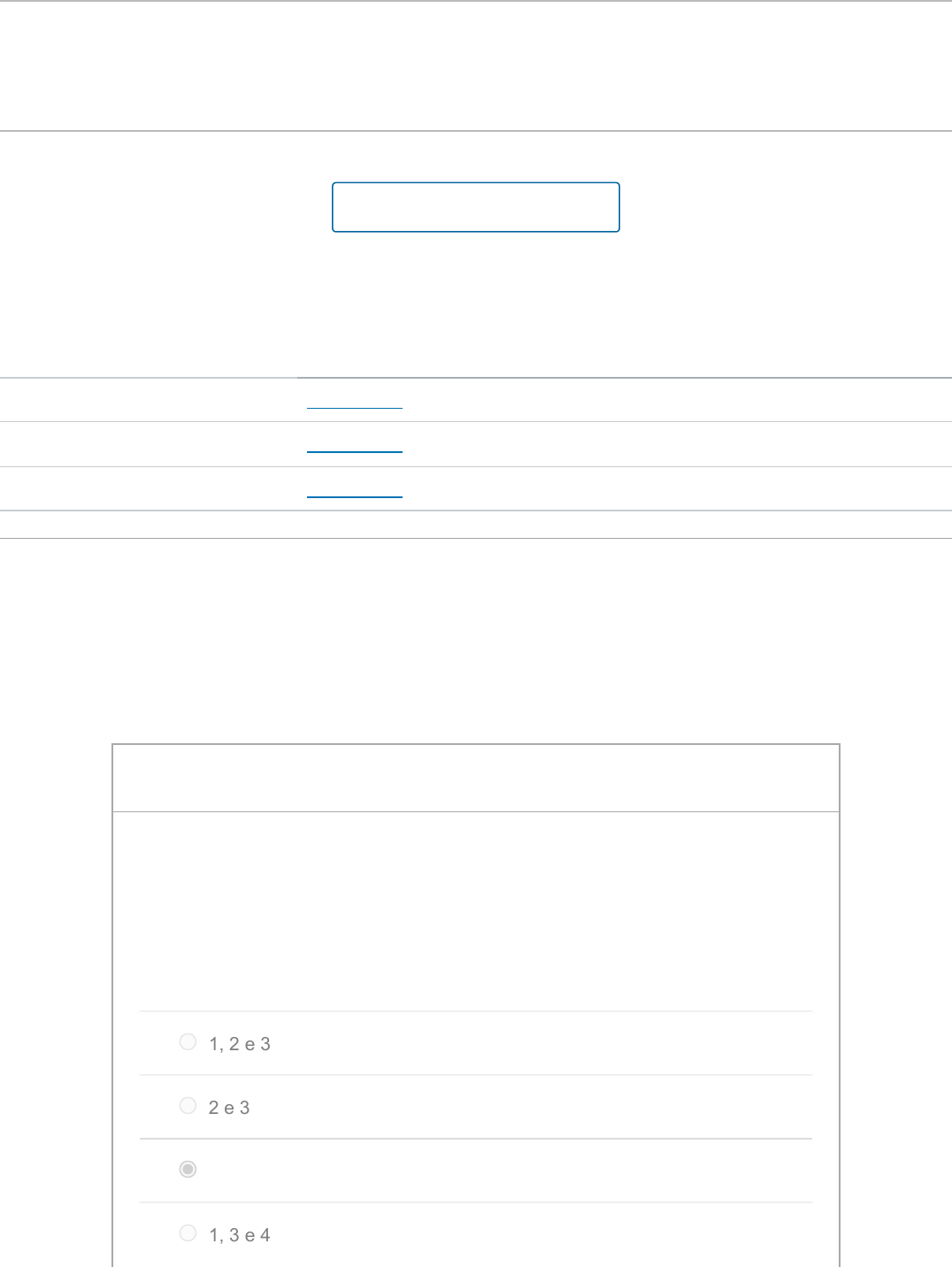14/05/2023, 15:12 Teste 5.1 - Campo magnético e força magnética (conceitual): Física: Eletromagnetismo - Engenharia de Produção - Campu… https://pucminas.instructure.com/courses/141144/quizzes/370450 1/6 Teste 5.1 - Campo magnético e força magnética (conceitual) Entrega 14 mai em 23:59 Pontos 8 Perguntas 8 Disponível até 14 mai em 23:59 Limite de tempo Nenhum Tentativas permitidas Sem limite Histórico de tentativas Tentativa Tempo Pontuação MANTIDO Tentativa 2 7 minutos 7 de 8 MAIS RECENTE Tentativa 2 7 minutos 7 de 8 Tentativa 1 11 minutos 5 de 8 As respostas corretas estarão disponíveis em 15 mai em 0:00. Pontuação desta tentativa: 7 de 8 Enviado 14 mai em 15:12 Esta tentativa levou 7 minutos. Fazer o teste novamente 1 / 1 ptsPergunta 1 Considere as seguintes grandezas: (1) massa, (2) velocidade, carga, (4) intensidade do campo magnético. De quais dessas grandezas depende a força a que é submetida uma partícula carregada que se move em uma região onde existe um campo magnético? 1, 2 e 3 2 e 3 2, 3 e 4 1, 3 e 4 https://pucminas.instructure.com/courses/141144/quizzes/370450/history?version=2 https://pucminas.instructure.com/courses/141144/quizzes/370450/history?version=2 https://pucminas.instructure.com/courses/141144/quizzes/370450/history?version=1 https://pucminas.instructure.com/courses/141144/quizzes/370450/take?user_id=131522 14/05/2023, 15:12 Teste 5.1 - Campo magnético e força magnética (conceitual): Física: Eletromagnetismo - Engenharia de Produção - Campu… https://pucminas.instructure.com/courses/141144/quizzes/370450 2/6 1 e 4 1 / 1 ptsPergunta 2 Uma partícula carregada está se movendo em uma região onde existe um campo magnético. Qual é a direção da força a que a partícula é submetida por causa da presença do campo magnético? A direção do movimento da partícula. A direção perpendicular ao campo magnético e à velocidade da partícula. A direção oposta à do campo magnético. A direção oposta à do movimento da partícula. A direção do campo magnético. 1 / 1 ptsPergunta 3 Complete a seguinte frase: Desprezando os efeitos do campo gravitacional, se uma partícula positivamente carregada é liberada sem velocidade inicial em uma região onde existe um campo magnético que aponta para leste, a partícula permanece em repouso. é acelerada para cima. é acelerada para leste. 14/05/2023, 15:12 Teste 5.1 - Campo magnético e força magnética (conceitual): Física: Eletromagnetismo - Engenharia de Produção - Campu… https://pucminas.instructure.com/courses/141144/quizzes/370450 3/6 é acelerada para o norte. é acelerada para baixo. 1 / 1 ptsPergunta 4 Qual das condições abaixo não é necessária para que uma partícula experimente uma força magnética ao ser colocada em uma região onde existe um campo magnético? A partícula deve estar em movimento. A velocidade da partícula deve ter uma componente perpendicular direção do campo magnético. A partícula deve possuir uma carga elétrica. A partícula não deve estar sob a influência de outras forças. 1 / 1 ptsPergunta 5 Para que é usada a regra da mão direita? Para determinar a direção da força magnética a que está submetida uma partícula a partir da direção do campo magnético e da direção da velocidade da partícula. Para determinar a força de reação ao aplicar a terceira lei de Newton ao movimento de uma partícula. 14/05/2023, 15:12 Teste 5.1 - Campo magnético e força magnética (conceitual): Física: Eletromagnetismo - Engenharia de Produção - Campu… https://pucminas.instructure.com/courses/141144/quizzes/370450 4/6 Para determinar o módulo da força a que uma partícula está submetida a partir do sinal e do valor da carga da partícula e do módulo da velocidade da partícula. Para determinar o sinal e o valor absoluto da carga de uma partícula a partir da direção do campo magnético e da direção da força magnética a que a partícula está submetida. 1 / 1 ptsPergunta 6 Uma partícula negativamente carregada penetra em uma região onde existe um campo magnético constante. Se a velocidade da partícula ao entrar na região é perpendicular ao campo magnético, qual é a trajetória subsequente da partícula? A partícula descreve uma trajetória helicoidal em torno das linhas de campo magnético. A partícula descreve uma trajetória retilínea na mesma direção em que estava se movendo ao entrar na região. A partícula descreve uma trajetória circular em um plano perpendicular às linhas de campo magnético. A partícula descreve uma trajetória circular em um plano paralelo às linhas de campo magnético. Não há informações suficientes para responder. 14/05/2023, 15:12 Teste 5.1 - Campo magnético e força magnética (conceitual): Física: Eletromagnetismo - Engenharia de Produção - Campu… https://pucminas.instructure.com/courses/141144/quizzes/370450 5/6 0 / 1 ptsPergunta 7IncorretaIncorreta Uma partícula negativamente carregada penetra em uma região onde existe um campo magnético constante. Se a velocidade da partícula ao entrar na região é paralela ao campo magnético, qual é a trajetória subsequente da partícula? A partícula descreve uma trajetória circular em um plano paralelo às linhas de campo magnético. Não há informações suficientes para responder. A partícula descreve uma trajetória circular em um plano perpendicular às linhas de campo magnético. A partícula descreve uma trajetória retilínea na mesma direção em que estava se movendo ao entrar na região. A partícula descreve uma trajetória helicoidal em torno das linhas de campo magnético. 1 / 1 ptsPergunta 8 Um elétron está se movendo para o sul quando penetra em uma região onde existe um campo magnético uniforme que aponta para oeste. Qual das afirmações abaixo a respeito dessa situação é falsa? A direção da força magnética a que o elétron é submetido varia com o tempo. 14/05/2023, 15:12 Teste 5.1 - Campo ma