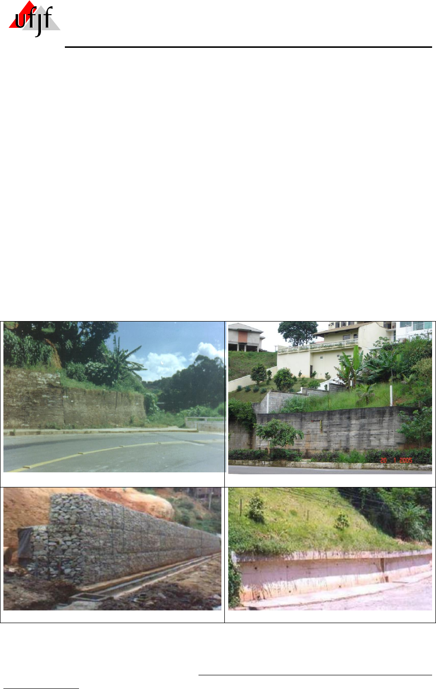 Faculdade de Engenharia – NuGeo/Núcleo de Geotecnia Prof. M. Marangon Mecânica dos Solos II – Edição 2018 EMPUXOS DE TERRA 161 Capítulo 6 - EMPUXOS DE TERRA Empuxo de terra, que deve ser entendido como a ação produzida pelo maciço terroso sobre as obras com ele em contato. A determinação da magnitude que ocorre é fundamental na análise e projeto de obras como muros de arrimo, obras de contenções, cortinas em estacas pranchas, cortinas atirrantadas, escorramentos de escavações em geral, construções em subsolos, encontros de pontes, entre outras situações semelhantes. A Figura 6.1 ilustra algums exemplos de obras de arrimo em que são utilizadas diferentes soluções na estrutura de contenção, a saber: (a) muro em solo-cimento ensacado e compactado - bairro de N. S. de Lurdes (J. Fora), (b) muro em concreto ciclópico - bairro Aeroporto (J. Fora), (c) muro em pedras arrumadas manualmente em gaiolas metálicas – gabiões e (d) muro em concreto armado. (a) (b) (c) (d) Figura 6.1 – Muros de contenção ou arrimo: a) solo-cimento, b) concreto ciclópico, c) gabião e d) concrerto armado O cálculo dos empuxos constitui uma das maiores e mais antigas preocupações da engenharia civil; data de 1776 a primeira contribuição efetiva ao tema, em muito anterior ao nascimento da Mecânica dos Solos como ciência autônoma. Trata-se de um problema de grande interesse prático, de ocorrência freqüente e de determinação complexa. Faculdade de Engenharia – NuGeo/Núcleo de Geotecnia Prof. M. Marangon Mecânica dos Solos II – Edição 2018 EMPUXOS DE TERRA 162 No estudo deste assunto, como na maioria dos problemas sob domínio da Mecânica dos Solos, raras são as situações em que é possível determinar forças e, por conseguinte, tensões com base apenas nas condições de equilíbrio; os problemas são, em geral, estaticamente indeterminados. Para vencer esta dificuldade é imperioso considerar as condições de compatibilidade entre os deslocamentos, o que implica a necessidade de conhecer-se também a variação das tensões com as deformações, ou seja, a curva σ x ε (Vilar e Bueno, 1979). 6.1 – Considerações iniciais sobre empuxo Vilar e Bueno (1979) resalta que há, em síntese, duas linhas de conduta no estudo dos empuxos de terra. A primeira, de cunho teórico, apóia-se em tratamentos matemáticos elaborados a partir de modelos reológicos (estudo de deformações) que tentam traduzir, tanto quanto possível, o comportamento preciso da relação tensão x deformação dos solos. A segunda forma de abordagem é de caráter empírico-experimental; são recomendações colhidas de observações em modelos de laboratório e em obras instrumentadas. A automatização dos métodos numéricos (diferenças finitas, método dos elementos finitos) através de computadores e a evolução das técnicas de amostragem e ensaios têm propiciado, nos últimos anos, um desenvolvimento significativo dos processos de cunho teórico. Neste capítulo serão tratados apenas os processos clássicos de determinação de empuxos, baseados nas teorias da Elasticidade, de Rankine e de Coulomb. Teoria da Elasticidade - Relação entre Tensão x Deformação Para a determinação das pressões de empuxo de terra utilizaremos inicialmente os conceitos da teoria de elasticidade no que se refere ao comportamento dos solos e suas características de deformabilidade quando submetido a uma pressão de compressão. Pode-se a partir do gráfico “tensão x deformação” (Figura 6.2), obtido em um ensaio de compressão, determinar o módulo de elasticidade (E) em um segmento reto (AB - módulo inicial - Lei de Hooke = proporcionalidade tensão-deformação, AC - módulo secante ou CD – módulo tangente). Figura 6.2 – Deformação de um corpo submetido a um carregamento Considerando que o corpo de prova de solo sofre uma tensão de compressão, no sentido da altura, este sofre uma deformação neste sentido e conseqüentemente no sentido de seu raio (diâmetro) R, teremos então: Faculdade de Engenharia – NuGeo/Núcleo de Geotecnia Prof. M. Marangon Mecânica dos Solos II – Edição 2018 EMPUXOS DE TERRA 163 L L = σ = E . ε h h E v = ou R dR E H = A partir das deformações nos sentidos horizontal e vertical poderemos determinar o Coeficiente de Poisson (). O Coeficiente de Poisson é o parâmetro que reflete o quanto o solo deforma no sentido horizontal em relação à deformação no sentido do carregamento. v h vertical horizontal def def = = . . Logo, εh = μ . εv = μ . E v ** Valores típicos para Módulo de Elasticidade (E) de solos Como ordem de grandeza, podem-se indicar os valores apresentados na Tabela 6.1 como módulos de elasticidade para argilas sedimentares saturadas, em solicitações rápidas, que não dão margem à drenagem. Para as areias, os módulos são os correspondentes à situação drenada, Tabela 6.2, pois a permeabilidade é alta, em relação ao tempo de aplicação das cargas. Tabela 6.1 – Módulos de elasticidade típicos de argilas saturadas não drenada Consistência Módulo de elasticidade MPa kN/m²(kPa) Muito mole < 2,5 < 2500 Mole 2,5 a 5 2500 a 5000 Consistência média 5 a 10 5000 a 10000 Rija 10 a 20 10000 a 20000 Muito rija 20 a 40 20000 a 40000 Dura > 40 > 40000 Tabela 6.2 – Módulos de elasticidade típicos de areias em solicitação drenada (para tensão confinante de 100 kPa) Compacidade Módulo de elasticidade Fofa Compacta MPa kN/m² (kPa) MPa KN/m² (kPa) Areias de grãos frágeis, angulares 15 15000 35 35000 Areias de grãos duros, arredondados 55 55000 100 100000 Areia (SP), bem graduada, pouco argilosa 10 10000 27 27000 ** Valores típicos para coeficiente de Poisson () de solos Para solos, tem-se a seguinte variação: 0,25 < < 0,5 Relação entre as tensões vertical (σV) e horizontal (σH) Segundo o princípio da superposição dos efeitos: “A superposição dos estados elásticos diferentes ocasiona a superp